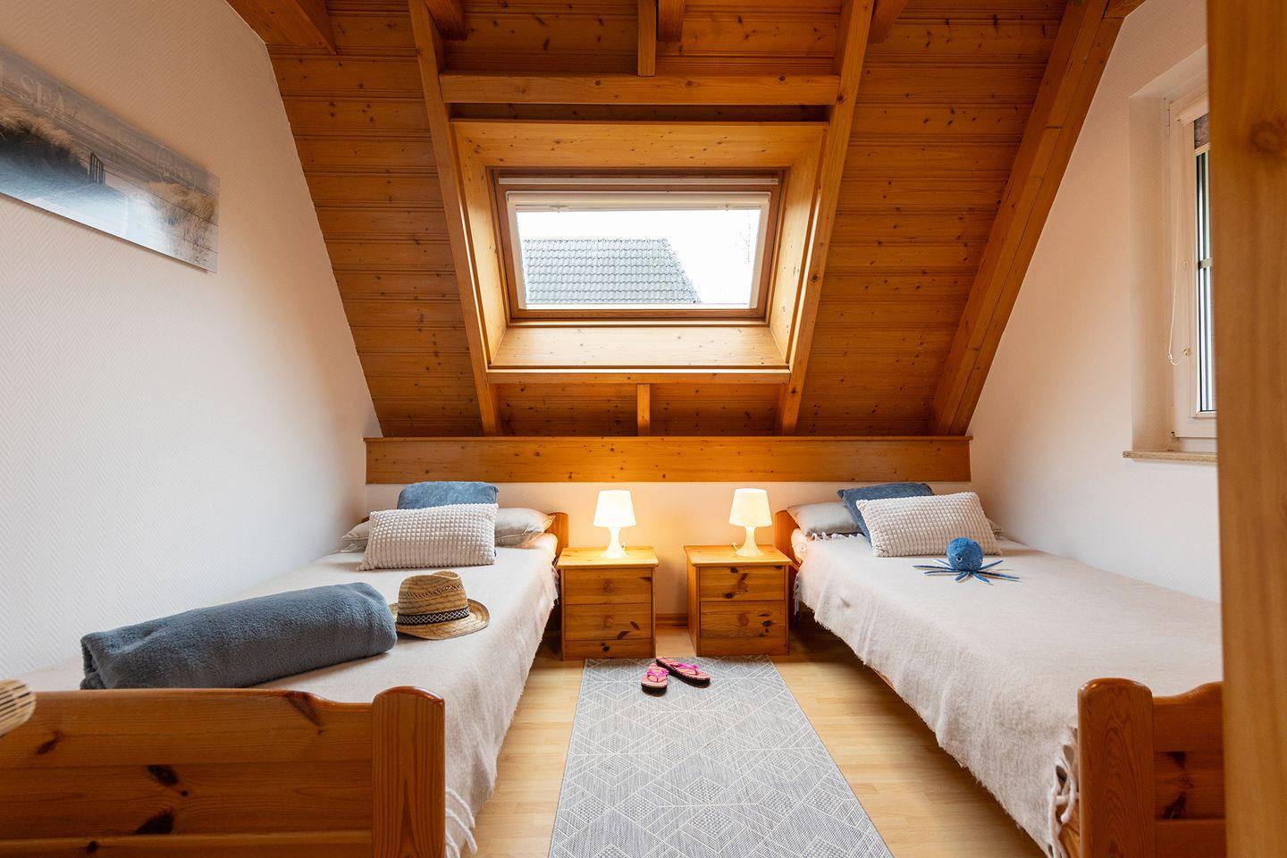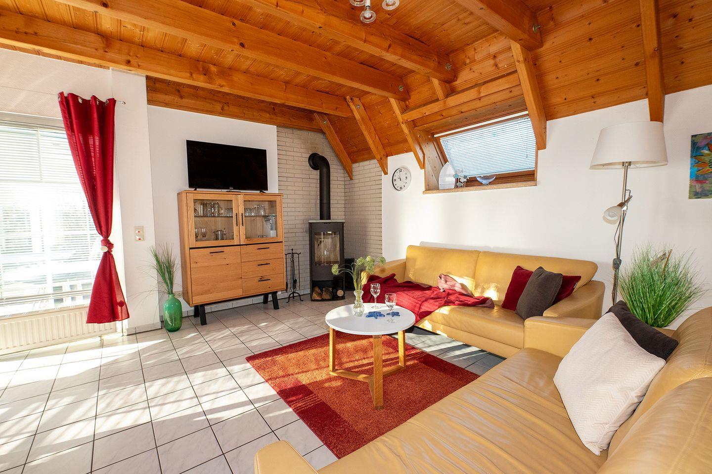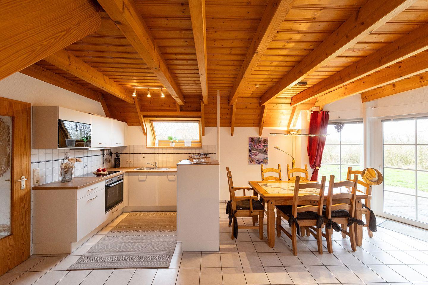 Ein Spätsommertag klingt auf der Terrasse aus, während die Kinder mit Muscheln aus dem Watt spielen. Das familienfreundliche Ferienhaus für Familien an der Nordsee bietet auf 85 m² viel Raum für den Nordseeurlaub mit Kindern: drei Schlafzimmer, zwei Etagen, zwei WCs, Waschmaschine, eine moderne Küche mit Geschirrspüler und ein gemütlicher Wohnbereich. Der Kaminofen sorgt an kühleren Tagen für Wärme.