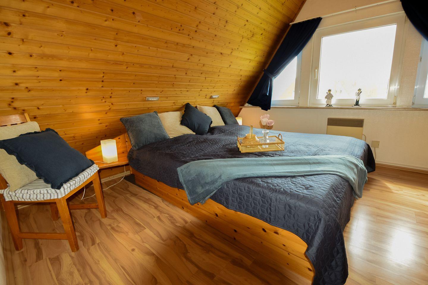 Auf zwei Etagen und 61?m² Wohnfläche findest du zwei Schlafzimmer, ein Bad mit Wanne und Dusche, ein Gäste-WC sowie einen offenen Wohn-Essbereich mit moderner Küche. Familienfreundlich ausgestattet mit Kinderbett, Hochstuhl, Treppengitter und WLAN. Im Garten lädt eine private Terrasse zum Spielen, Entspannen oder Grillen ein, ein Gartenhaus bietet Platz für Räder oder Angelzubehör.