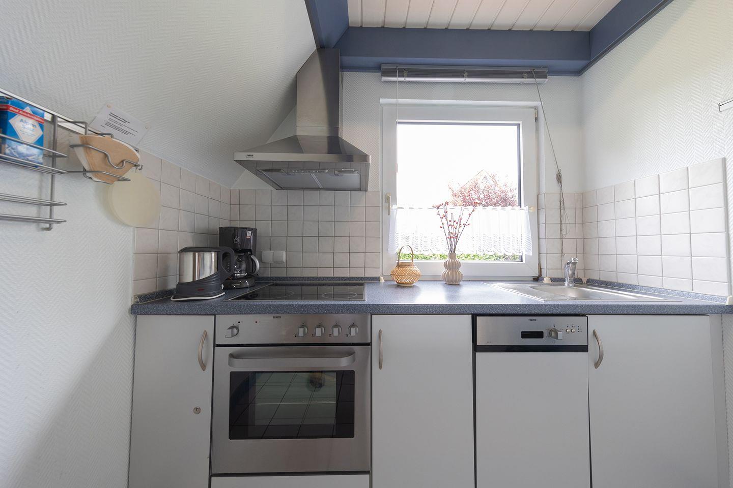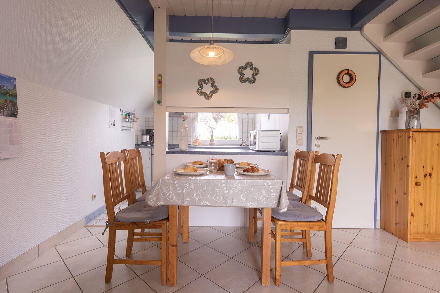 Zwei Schlafzimmer, ein Bad mit Dusche und Wanne, eine offene Wohnküche und eine gemütliche Sofaecke auf 61?m² machen das Haus ideal für den Nordseeurlaub mit Kindern. Kinderbett, Hochstuhl, Treppengitter und WLAN sind vorhanden, ebenso Fliegengitter, Sichtschutz und viele praktische Details.