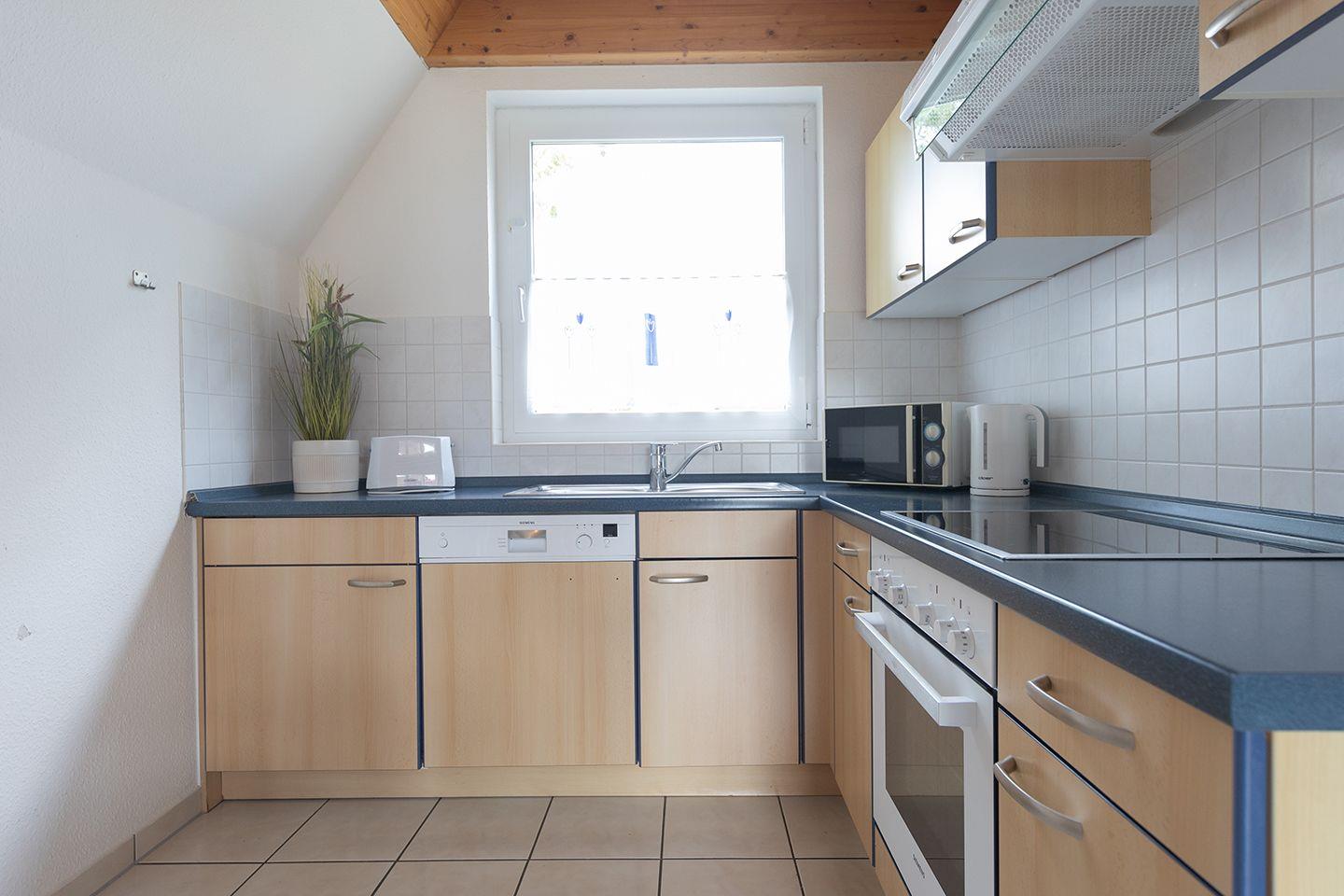 Kinderbett, Hochstuhl und Treppengitter sind ebenso vorhanden wie eine eigene Waschmaschine. In der offenen Küche mit Spülmaschine und Ceranfeld wird Kochen fast zur Nebensache.