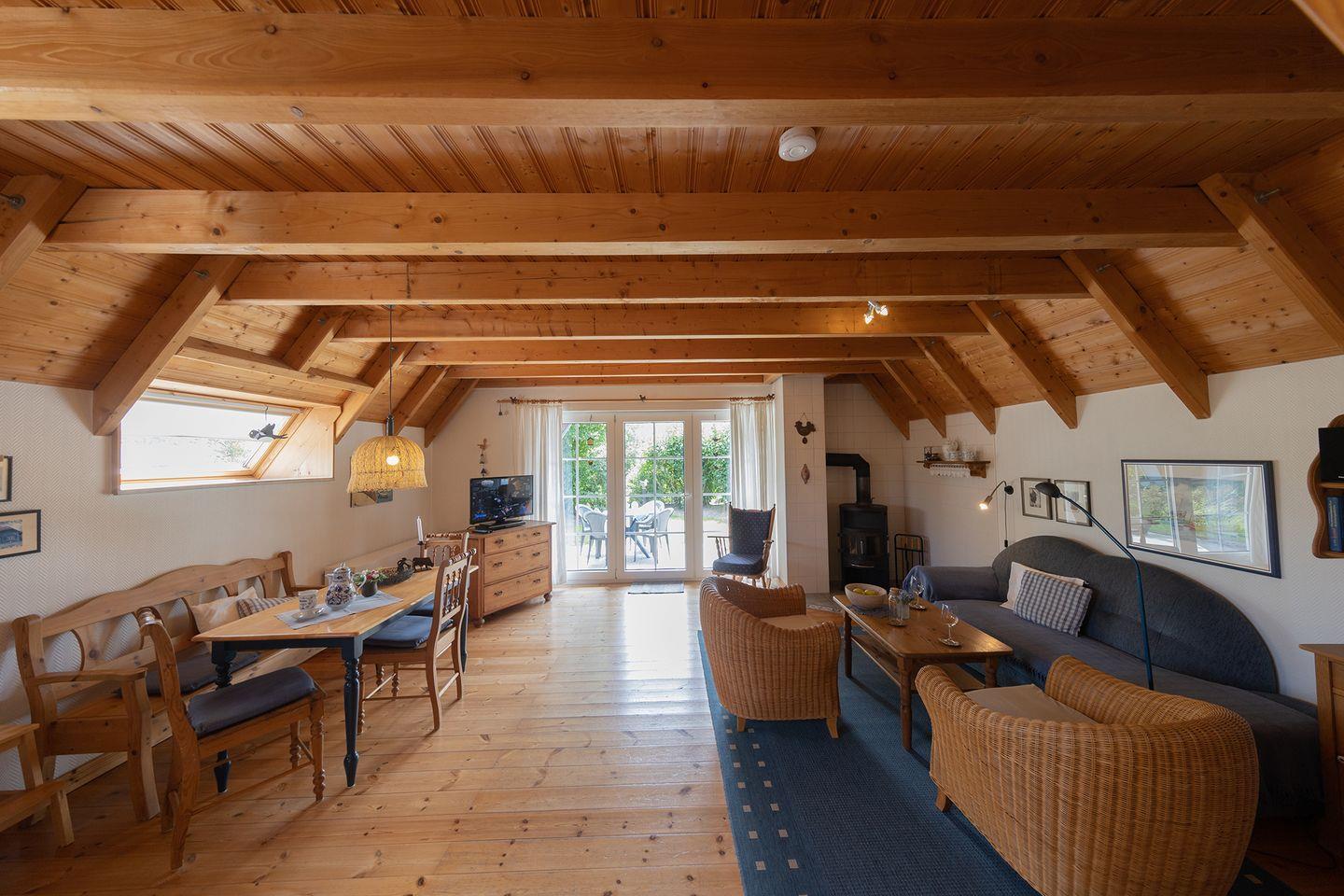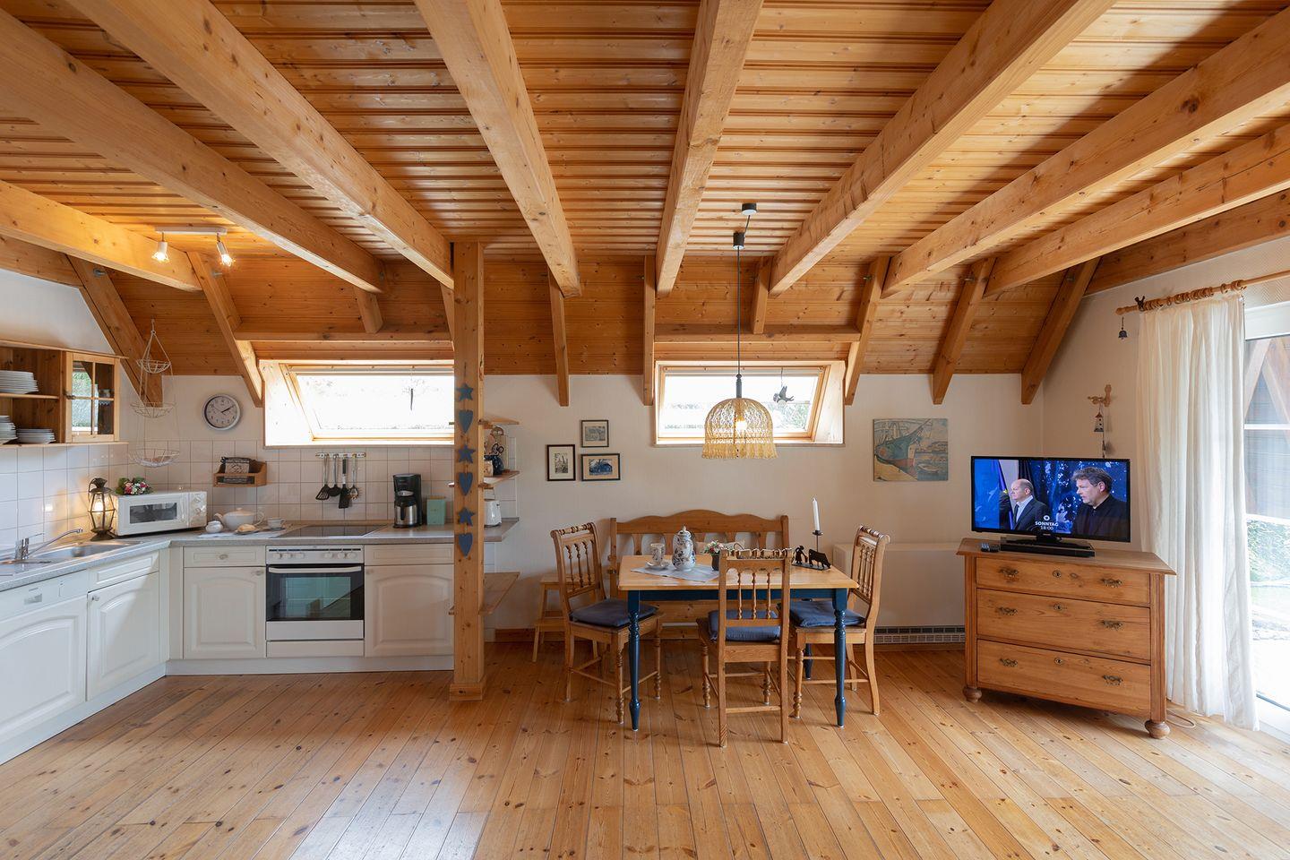 Wenn das Kaminfeuer leise knackt und draußen der Wind über die Felder zieht, wird der Nordseeurlaub mit Kindern in Medemsand 17 besonders gemütlich. Das freistehende, familienfreundliche Ferienhaus für bis zu vier Personen liegt in Dorum-Neufeld an der Nordsee, in strandnaher (1km) Lage mit Garten und zwei Etagen: unten ein heller Wohnbereich mit offener Küche, Gäste-WC und Zugang zur möblierten Terrasse. Oben zwei Schlafzimmer mit Vinylboden – perfekt für erholsame Nächte. Kaminofen, Spiele, WLAN und Blu-ray-Player bieten auch drinnen viel Abwechslung.