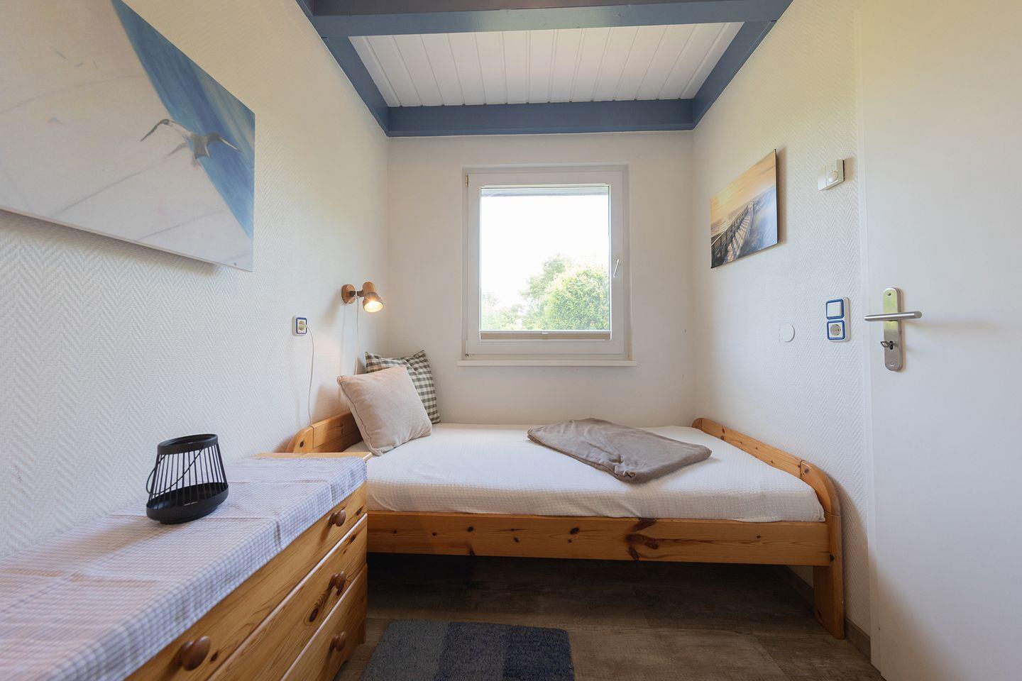 Ein Ort zum Durchatmen: Dieses Ferienhaus im grünen Marschland von Dorum-Neufeld bietet Platz für sechs Nordseefans - drinnen gemütlich, draußen naturnah. Im Erdgeschoss erwartet dich ein heller Wohnbereich mit Kaminofen, eine offene Küche, ein Schlafzimmer mit zwei Einzelbetten und ein Duschbad mit Waschmaschine. Oben: das Elternschlafzimmer, ein weiteres Kinderzimmer mit getrennten Betten und ein zweites Bad. Viel Raum für Familienleben, auch mal mit Rückzugsort.
