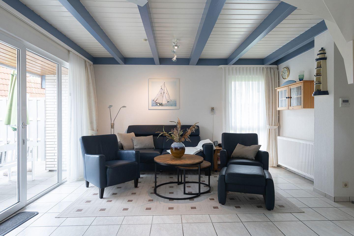 Die möblierte Terrasse mit zwei Sonnenliegen liegt ruhig in einem grün eingefassten Garten. Parkplätze befinden sich in Hausnähe, E-Ladestationen ganz in der Nähe.Strand, Hafen, Watt'n Bad und Leuchtturm erreicht man bequem zu Fuß (1 km) - kurze Wege, viel Freiheit, ideal für den Nordseeurlaub mit Kindern.