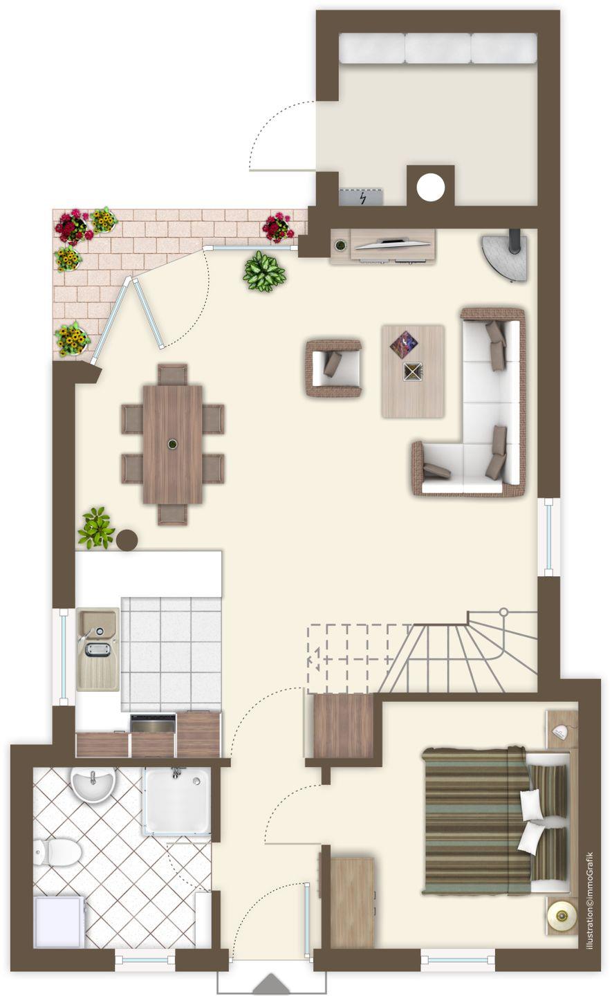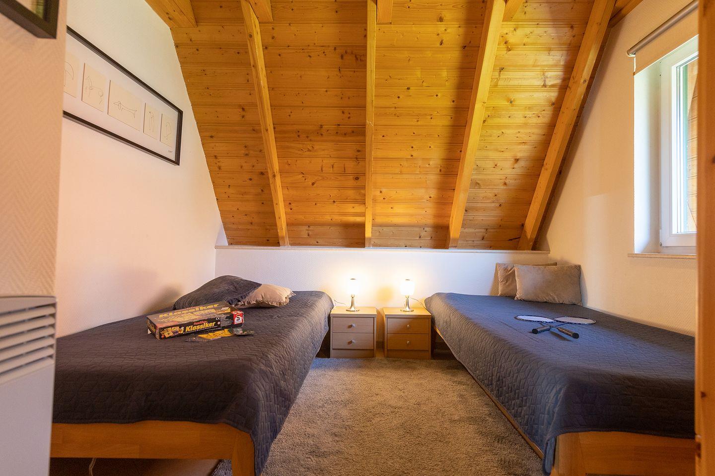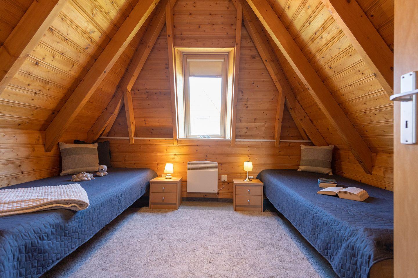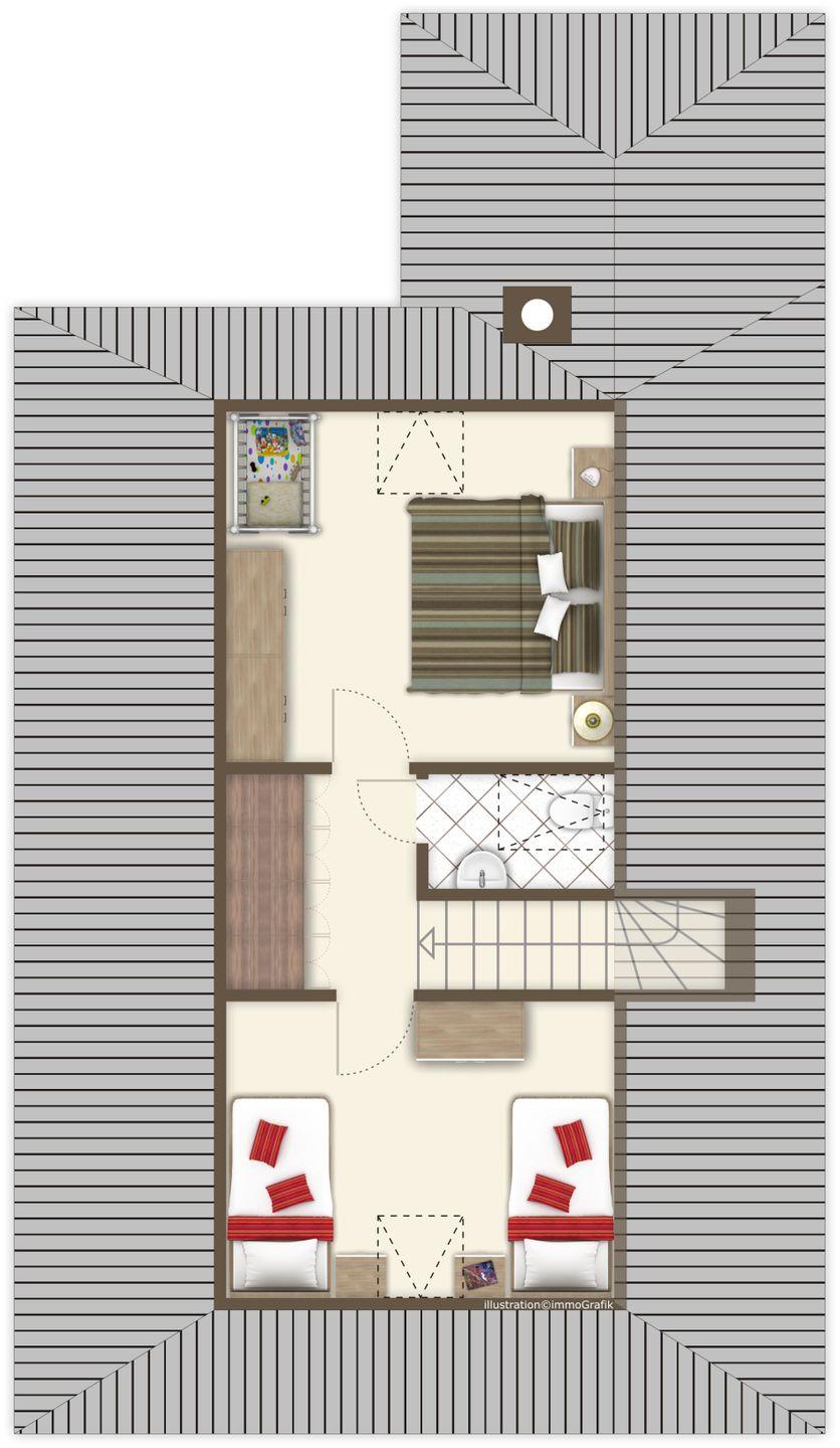 Auf 85?m² und zwei Etagen finden bis zu sechs Personen bequem Platz. Unten liegt das Herzstück des Hauses: der helle Wohnbereich mit Essplatz, direkt daneben ein Schlafzimmer mit zwei Einzelbetten und das Duschbad mit Waschmaschine. Oben geht es weiter mit einem Elternschlafzimmer, einem weiteren Zimmer mit getrennt stehenden Betten und einem zusätzlichen WC.