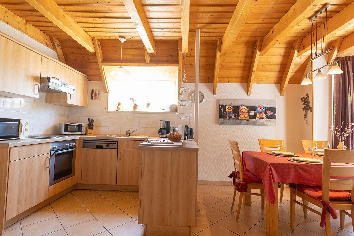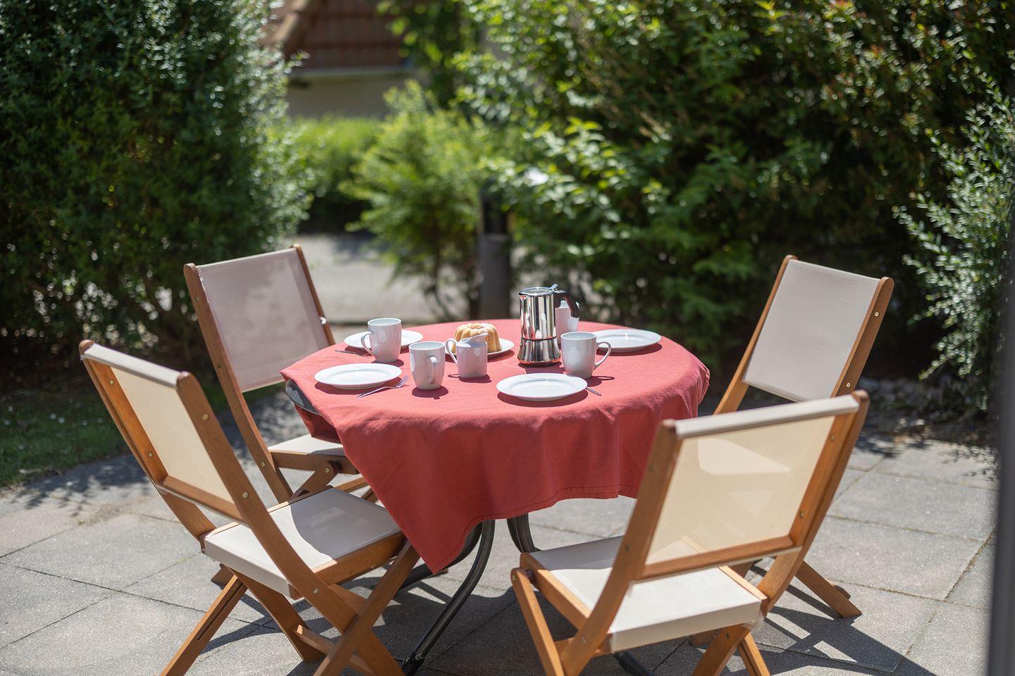 Die Mischung aus Fliesen im Erdgeschoss und Teppichboden oben sorgt für ein angenehmes Wohngefühl. Und wenn draußen die Sonne scheint, ist die geschützte Terrasse der richtige Ort für lange Abende. Kinderbett, Hochstuhl und ein kostenfreier Parkplatz machen den Aufenthalt unkompliziert.