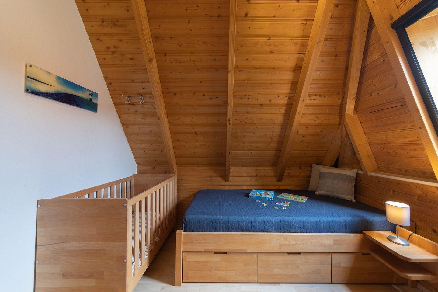 Auf zwei Etagen verteilen sich 85?m² mit einem hellen Wohnbereich, Kaminofen für kühle Abende und einer offenen Küche mit allem, was man braucht. Drei Schlafzimmer (eins mit Doppelbett, eins mit zwei Einzelbetten, eins mit getrennt stehenden Betten), ein Tageslichtbad mit Dusche und ein zusätzliches WC sorgen für Komfort.
