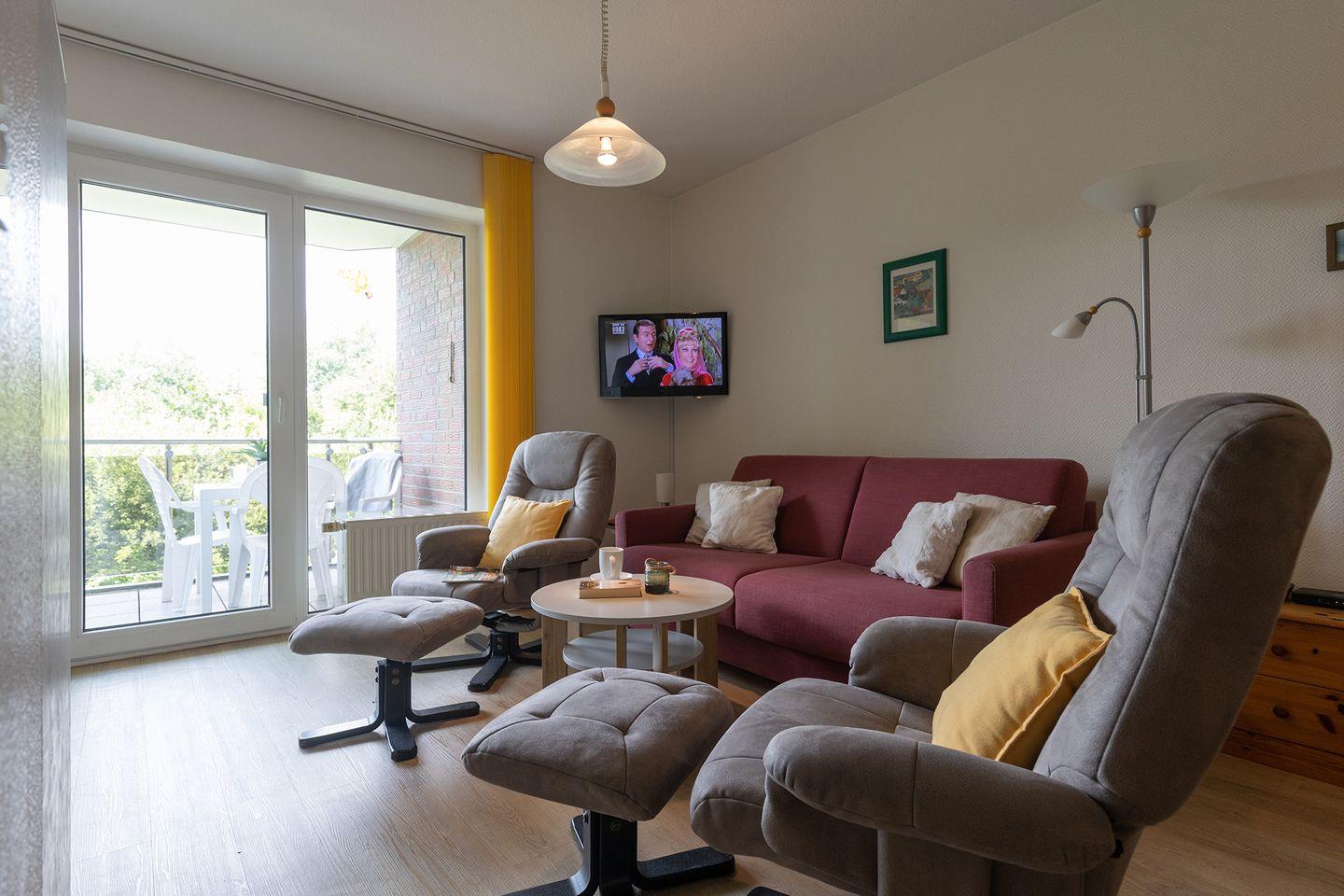 Wenn sich abends das Licht über dem Deich langsam verändert, ist der Blick vom Balkon dieser Ferienwohnung ein stiller Höhepunkt. Nur wenige Schritte von der Nordsee entfernt, findest du hier einen Rückzugsort mit klarer Struktur und norddeutscher Gelassenheit auf 50?m², ideal für bis zu vier Personen.