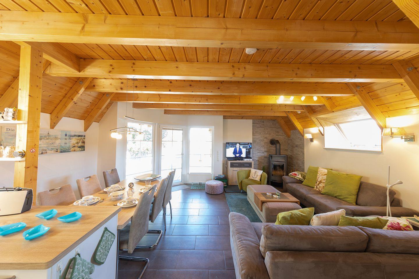 Ein Haus wie gemacht für eine Pause vom Alltag. In einer ruhigen Ecke von Dorum-Neufeld, nur ein paar Gehminuten vom Deich entfernt, bietet dieses Komfortferienhaus Platz für bis zu sechs Personen. Unten: ein offener Wohnbereich mit Kaminofen, Küche und ein Schlafzimmer mit zwei Einzelbetten. Oben: zwei weitere Schlafzimmer und ein zusätzliches WC. Ideal, wenn mehrere Generationen mitreisen. Familien freuen sich besonder über die Waschmaschine, das Treppengitter und das Kinderbett.