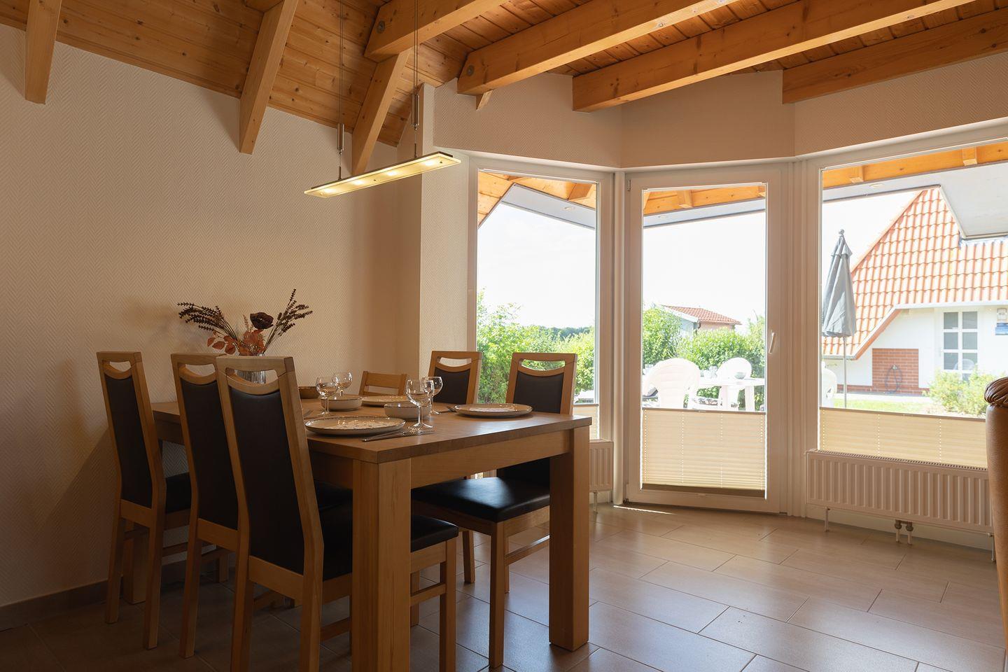 Am ruhigen Rand von Dorum-Neufeld gelegen, bietet unser 85?m² großes Ferienhaus Platz für bis zu sechs Personen. Drei Schlafzimmer, Kinderreisebett, Hochstuhl, Kaminofen, Waschmaschine, Trockner und zwei WCs - ideal für Familien. Die geschützte Terrasse mit Sitzplätzen für sechs lädt zum Grillen ein. Strand, Watt’n Bad und Kutterhafen sind fußläufig (1km) erreichbar. Kostenfreier Parkplatz, E-Ladestation an der Rezeption.