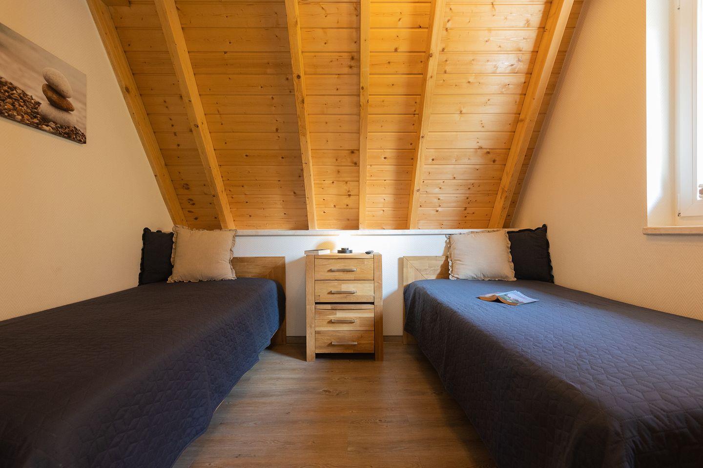Am grünen Rand des Ferienparks gelegen, bietet dieses Ferienhaus für Familien an der Nordsee viel Ruhe und Komfort - und ist doch nur einen kurzen Spaziergang (1km) vom Strand, dem Watt’n Bad und dem kleinen Kutterhafen entfernt. Auf 85?m² Wohnfläche finden bis zu sechs Personen Platz: Im Erdgeschoss ein offener Wohn-Essbereich mit Kaminofen, eine voll ausgestattete Küche, ein Schlafzimmer mit zwei Einzelbetten und ein Duschbad mit Waschmaschine. Im Obergeschoss liegen das Elternschlafzimmer mit Doppelbett, ein weiteres Zimmer mit getrennten Betten sowie ein zusätzliches WC.