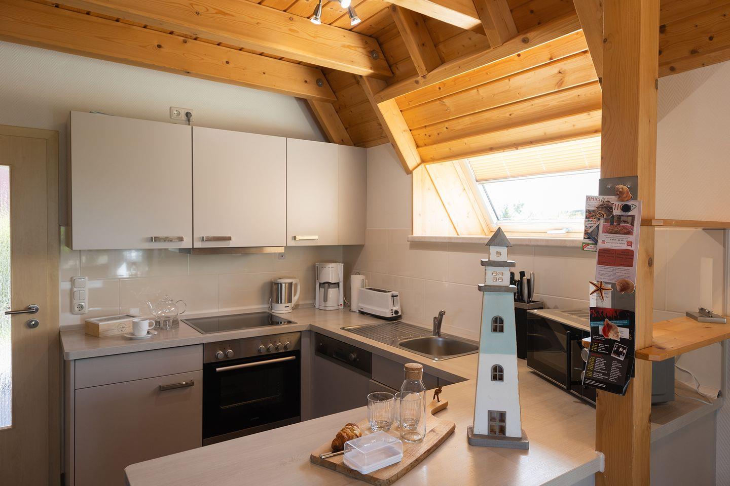 Das Haus ist durchgehend gefliest oder mit Laminat ausgelegt – praktisch für Familien mit Kindern. Kinderbett, Hochstuhl und eine geschützte Terrasse mit Grillmöglichkeit gehören ebenfalls dazu. Parkplatz direkt am Haus, E-Ladestation an der Rezeption. Ein Ferienhaus mit Kaminofen, Garten und kindgerechter Ausstattung – ruhig gelegen und dennoch in Strandnähe.