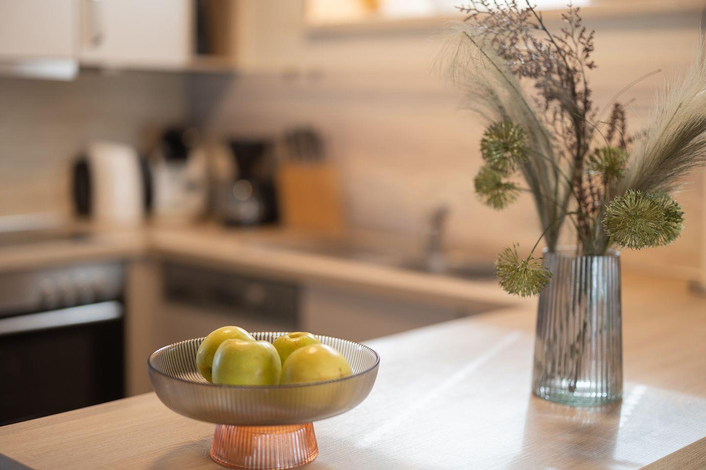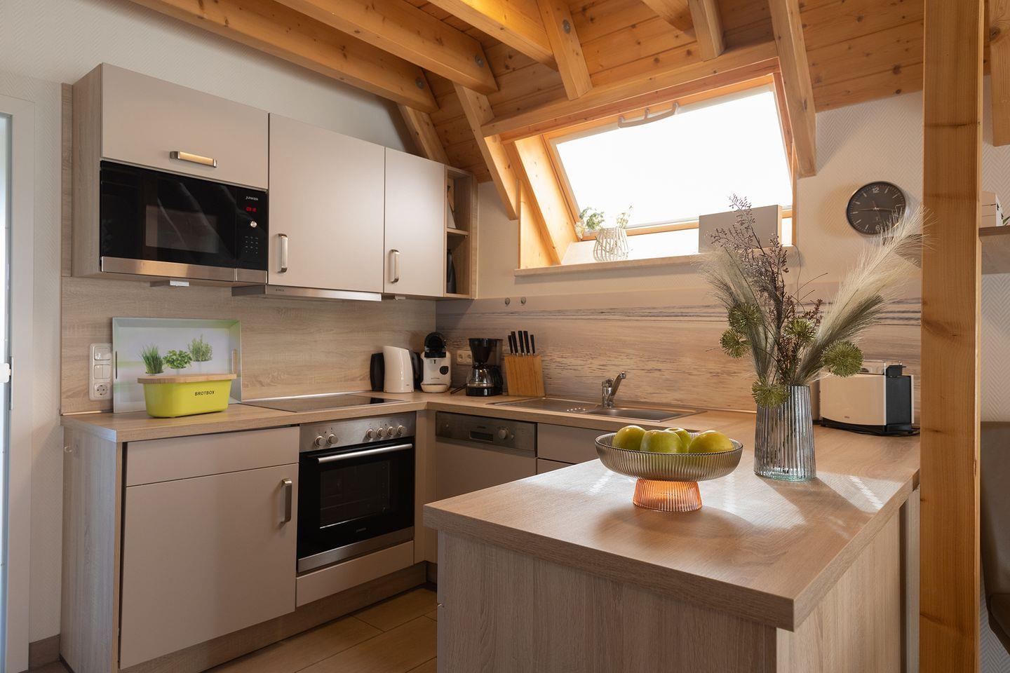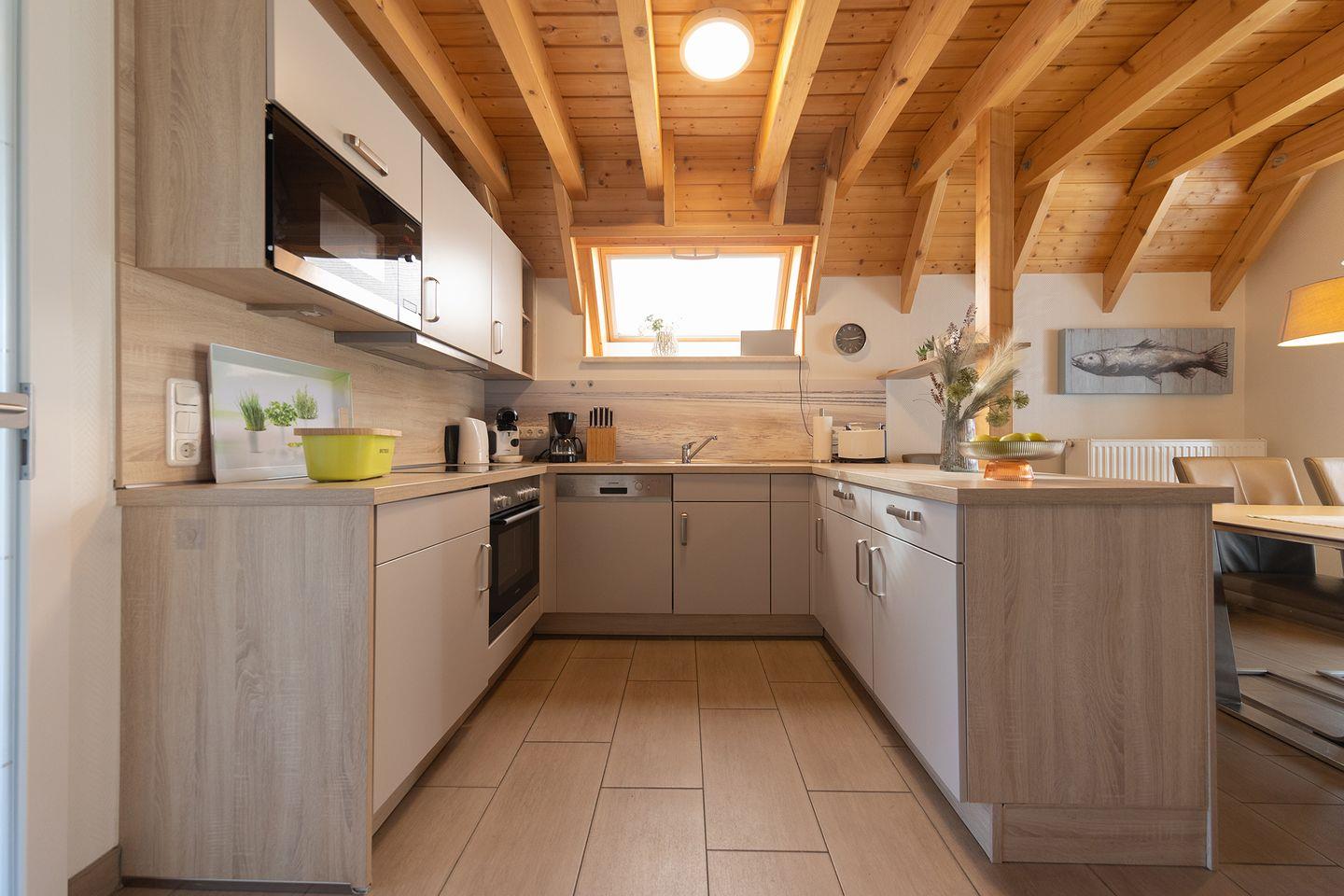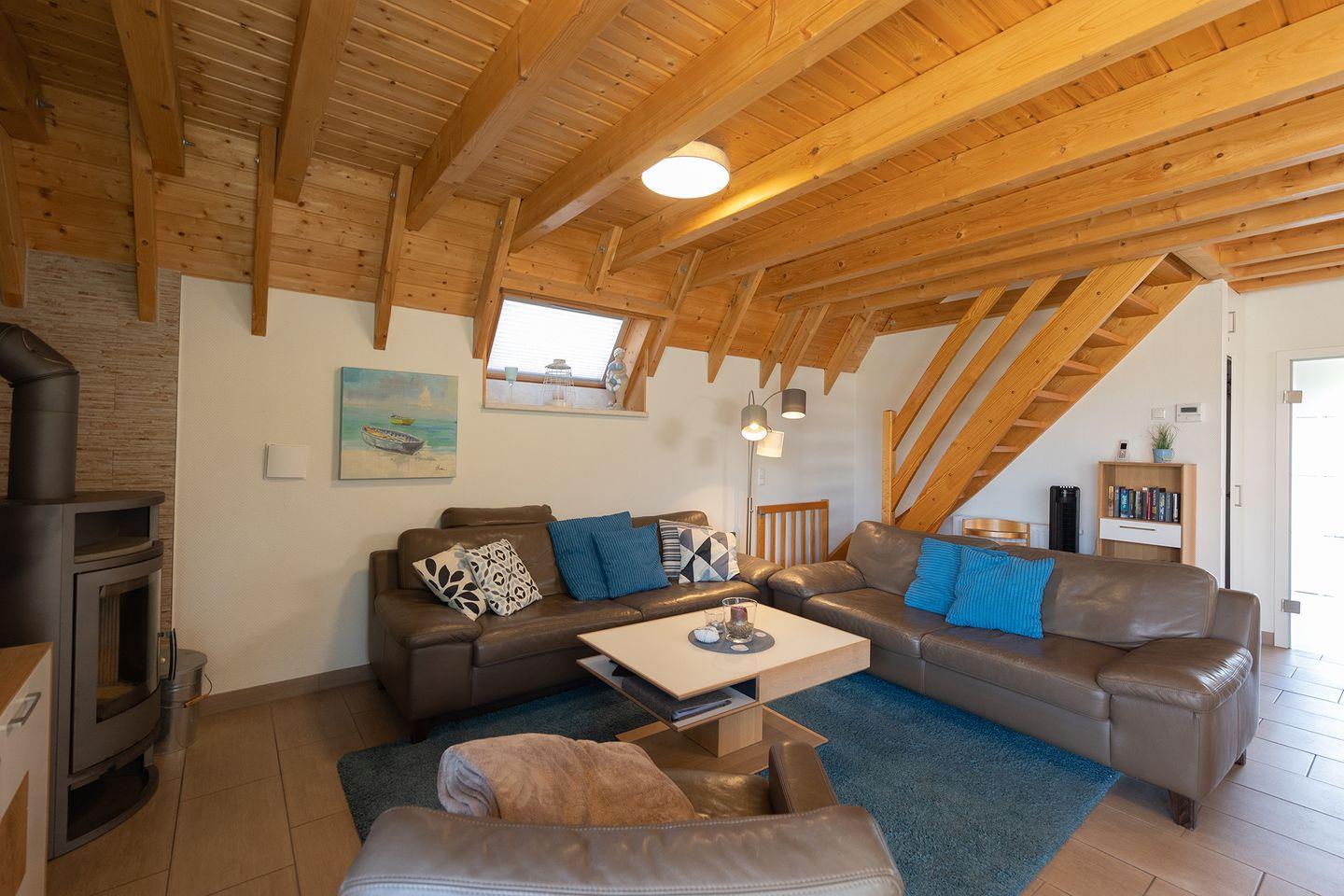 Mit 85?m² Wohnfläche auf zwei Etagen ist genug Platz für bis zu sechs Personen. Drei Schlafzimmer, zwei WCs, voll ausgestattete Küche mit Geschirrspüler, Kaminofen, Waschmaschine und Trockner. Für Familien gibt’s Kinderbett, Hochstuhl und eine geschützte Terrasse mit Grillmöglichkeit.