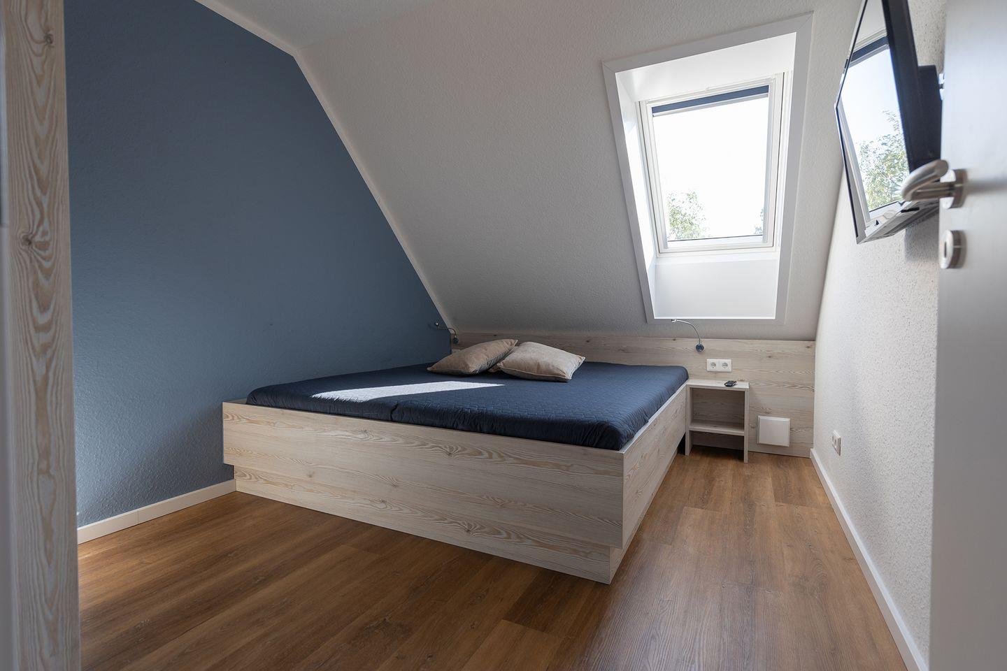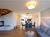 Im Erdgeschoss: ein heller Wohn-Essbereich mit gemütlicher Wohnlandschaft, offener Küche, Esstisch und Gäste-WC. Im Obergeschoss: drei Schlafzimmer – mit Doppelbett, zwei Einzelbetten und einem Etagenbett – sowie ein Duschbad. Alle Schlafräume können verdunkelt werden und sind mit Laminat ausgelegt. Fußbodenheizung und automatische Be- und Entlüftung sorgen für ein angenehmes Raumklima.