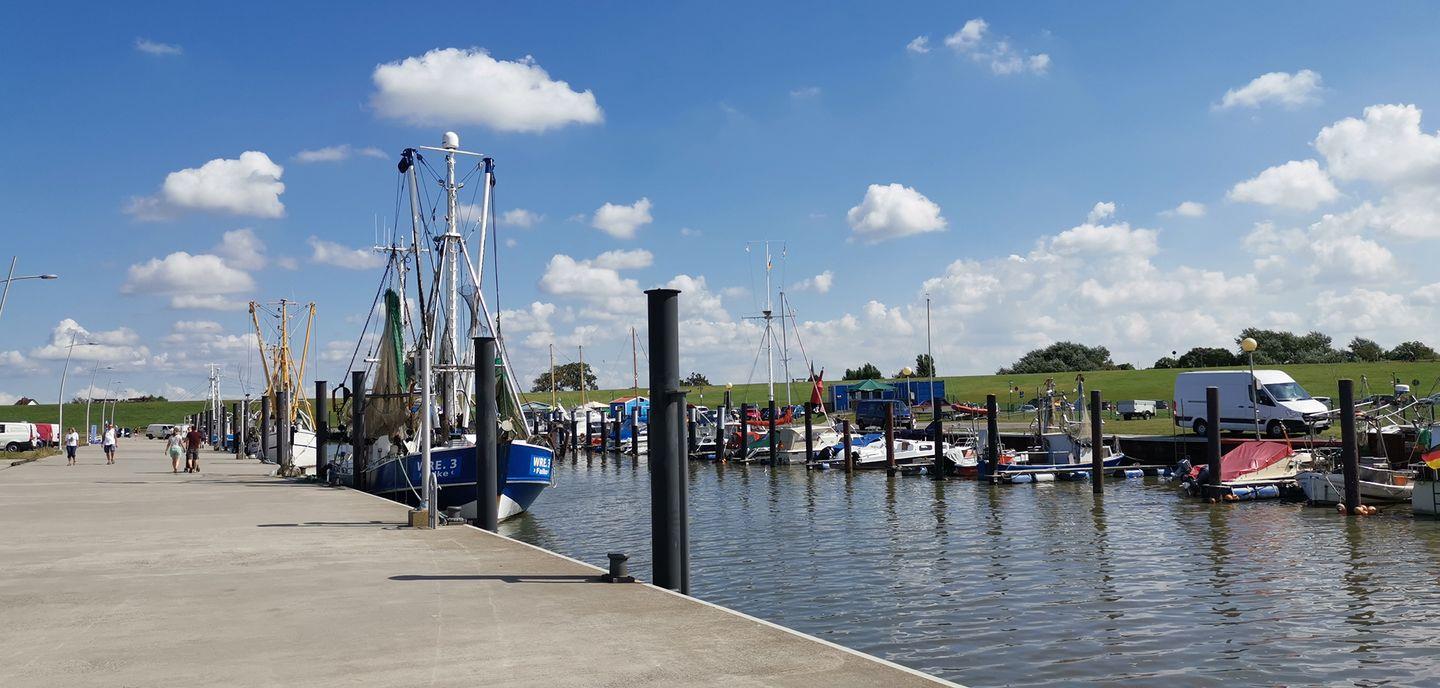 Zum Grünstrand sind es nur ein paar Minuten zu Fuß. Der Kutterhafen, das Wattenmeer und das Muschelmuseum liegen gleich ums Eck. Wer mag, schwingt sich aufs Rad, läuft am Deich entlang oder macht einen Ausflug nach Bremerhaven oder Cuxhaven. Und wenn abends die Sonne tief steht: einfach draußen sitzen und zuhören, wie der Tag langsam leiser wird.