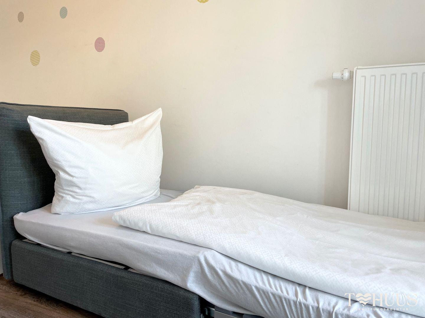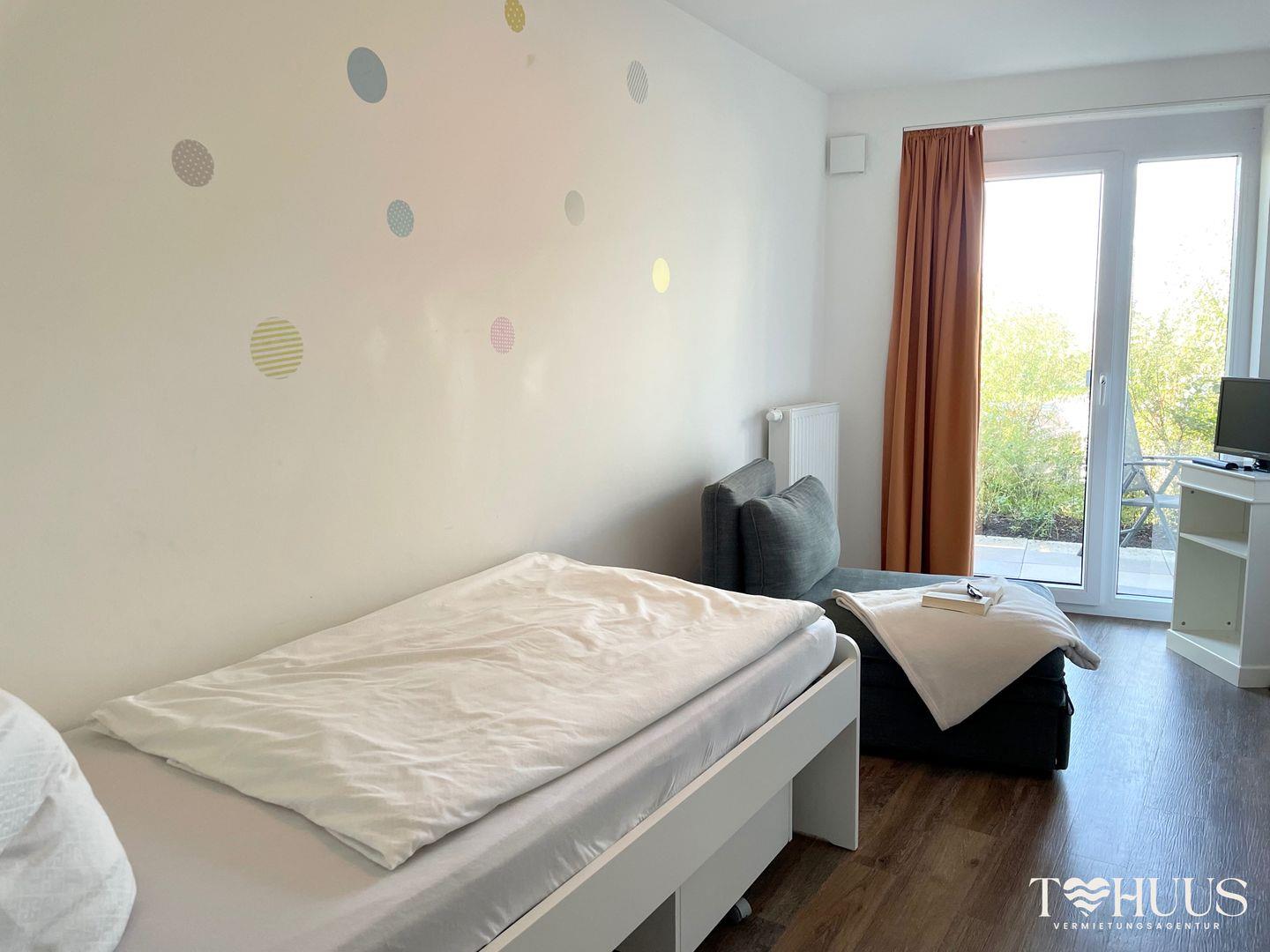 Im Schlafzimmer erwartet dich ein komfortables Boxspring-Doppelbett (zwei Matratze je 0,90 m x 2,00 m), Nachttische und ein Kleiderschrank. Das zweite Schlafzimmer bietet ein Einzelbett ( Matratze 0,90 m x 2,00 m), einen Schlafsessel und einen weiteren Flachbild-TV.