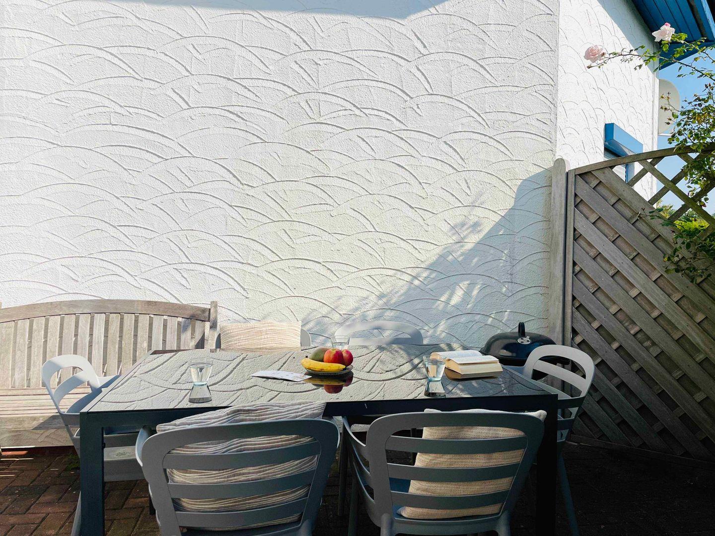 Der helle Wohnbereich im Erdgeschoss lädt mit einer gemütlichen Couchgarnitur, TV und kostenfreiem WLAN zum Verweilen ein. Hier kannst du entspannte Abende verbringen oder gemeinsam Zeit im offenen Essbereich genießen. Die angrenzende Küche ist bestens ausgestattet und bietet alles, was du für deinen Aufenthalt brauchst – inklusive Geschirrspüler und Waschmaschine. Von hier aus gelangst du auf die möblierte Terrasse und in den eingezäunten Garten, wo auch dein Vierbeiner ausreichend Platz hat.