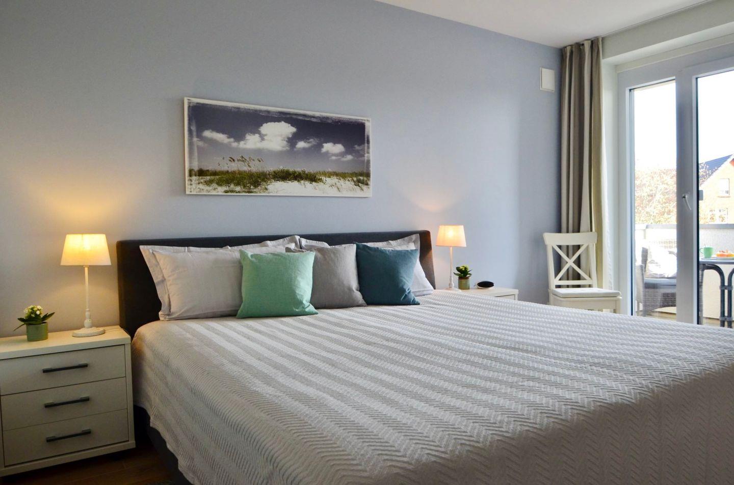 Die helle 3-Zimmer-Wohnung ist ideal für bis zu 4 Personen und barrierefrei zugänglich dank Fahrstuhl und schwellenlosem Design. Zwei möblierte Balkone laden dazu ein, die Sonne morgens und abends zu genießen. Zudem ist die Wohnung vom Deutschen Tourismusverband mit der 4 Sterne Klassifizierung ausgezeichnet.