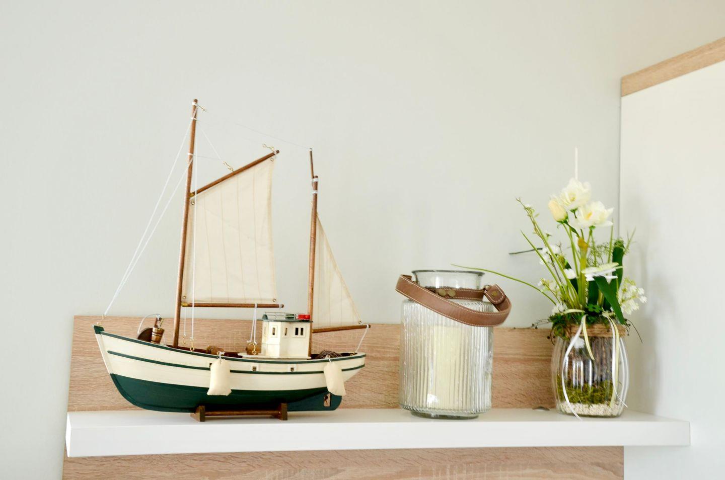 Der offene Wohn- und Essbereich mit Einbauküche (inkl. Spülmaschine) und bodentiefen Fenstern in Richtung Hafen bietet eine entspannte Atmosphäre. Das Schlafzimmer ist mit einem komfortablen Boxspring-Doppelbett ausgestattet, während das Gästezimmer ein ausziehbares Doppelbett-Schlafsofa bietet. Alle Räume verfügen über LED-TVs und können durch elektrische Rollläden abgedunkelt werden.