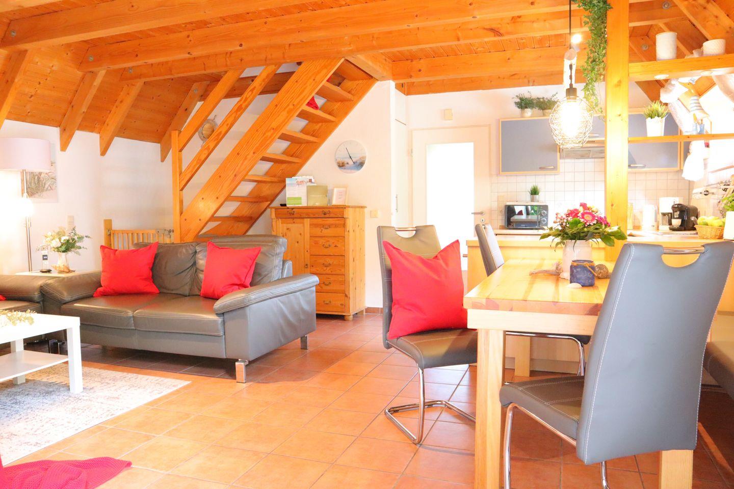 Einen kurzen Spaziergang vom Strand entfernt, erwartet Sie hier ein gemütlicher Rückzugsorts, das allen Komfort bietet, den Sie sich wünschen. Die hellen, geräumigen Zimmer über zwei Etagen und einer Wohnfläche von 85 m² bieten ausreichend Platz für bis zu 6 Personen – ideal für Familien oder einen Urlaub mit Freunden.