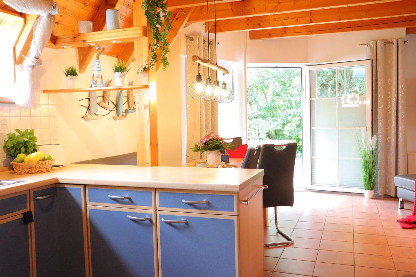 Die offene, modern ausgestattete Küche ist ideal für gemeinsame Kochabende, während die sonnendurchfluteten Räume eine warme und freundliche Atmosphäre schaffen. Ein Schlafzimmer mit zwei Einzelbetten und ein modernes Duschbad bieten zusätzlichen Komfort.