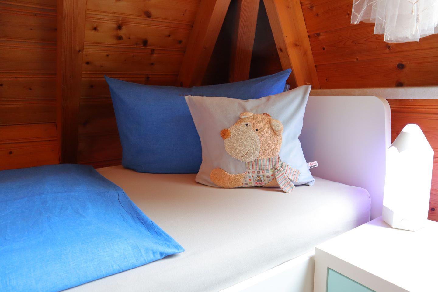 Das Obergeschoss überzeugt mit einem einladenden Elternschlafzimmer mit TV und einem weiteren Zimmer mit getrennten Betten. Ein separates WC sorgt auch hier für Bequemlichkeit.