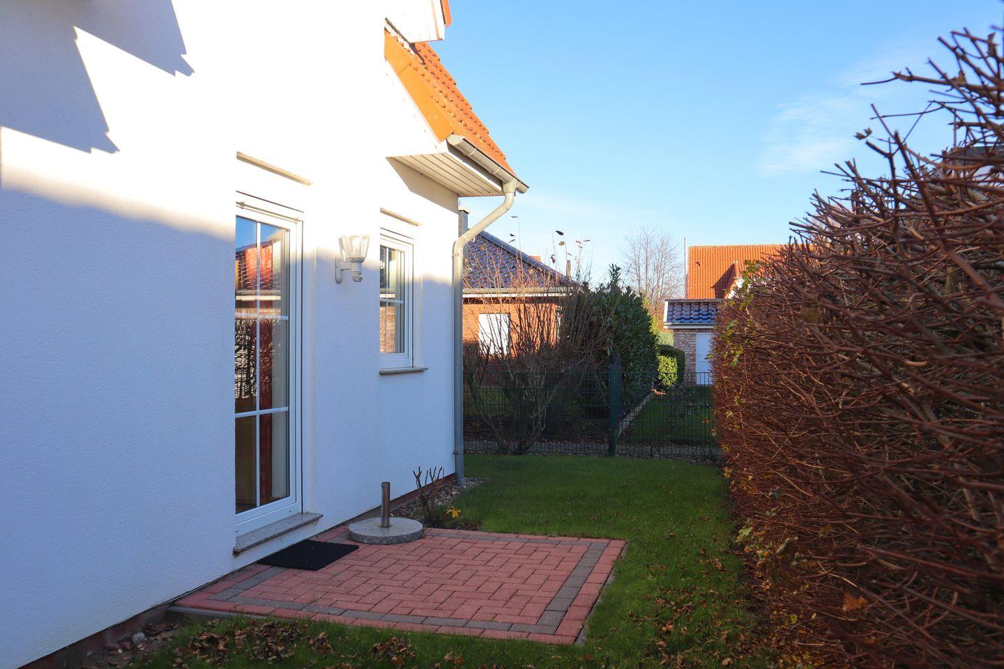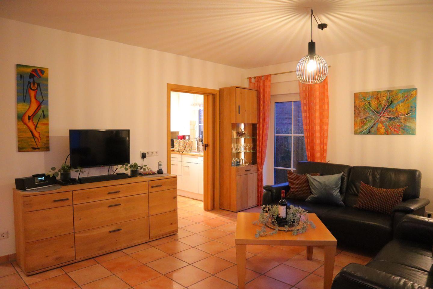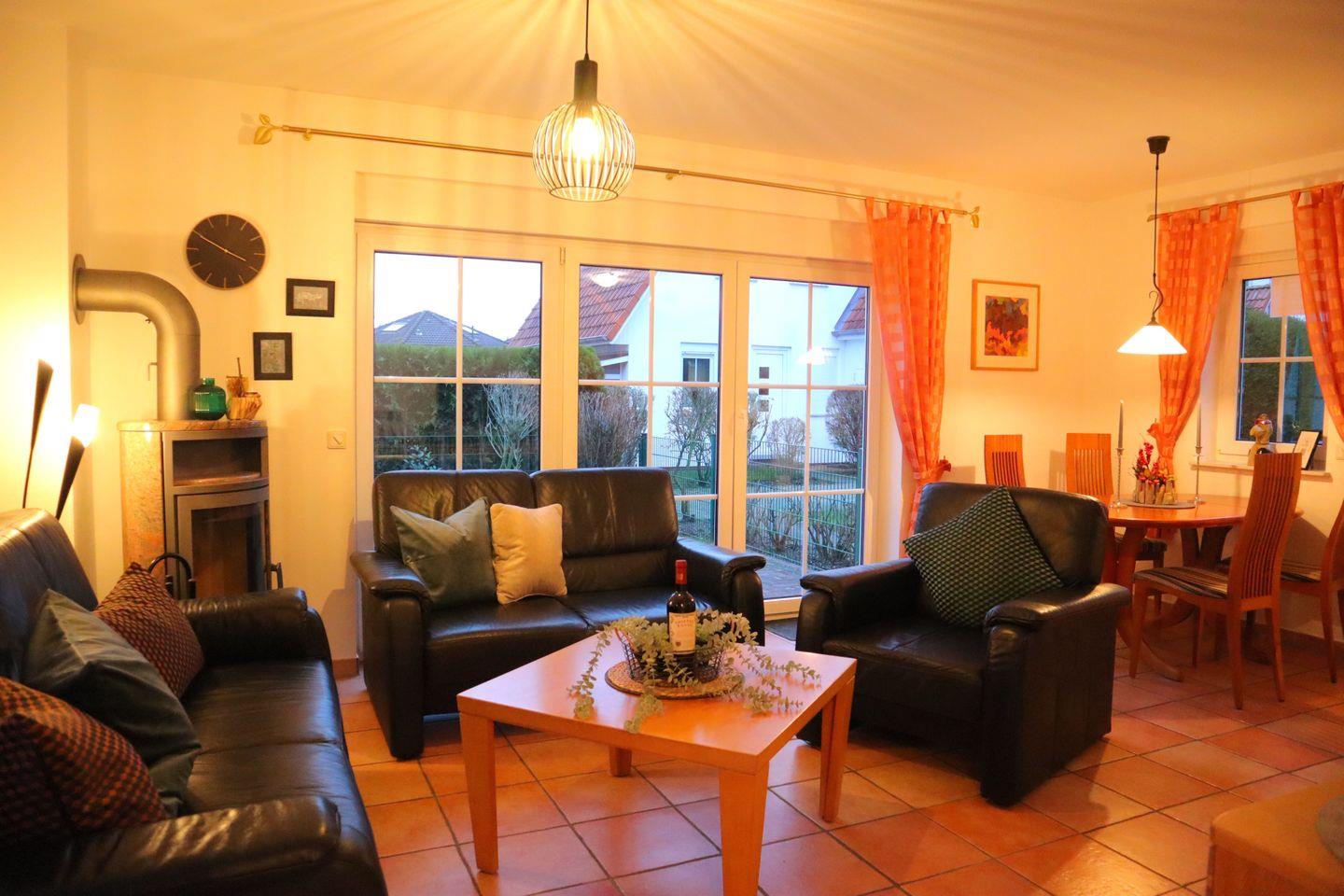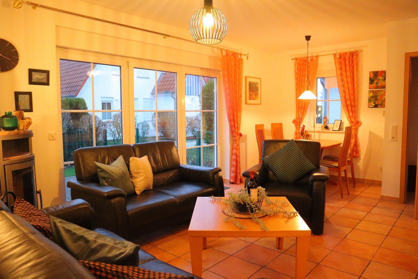 Eine Terrasse und der eingezäunte Garten laden zum Entspannen ein. Kaminofen, Fußbodenheizung, Smart-TV, Bose-Sound, Waschmaschine und eine voll ausgestattete Küche gehören zur Ausstattung. Zwei Schlafzimmer und zwei Duschbäder (EG & OG). Hunde sind willkommen.