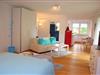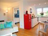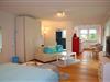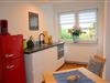 Der gemütliche Schlafbereich mit großem Kleiderschrank und komfortablem Doppelbett lädt zu erholsamen Nächten ein. Im Wohnbereich sorgen eine gemütliche Sitzecke und ein großer TV für entspannte Abende. Die voll ausgestattete Küche bietet alles, was Sie für Ihre Urlaubsverpflegung benötigen – vom ersten Kaffee am Morgen bis zum ausgiebigen Abendessen nach einem Tag an der frischen Seeluft.