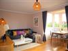 Ein helles Schlafzimmer mit Doppelbett, der moderne Wohn- und Essbereich sowie der direkte Zugang in den kleinen Garten sorgen für Erholung.