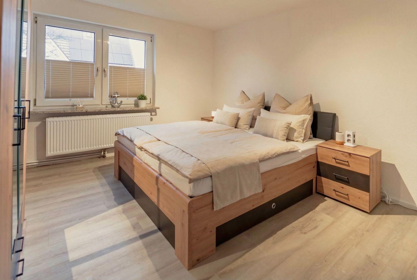 Die lichtdurchfluteten Räume, die hochwertige Küche, das große Badezimmer mit Dusche und Badewanne, die eigene Waschküche und der weitläufige Garten machen die Wohnung zu einem besonderen Ort. Die ruhige Lage in einem Wohngebiet, kombiniert mit der Nähe zum Ortskern und zur Nordsee, schafft eine entspannte und gleichzeitig praktische Umgebung für deinen Aufenthalt.