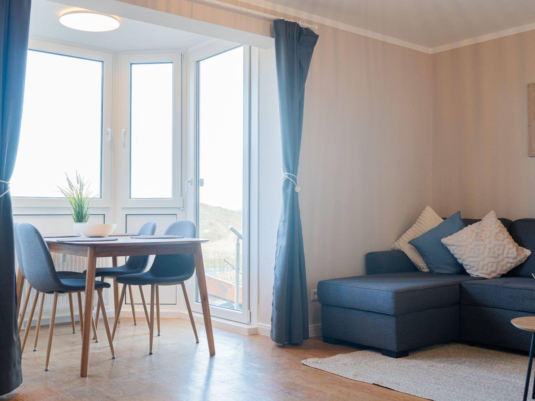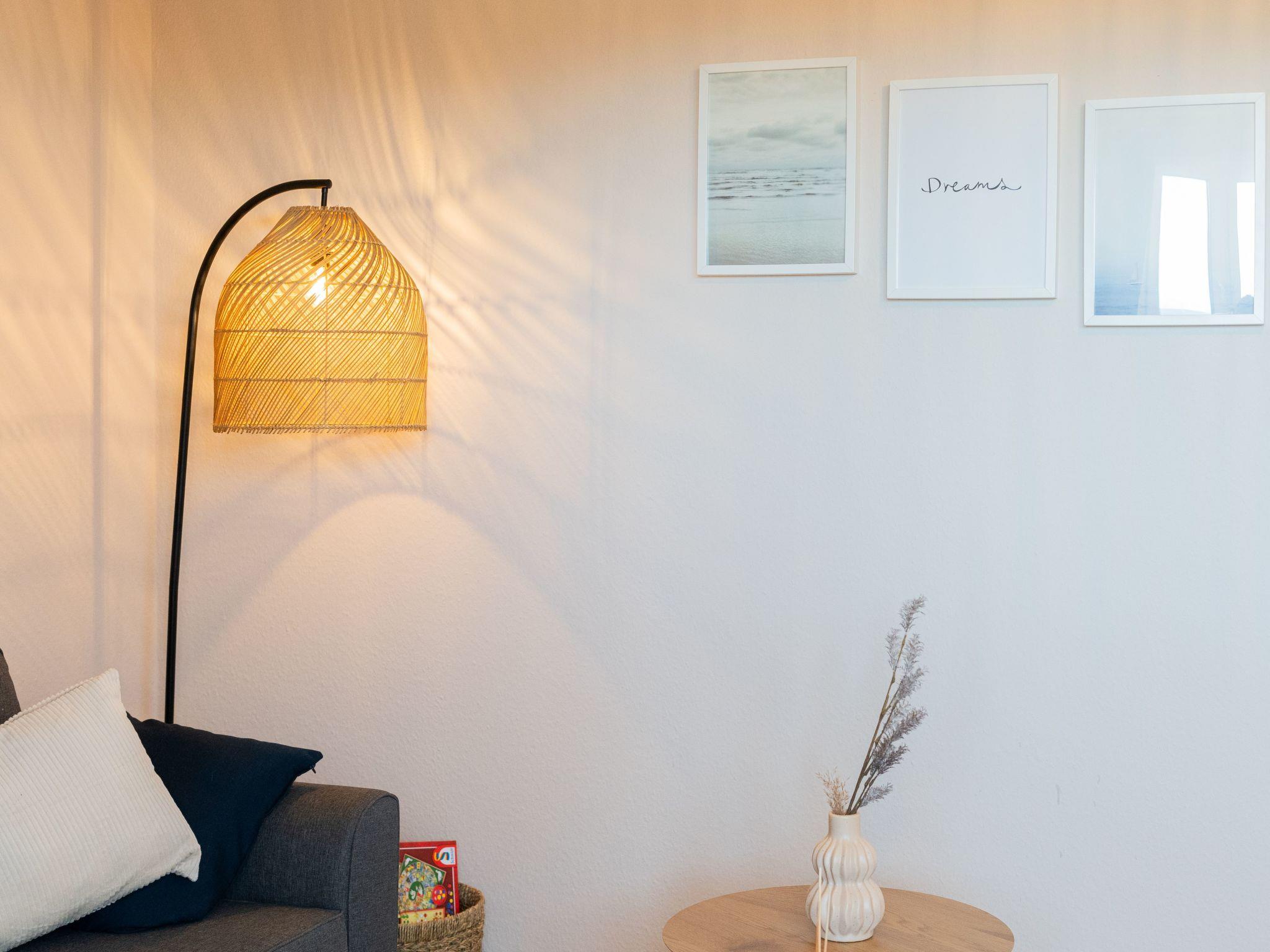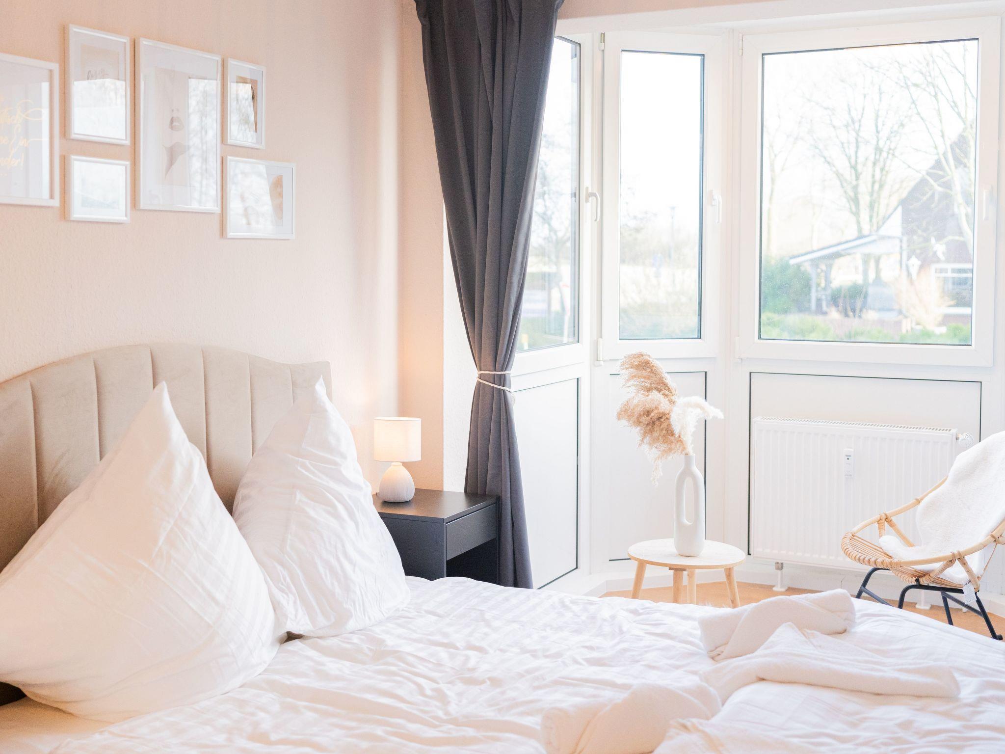 In our modern holiday flat on the North Sea coast, you can expect a cosy bedroom with bay window and reading chair, a living-dining room for 4 people, fully equipped kitchen, cable TV, Netflix and board games. You can also use our sauna area and get tips for excursions. Make yourself at home!