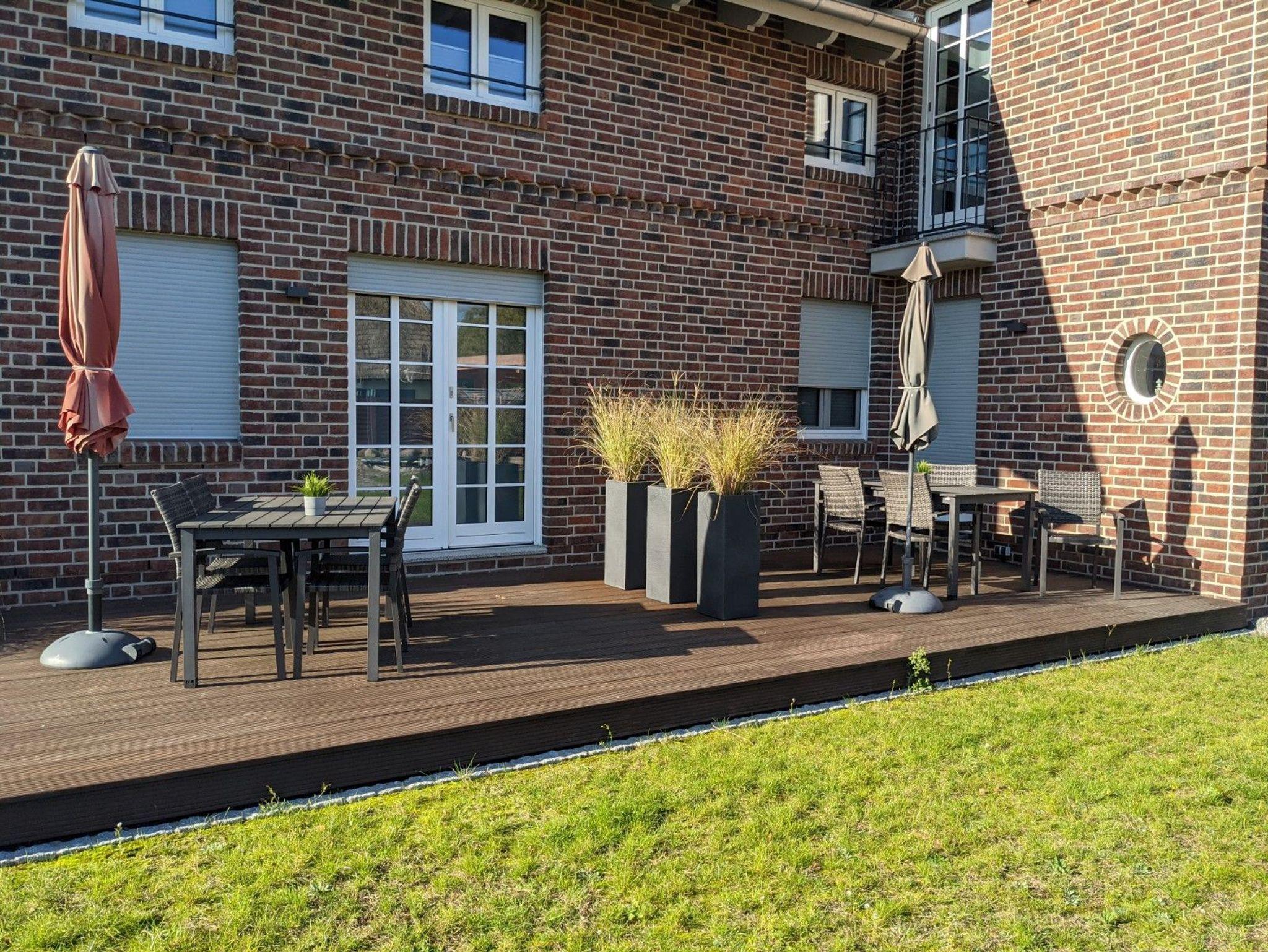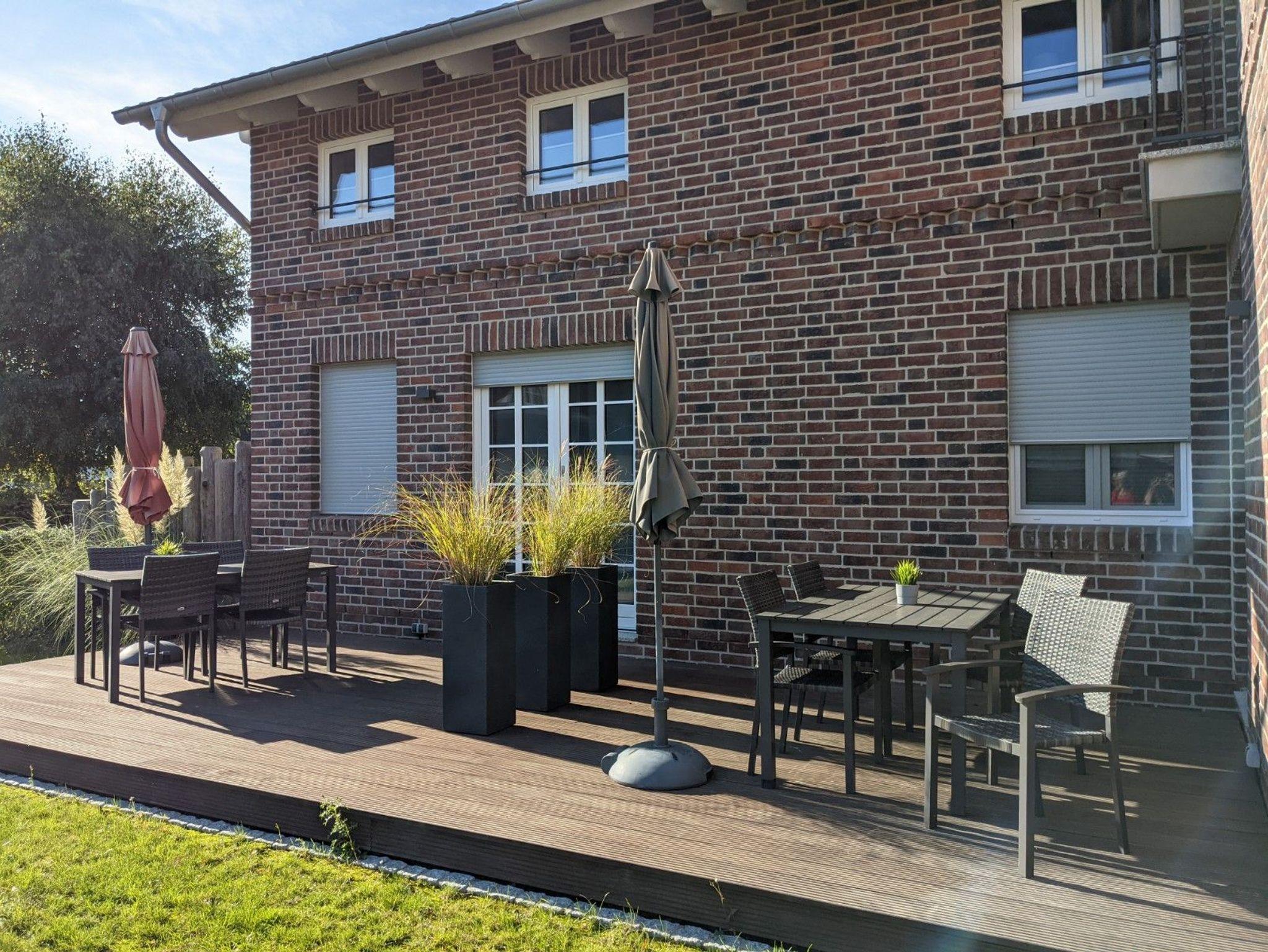 Die Ferienwohnung befindet sich im Erdgeschoss und ist mit einer Terrasse und Gartenmöbeln direkt an der Wohnung ausgestattet.