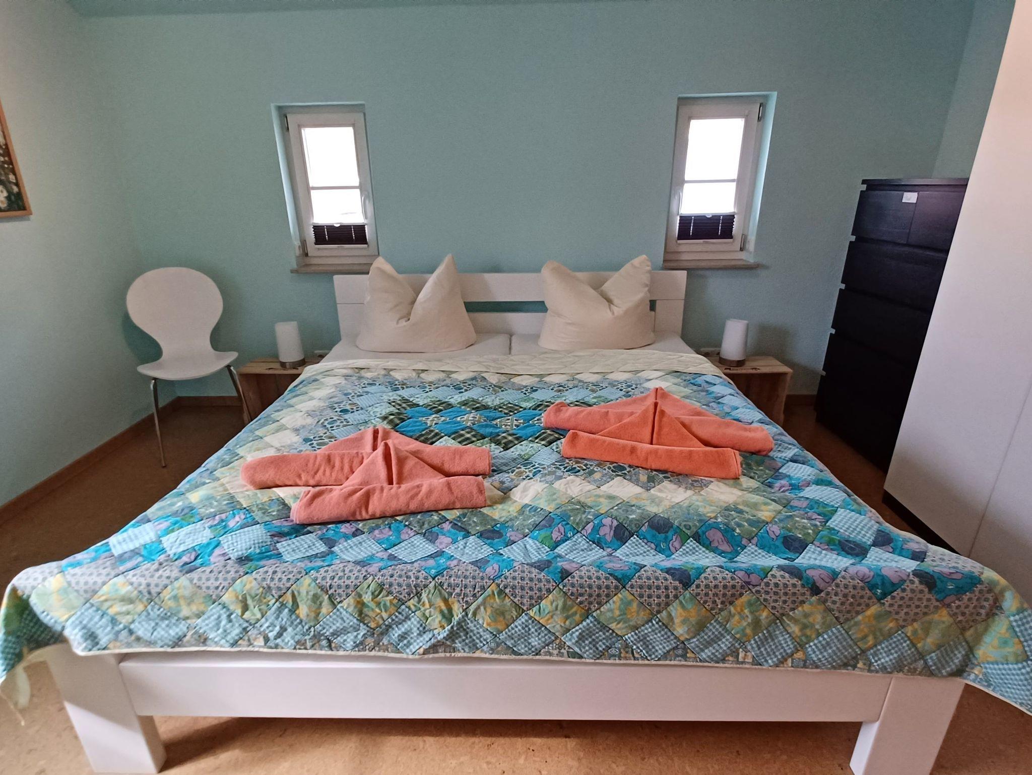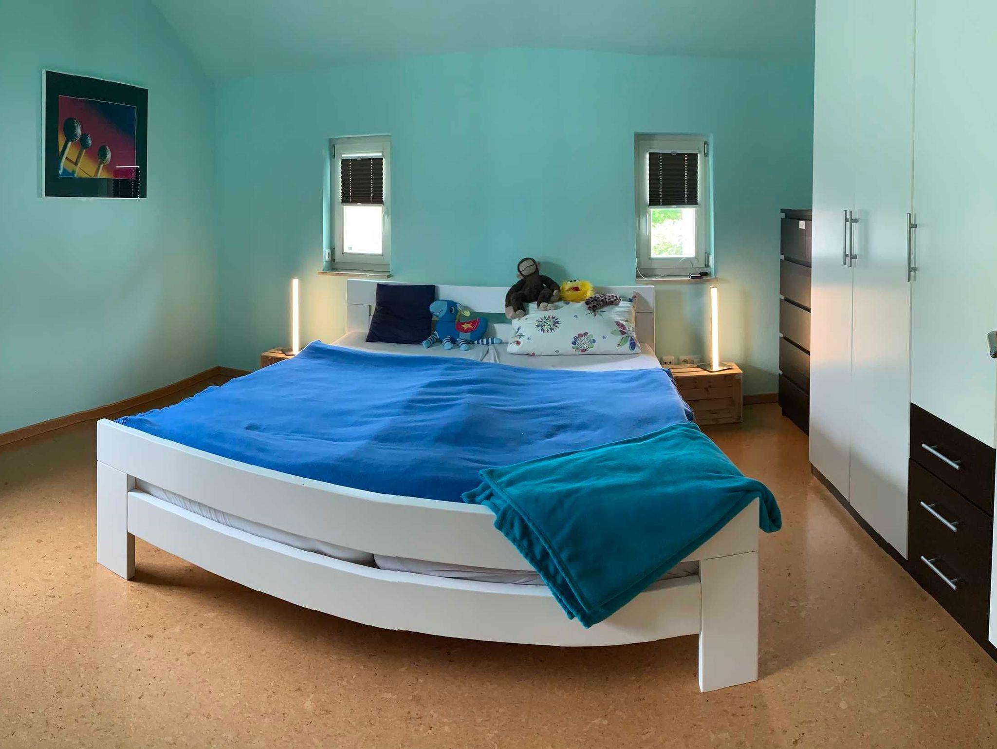 Im Obergeschoss befinden sich die Schlafzimmer. 1. Schlafzimmer mit Doppelbett ( 1,80 x 2,00 m ) und zusätzlichem TV, 2. Schlafzimmer mit Futonbett ( 1,60 x 2,00 m ) beide Betten mit getrennten Matratzen.