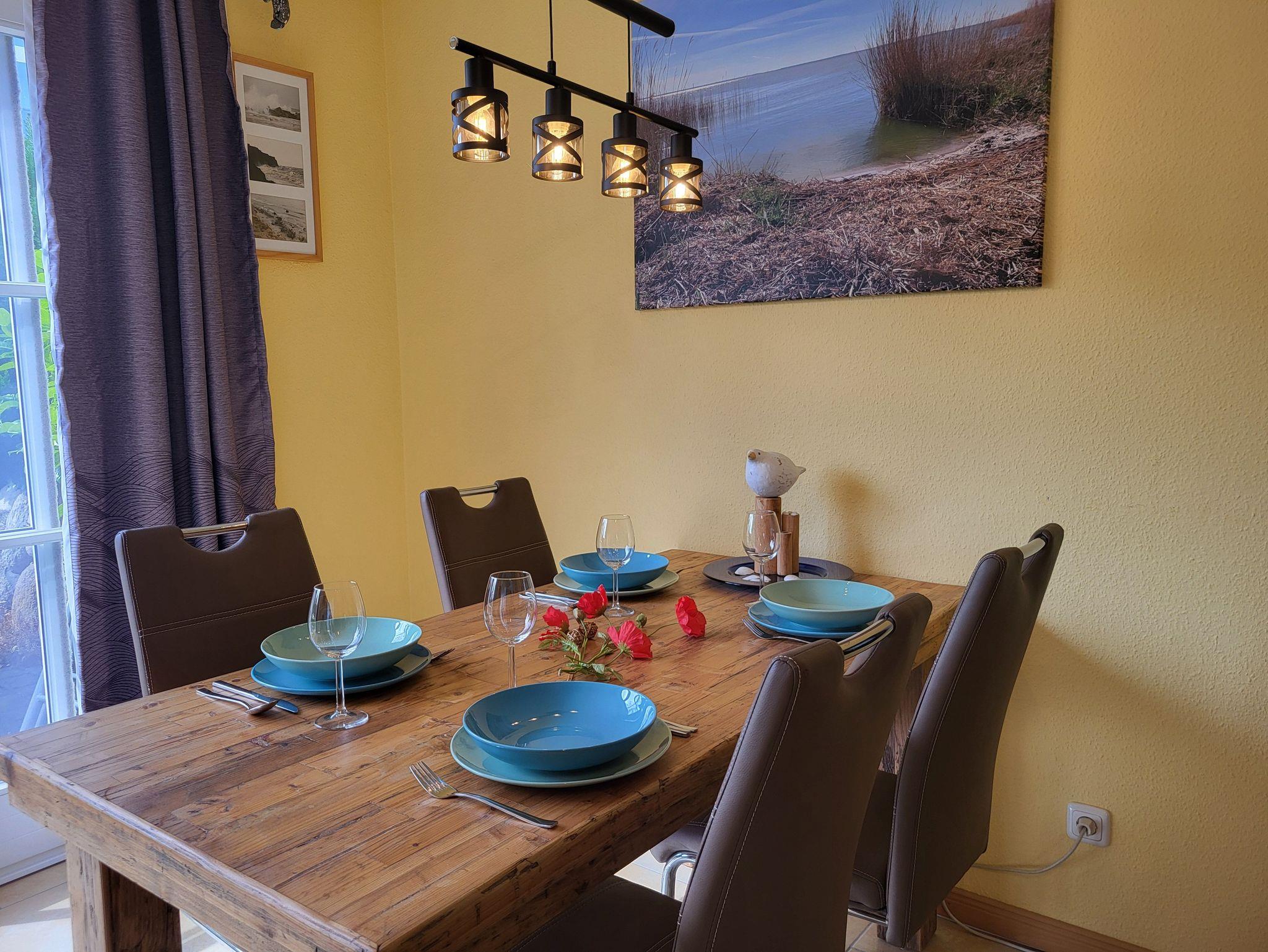 kleines gemütliches Reihenendhaus in ruhiger und zentraler Lage im Ortskern von Wustrow. Die Terrasse mit dem Strandkorb und Gartenmöbeln und Liegen laden zum Entspannen und relaxen ein.Das Ferienhaus hat 85 m² Wohnfläche und ist für 2 bis 4 Personen geeignet . Nur ca. 800 m von Strand und Bodden entfernt Das Ferienhaus hat einen offenen Wohnbereich mit Kaminofen und offener Küchenzeile, die zum gemeinsamen kochen einlädt. Im Erdgeschoss befindet sich ein barrierefreies Badezimmer mit ebenerdiger Dusche und im Obergeschoss befindet sich ein weiteres Badezimmer mit Badewanne.