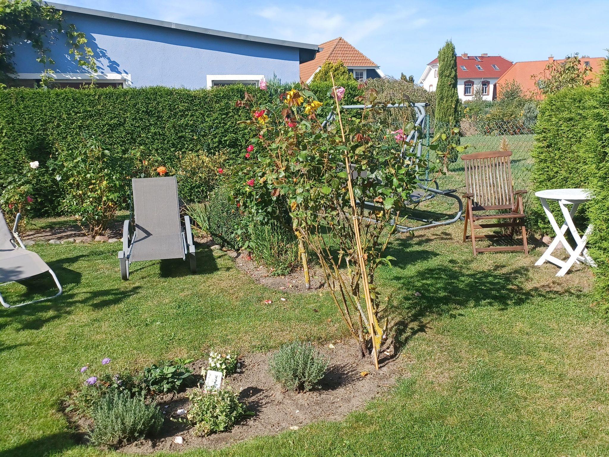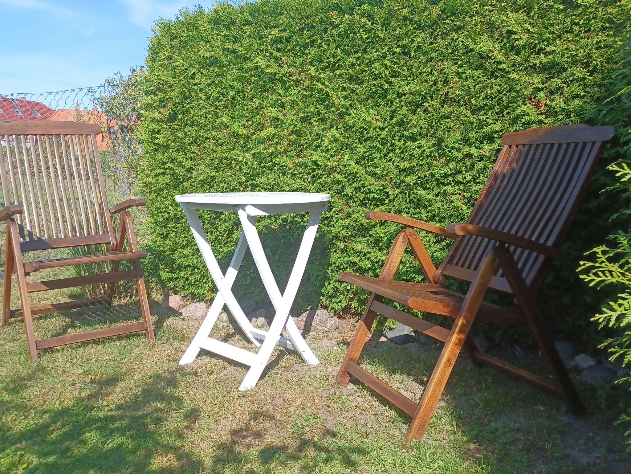 gemütliche Ferienwohnung in ruhiger Ortslage in einem alten Kapitänshauses. Die Sitzecke befindet sich im Garten und lädt auch am Abend zu einem gemütlichen Ausklang des Tages mit einem guten Glas Wein ein.