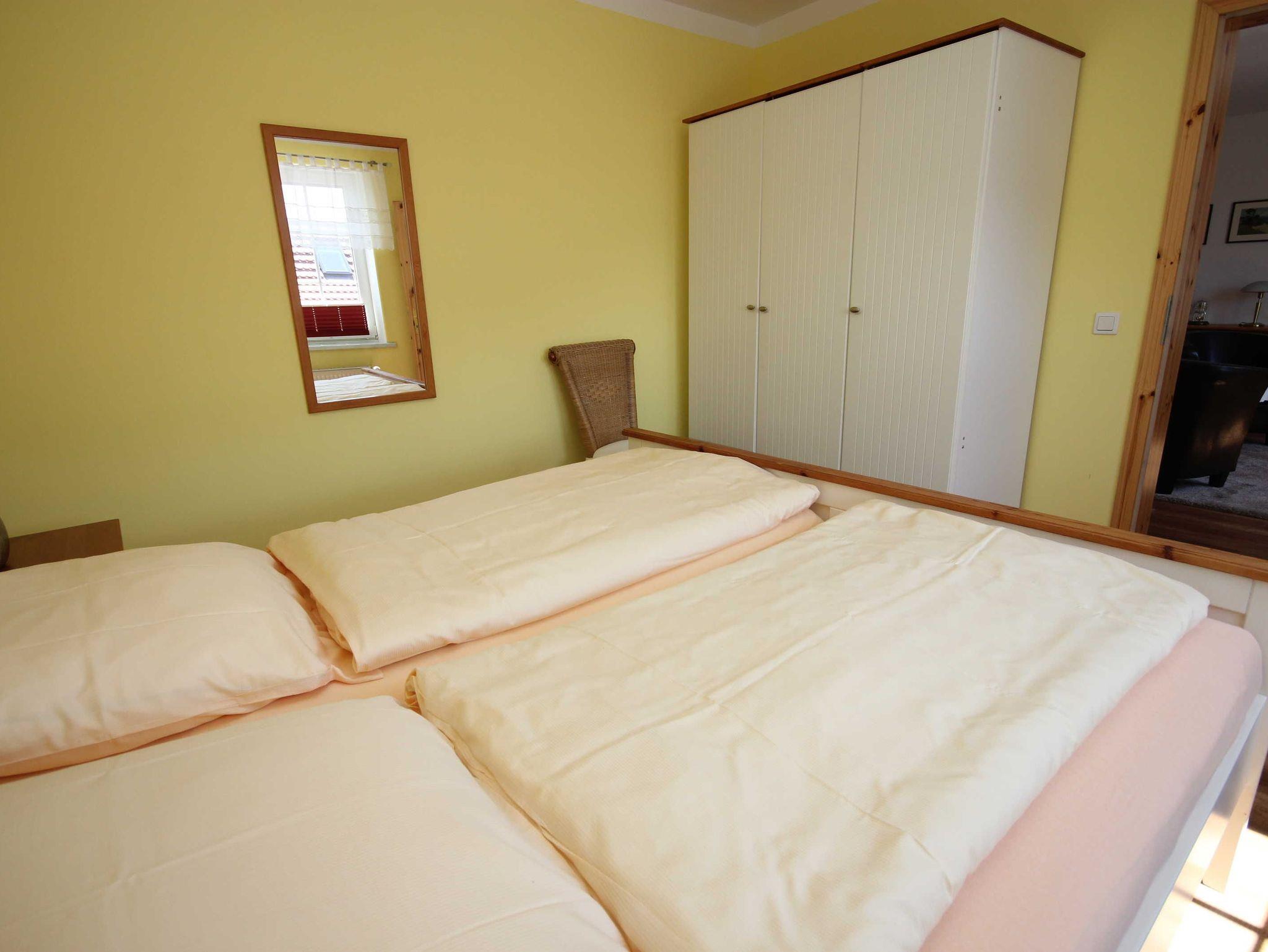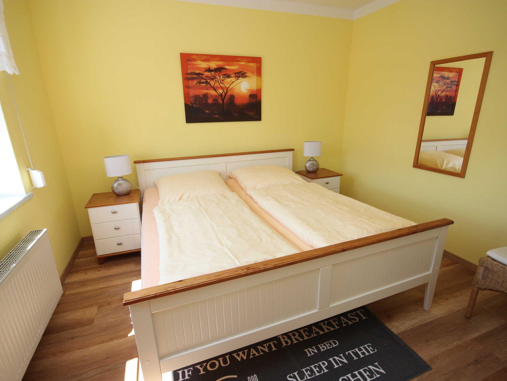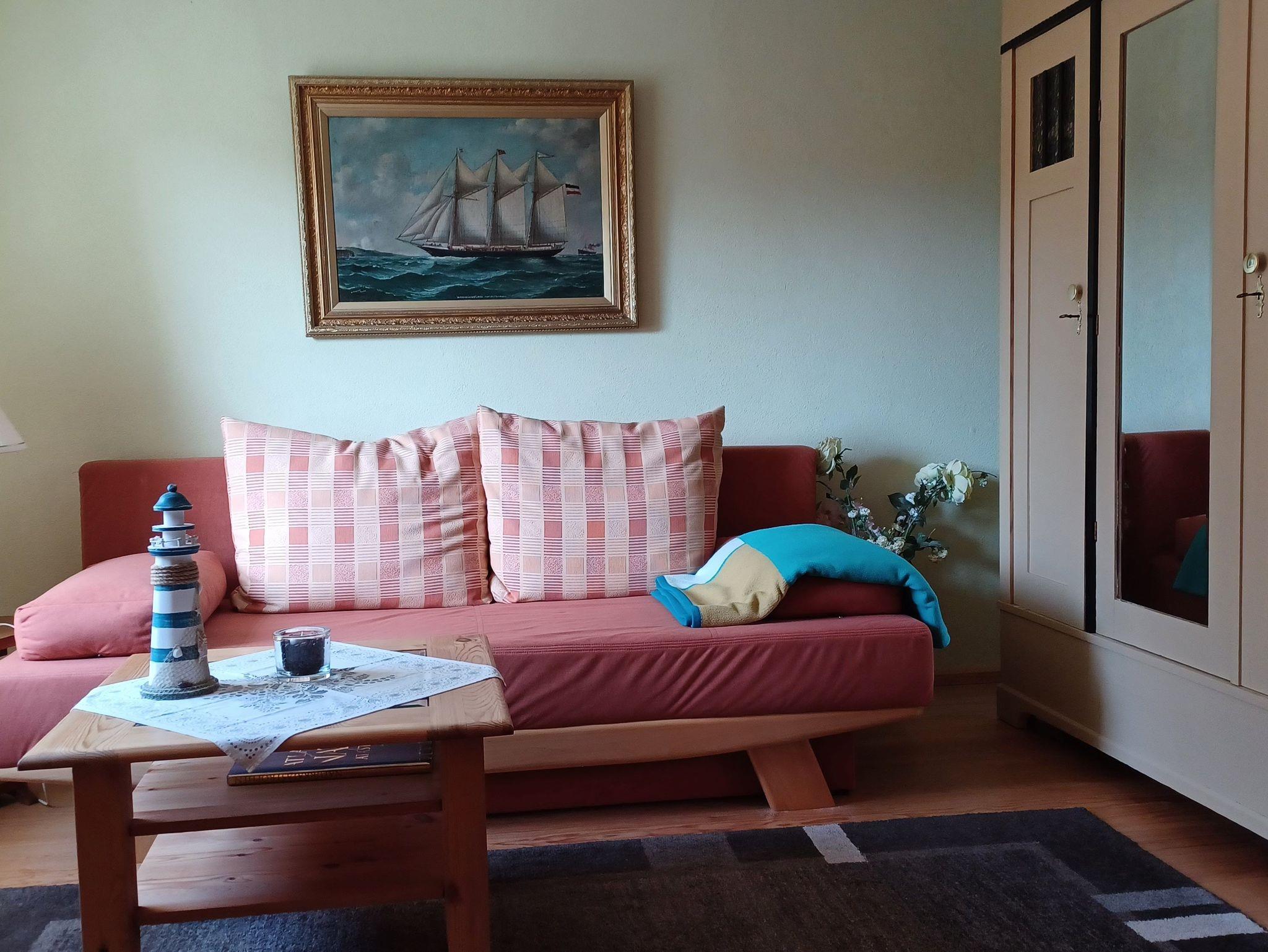 Der kleine Hafen und das Zentrum , sowie den feinsandigen Strand erreichen Sie in ca.10 Gehminuten Die Ferienwohnung liegt im 1. Obergeschoss. Das Wohnzimmer verfügt über eine gemütliche Couch und SAT- TV. Im Schlafzimmer befindet sich ein Doppelbett 180 x 200 cm (mit getrennten Matratzen). Im Lesezimmer ist eine Schlafcouch. Die Küche ist ausgestattet mit Geschirrspüler, Kaffeemaschine, Toaster, Wasserkocher, Herd mit Cerankochfeld und Backofen, Ein kleiner Essplatz lädt zum frühstücken ein. Das moderne Bad hat eine ebenerdige Dusche. Die Fliegengaze im Wohn- und Schlafzimmer halten unangenehme Mücken fern. Das Haus verfügt über einen kostenlosen WLAN- Anschluß. Die Wohnung wird inclusive Bettwäsche übergeben, Handtücher können in der Zimmervermittlung für 7,00 € pro Person (1 Badetuch, 1 Handtuch) dazugebucht werden.