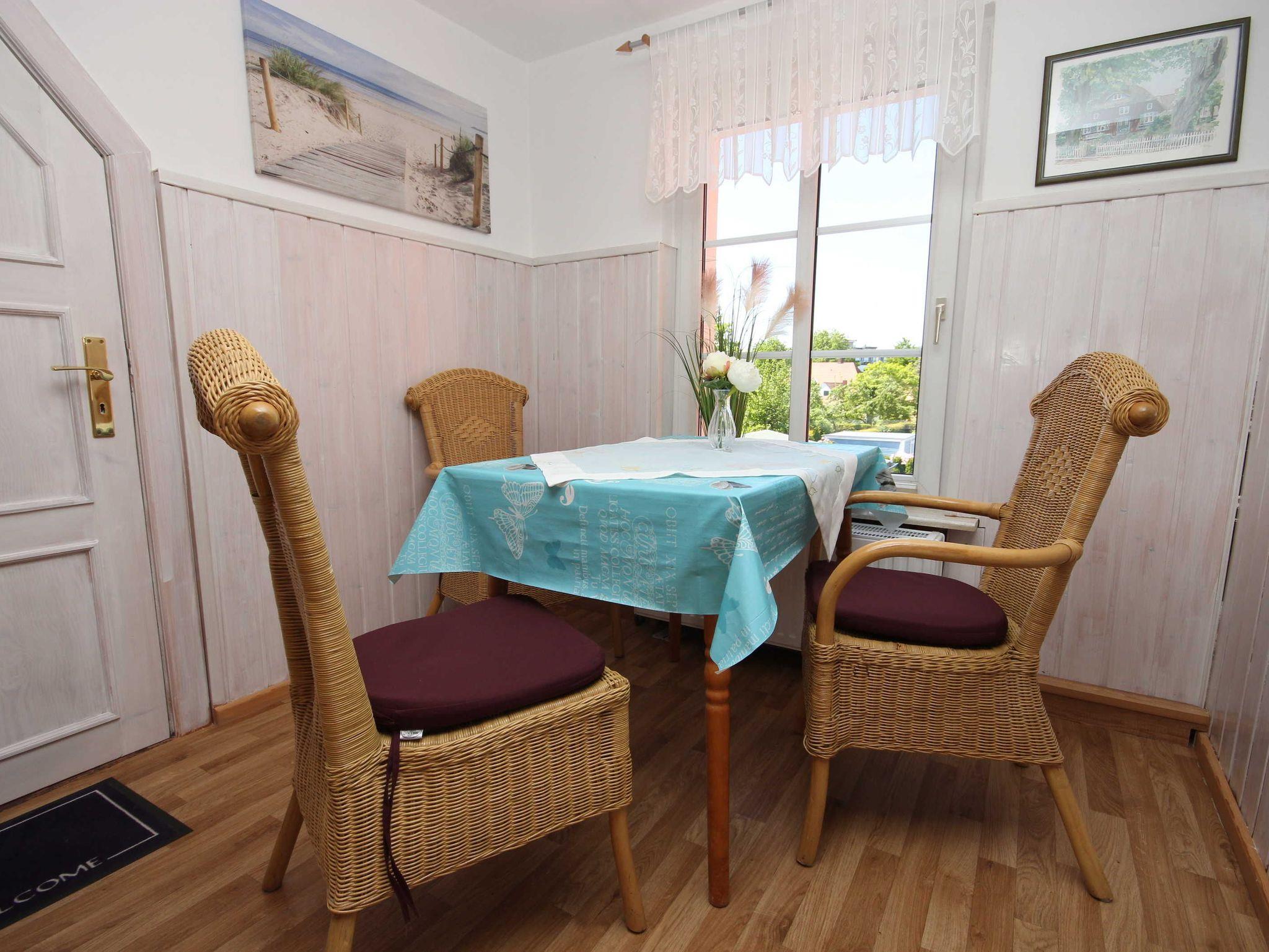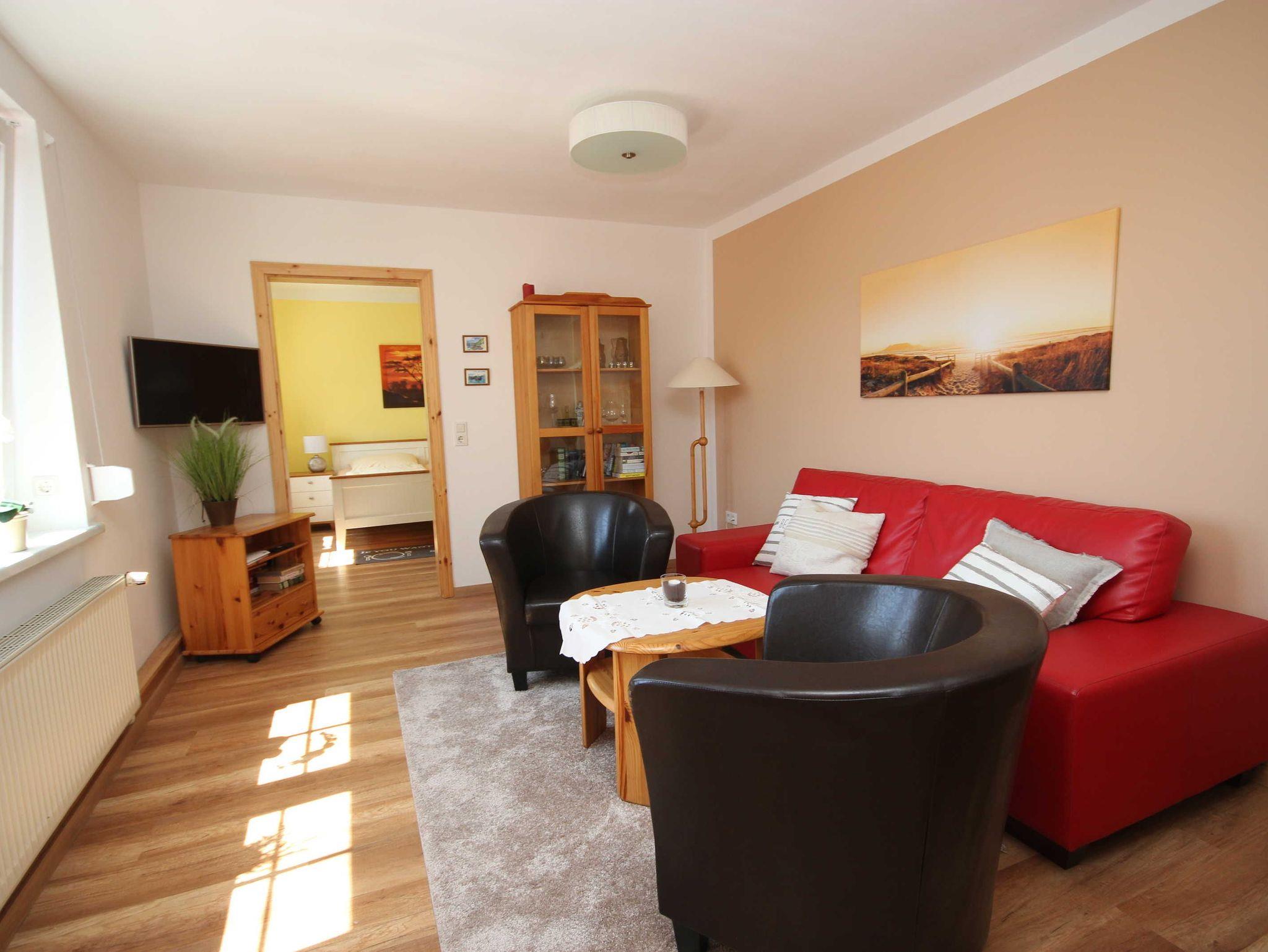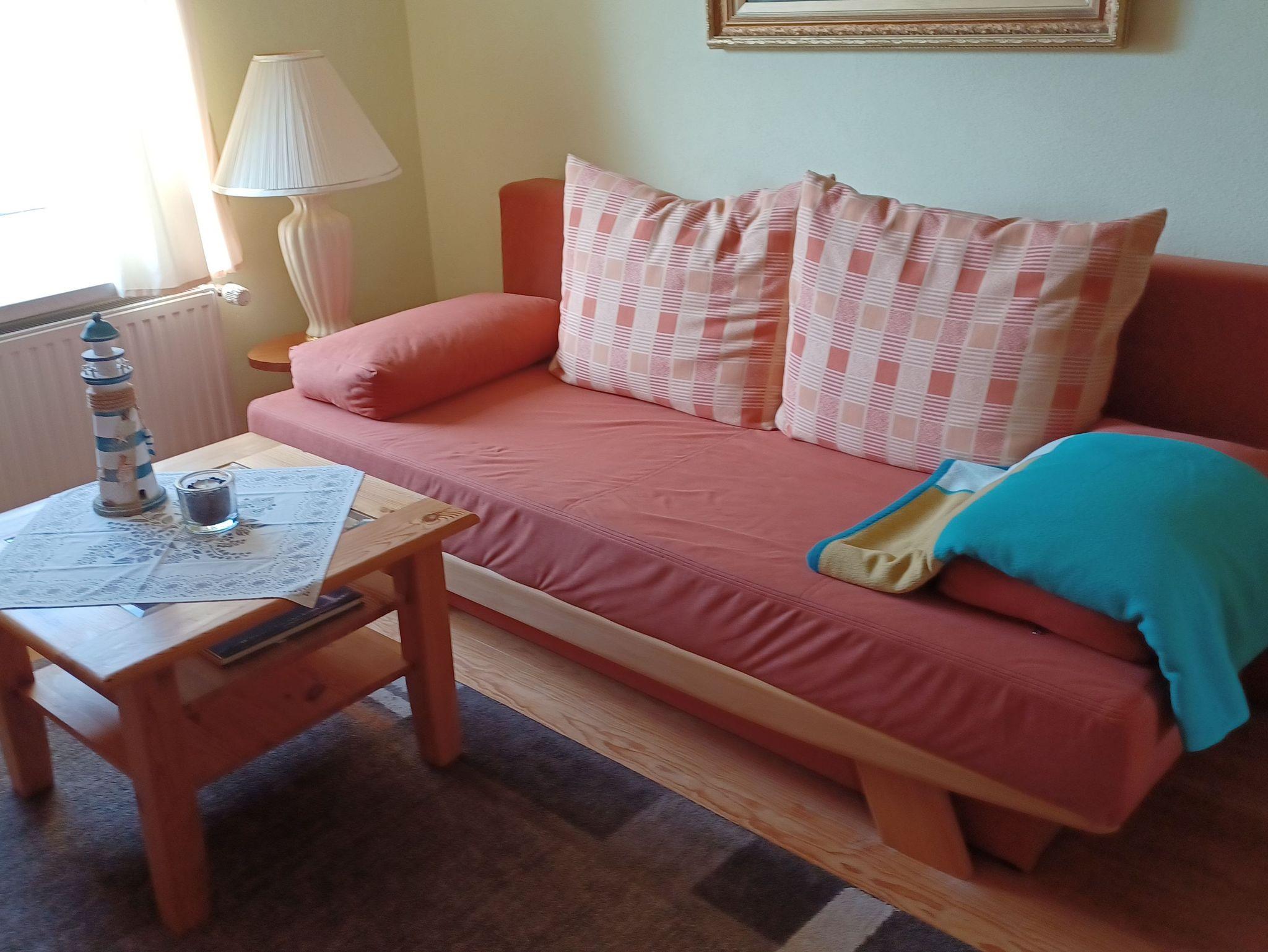 Der kleine Hafen und das Zentrum , sowie den feinsandigen Strand erreichen Sie in ca.10 Gehminuten Die Ferienwohnung liegt im 1. Obergeschoss. Das Wohnzimmer verfügt über eine gemütliche Couch und SAT- TV. Im Schlafzimmer befindet sich ein Doppelbett 180 x 200 cm (mit getrennten Matratzen). Im Lesezimmer ist eine Schlafcouch. Die Küche ist ausgestattet mit Geschirrspüler, Kaffeemaschine, Toaster, Wasserkocher, Herd mit Cerankochfeld und Backofen, Ein kleiner Essplatz lädt zum frühstücken ein. Das moderne Bad hat eine ebenerdige Dusche. Die Fliegengaze im Wohn- und Schlafzimmer halten unangenehme Mücken fern. Das Haus verfügt über einen kostenlosen WLAN- Anschluß. Die Wohnung wird inclusive Bettwäsche übergeben, Handtücher können in der Zimmervermittlung für 7,00 € pro Person (1 Badetuch, 1 Handtuch) dazugebucht werden.