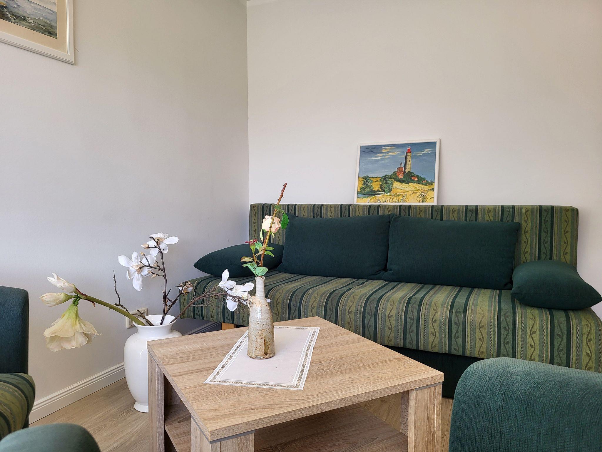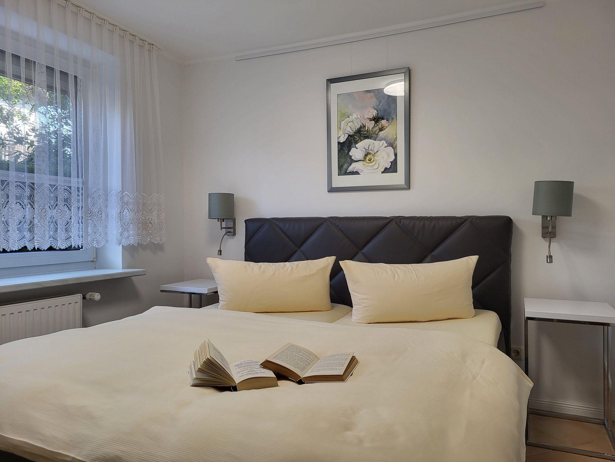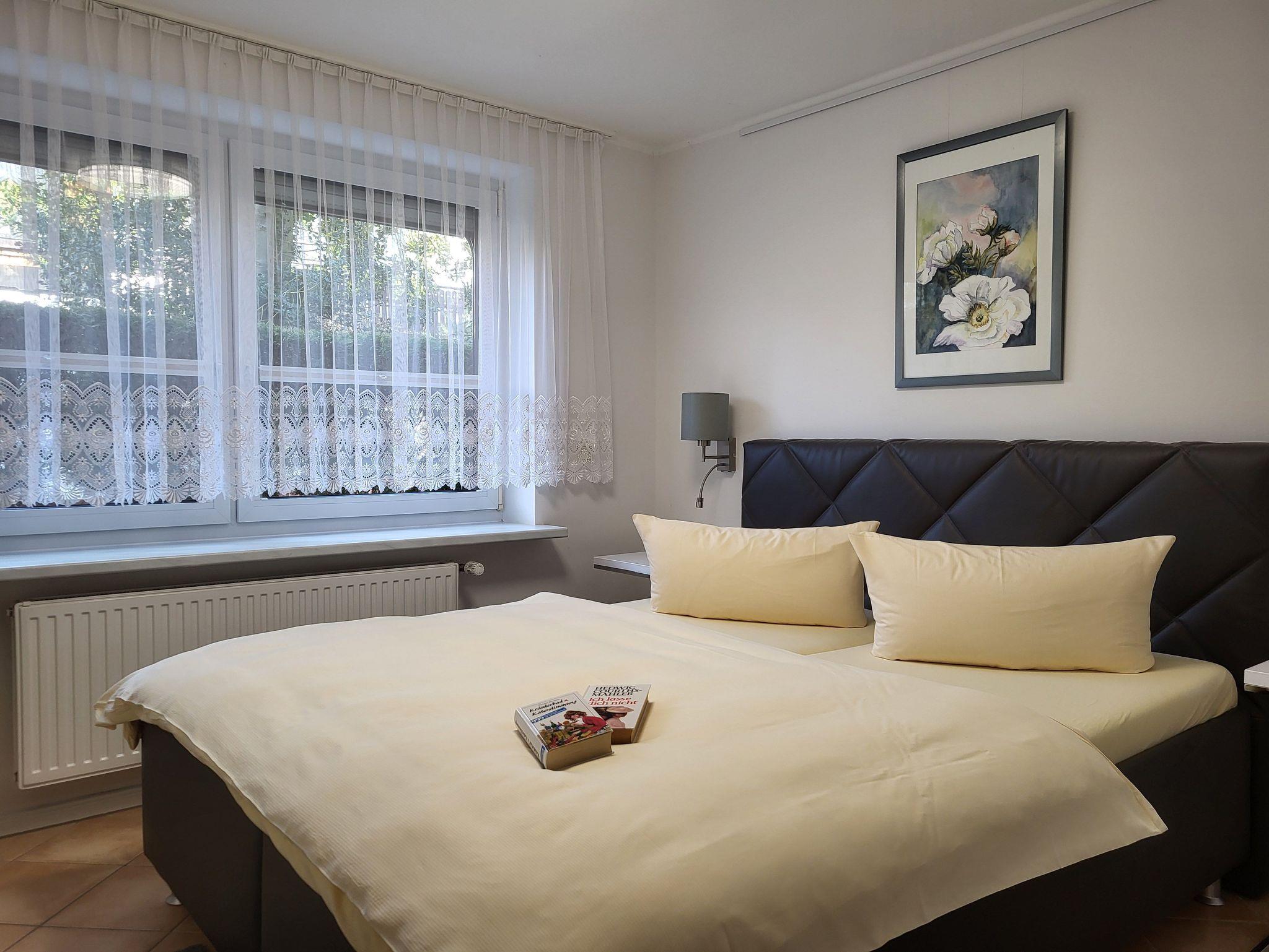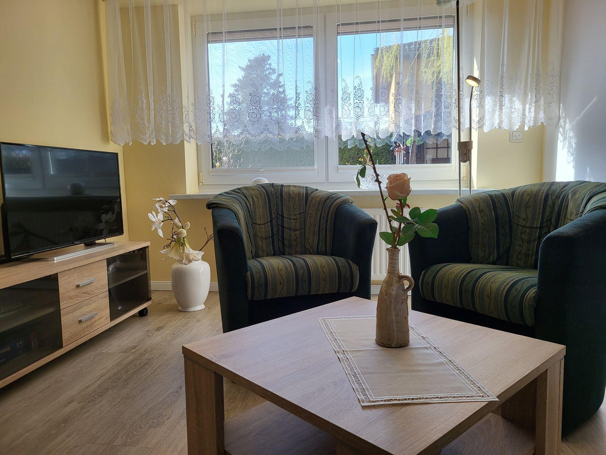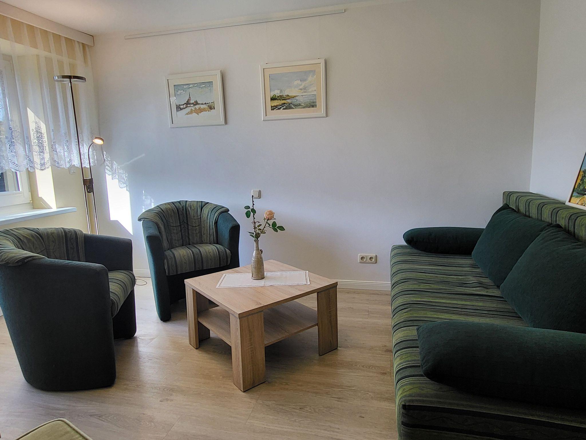 die zentral und hochwertig ausgestattete Ferienwohnung Anika 2 im Erdgeschos, liegt in ruhige Lage am Ortsrand. Der Sitzplatz mit Grillmöglichkeit befinden sich im Garten, diesen teilen Sie sich mit der Wohnung Anika 1. Die Wohnung verfügt über einen separaten Eingang und einen Parkplatz auf dem Grundstück. Im Wohnzimmer befindet sich eine Schlafcouch. Die große Wohnküche verfügt über einen Essplatz und ist ausgestattet mit einem Geschirrspüler, Kühlschrank mit Gefrierfach, Induktionskochfeld und Herd mit Backofen Das Schlafzimmer verfügt über ein Doppelbett 1,60 x 2,00 m (getrennte Matratzen). Die Bettwäsche ist inclusive, Handtücher können in der Zimmervermittlung für 7,00 € pro Person (1 Badetuch, 1 Handtuch) dazugebucht werden.Das sanierte Bad verfügt über eine ebenerdige Dusche.Die Ferienwohnung ist mit einem WLAN- Anschluß ausgestattet. Der Strand liegt in ca. 500 m Entfernung.