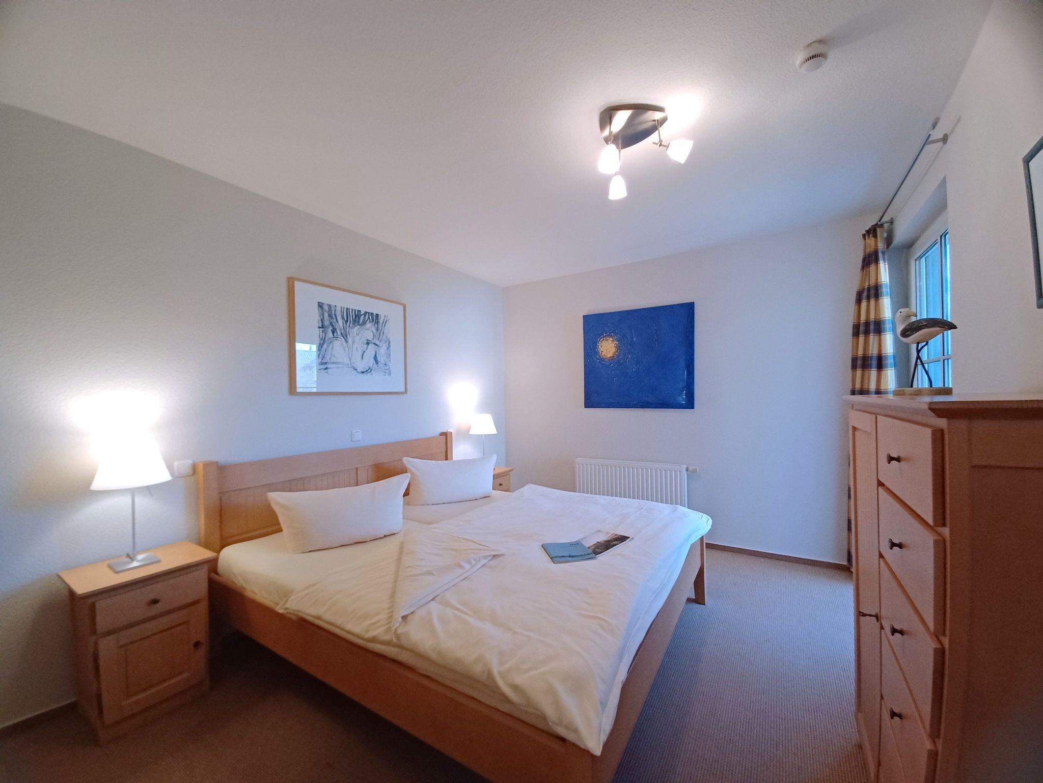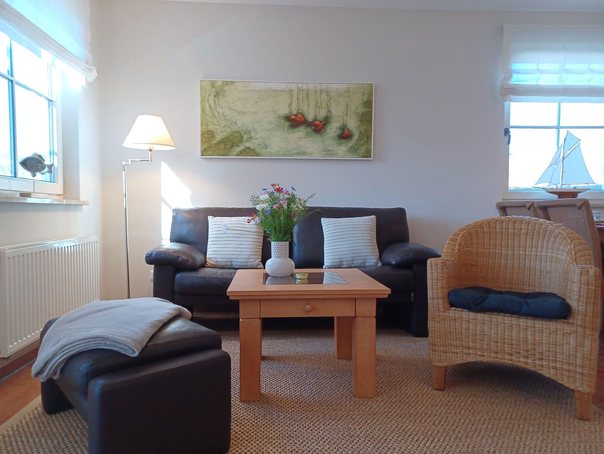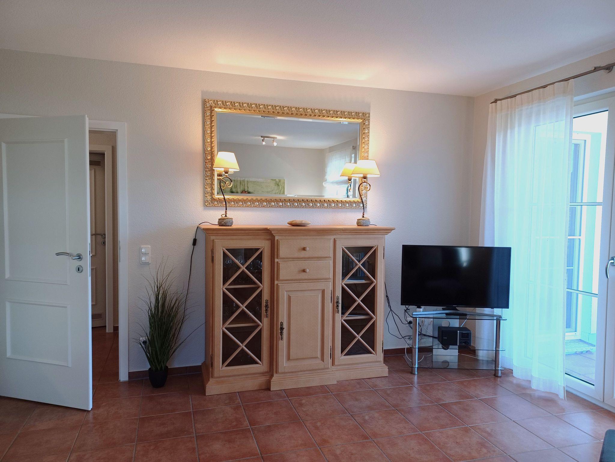 in der Wunderschönen, lichtdurchfluteten Vollkomfortwohnung im Erdgeschoss mit Terrasse (Süd- West- Ausrichtung) lädt zu jeder Tageszeit zum entspannen ein . Die Ferienwohnung liegt in sehr ruhiger Lage am Ortsrand Nähe des Boddens und Hafen. Der großzügige Wohnraum ist mit viel Liebe zum Detail ausgestattet worden. Die offene Küchenzeile verfügt über einen Essbereich, einen Geschirrspüler, Cerankochfeld, Backofen, Kaffeemaschine, Toaster und einer weiteren umfangreichen Ausstattung. Im Bad finden Sie eine Dusche und eine Waschmaschine. Das Schlafzimmer wurde mit einem Doppelbett 1,80 x 2,00 m ( getrennte Matratzen ) und einem Kleiderschrank mit viel Stauraum, das 2. Schlafzimmer ist mit einem Einzelbett 0,90 x 2,00 m ausgestattet. Die Wohnung ist mit Fliegenschutz ausgestattet. Der Strand liegt in ca. 10 min. Entfernung.. Für unsere Gäste steht auf dem Grundstück ein Fahrradschuppen der abschließbar ist zur Verfügung. Die Wohnung wird inclusive Bettwäsche übergeben, Handtücher können Sie in der Zimmervermittlung für 7,00 € pro Person (1 Badetuch, 1 Handtuch) zubuchen. Der Parkplatz befindet sich direkt am Grundstück. Nur für 3 Erwachsene zugelassen !