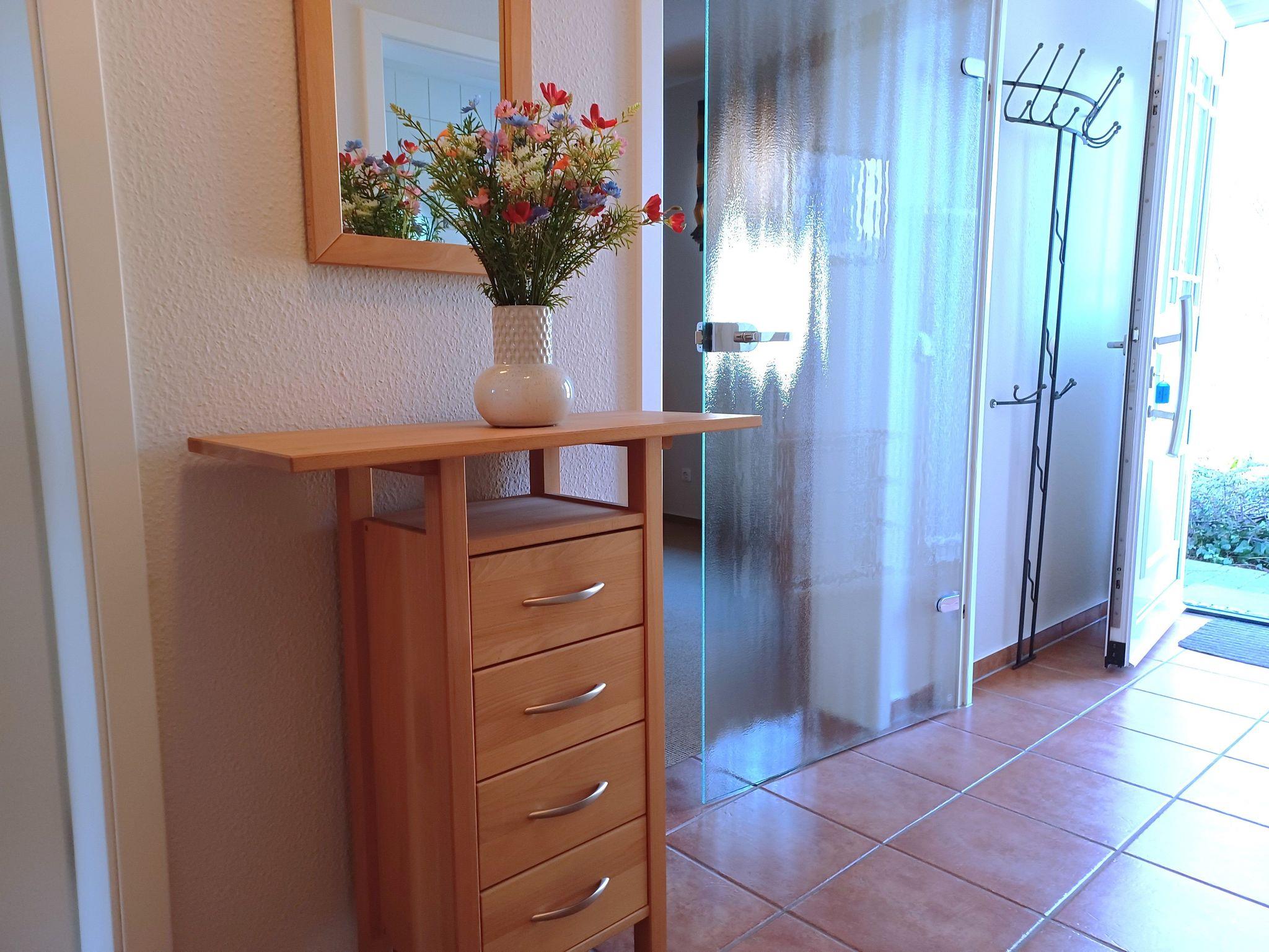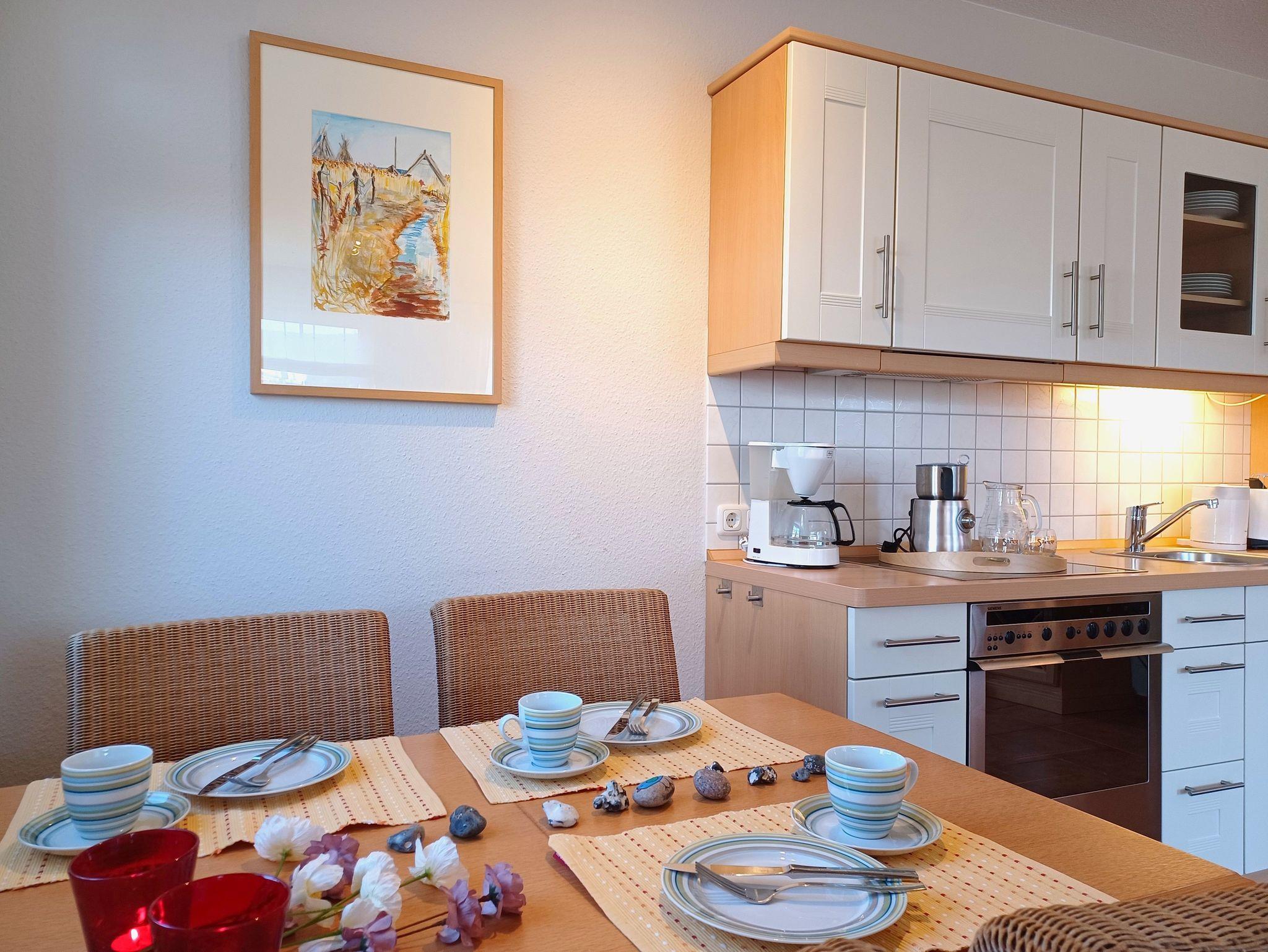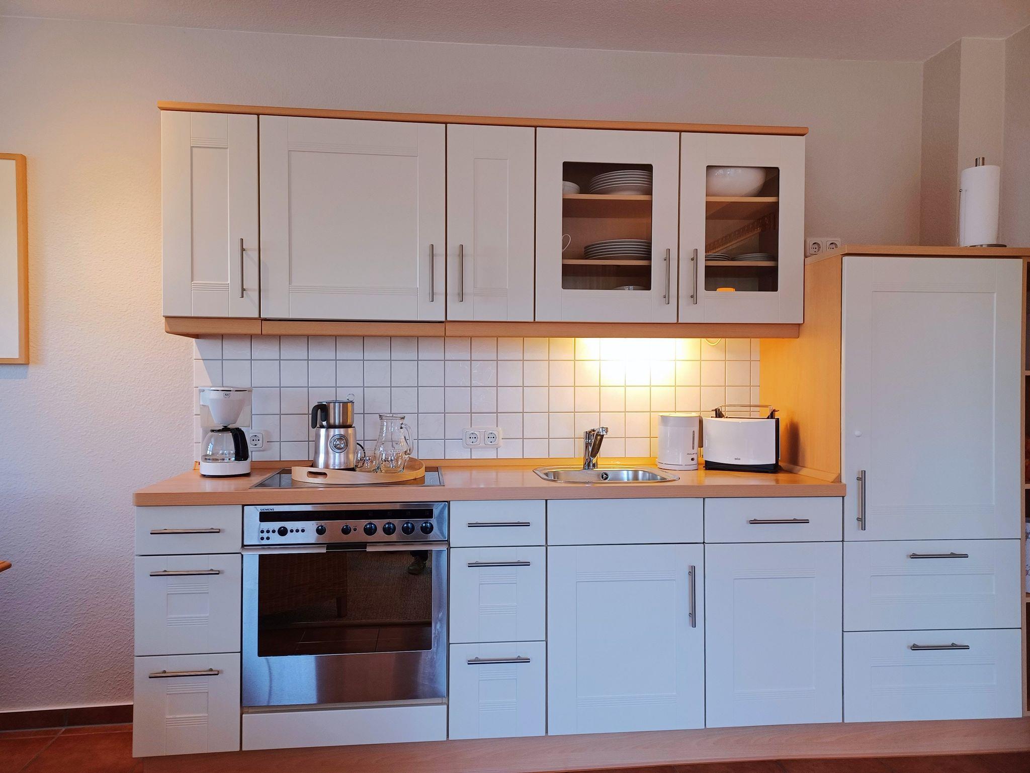 in der Wunderschönen, lichtdurchfluteten Vollkomfortwohnung im Erdgeschoss mit Terrasse (Süd- West- Ausrichtung) lädt zu jeder Tageszeit zum entspannen ein . Die Ferienwohnung liegt in sehr ruhiger Lage am Ortsrand Nähe des Boddens und Hafen. Der großzügige Wohnraum ist mit viel Liebe zum Detail ausgestattet worden. Die offene Küchenzeile verfügt über einen Essbereich, einen Geschirrspüler, Cerankochfeld, Backofen, Kaffeemaschine, Toaster und einer weiteren umfangreichen Ausstattung. Im Bad finden Sie eine Dusche und eine Waschmaschine. Das Schlafzimmer wurde mit einem Doppelbett 1,80 x 2,00 m ( getrennte Matratzen ) und einem Kleiderschrank mit viel Stauraum, das 2. Schlafzimmer ist mit einem Einzelbett 0,90 x 2,00 m ausgestattet. Die Wohnung ist mit Fliegenschutz ausgestattet. Der Strand liegt in ca. 10 min. Entfernung.. Für unsere Gäste steht auf dem Grundstück ein Fahrradschuppen der abschließbar ist zur Verfügung. Die Wohnung wird inclusive Bettwäsche übergeben, Handtücher können Sie in der Zimmervermittlung für 7,00 € pro Person (1 Badetuch, 1 Handtuch) zubuchen. Der Parkplatz befindet sich direkt am Grundstück. Nur für 3 Erwachsene zugelassen !