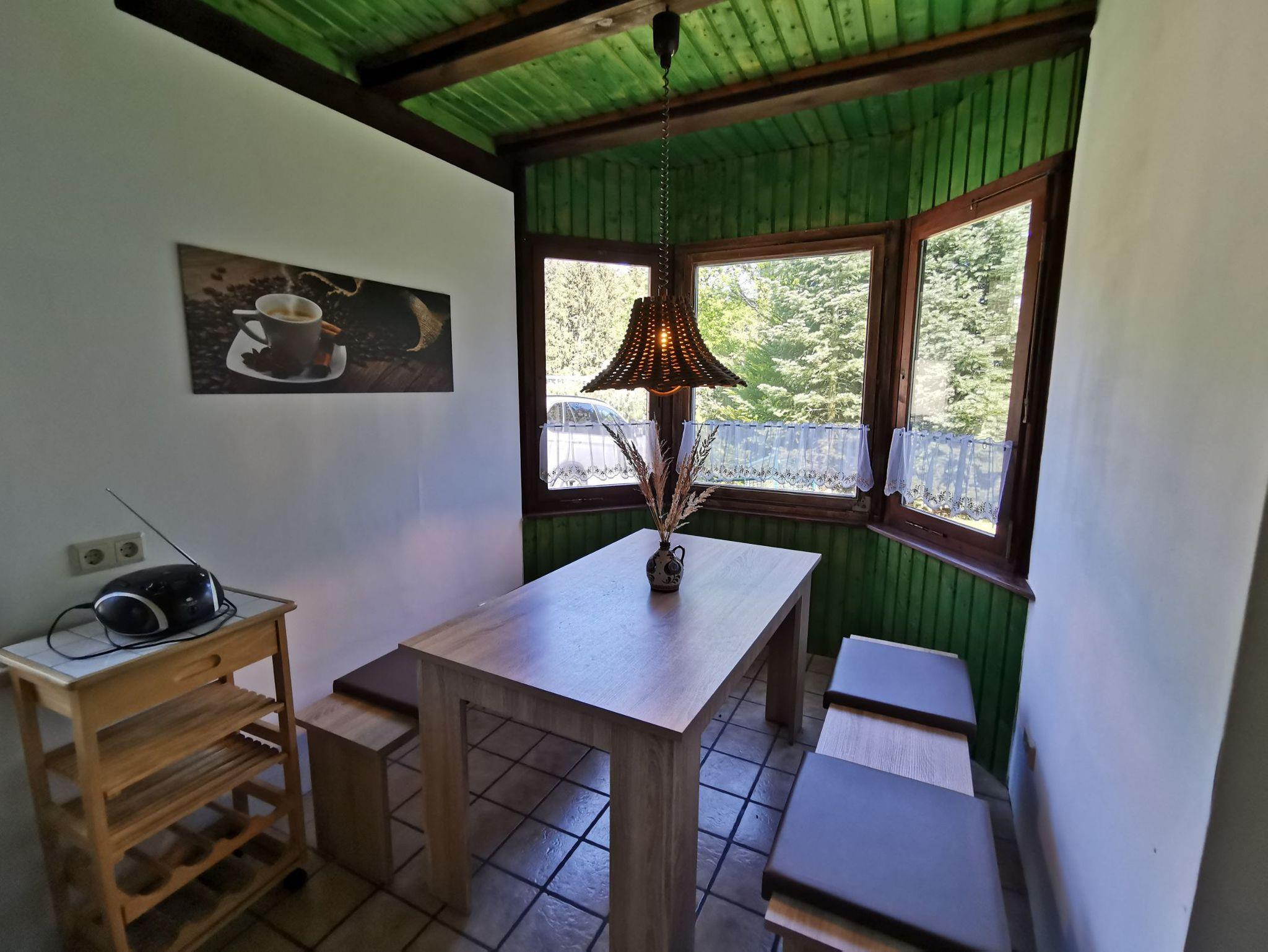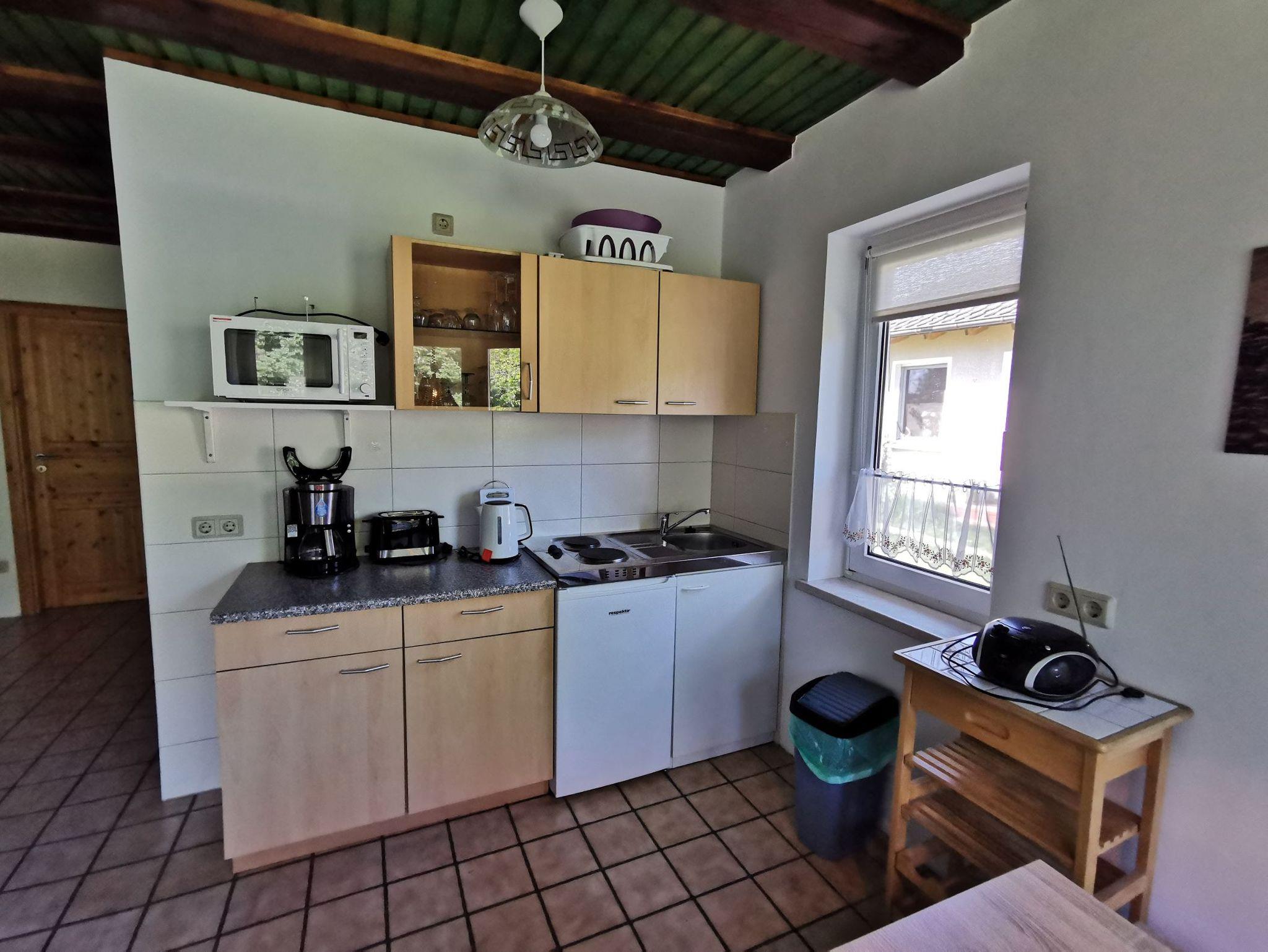 Das Ferienhaus steht auf einem vollständig eingezäunten Grundstück, ideal für einen Urlaub mit Hund. Es befindet sich 300 m vom Badestrand des Labussees entfernt. Es ist mit 4 Schlafplätzen in 2 seperaten Schlafzimmern ausgestattet. Eine voll ausgestattete Küche ist ebenso vorhanden wie ein kleines liebevoll eingerichtetes Bad. Das Ferienhaus ist beheizt und dadurch ganzjährig nutzbar. Das Wohnzimmer ist sehr gemütlich eingerichtet. Zur Unterhaltung stehen Sat-TV sowie diverse Spiele und Literatur zur Verfügung. Das Ferienhaus liegt am Ortrand fast direkt am Wald und 300 m vom See. Die Mecklenburger Kleinseenplatte bietet Ihnen umfangreiche Möglichkeiten, einen erholsamen Urlaub zu verbringen. Wandern, radfahren oder paddeln Sie durch die wunderbare Natur. Aktive Urlauber kommen ebenso auf ihre Kosten wie Faulenzer. Das Ferienhaus ist ruhig inmitten eines Landschaftsschutzgebietes gelegen. Sollten Sie Lust auf ein kühlendes Bad haben, gehen Sie einfach an den Strand in den Labussee baden, der sich gleich unterhalb vom Ferienhaus befindet. Die Terrasse mit Sitzmöbeln lädt zum gemütlichen Verweilen in geselliger Runde ein. Ein Grill für eine kleine Grillparty steht ebenfalls zur Verfügung. Zwei Parklätze befinden sich am Haus.