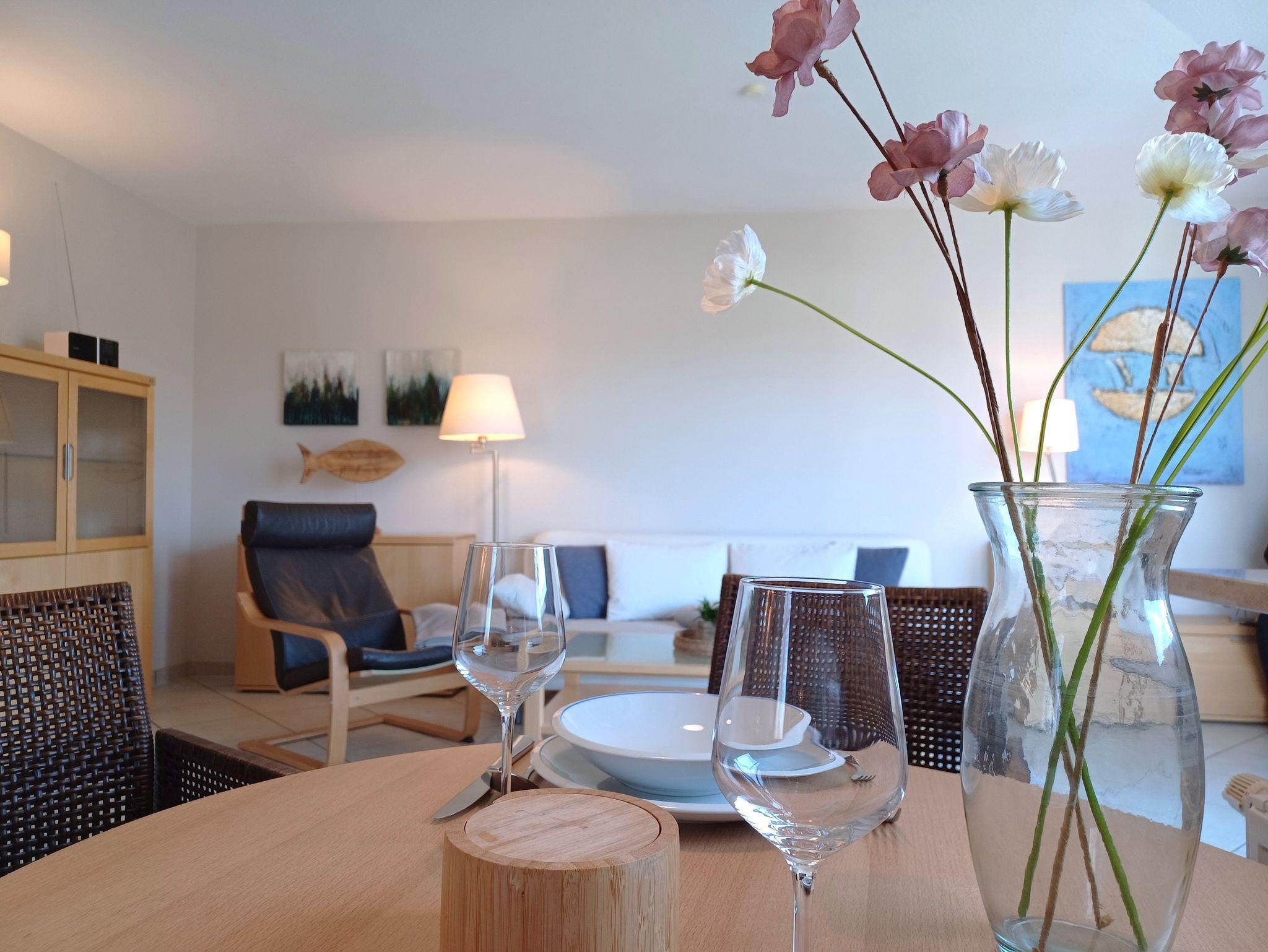 in der Wunderschönen, lichtdurchfluteten Vollkomfortwohnung im Obergeschoss mit Balkon (Süd- West- Ausrichtung) . Die Ferienwohnung liegt in sehr ruhiger Lage am Ortsrand. Der großzügige Wohnraum ist mit viel Liebe zum Detail ausgestattet worden. Die offene Küchenzeile verfügt über einen Essbereich, einen Geschirrspüler, Cerankochfeld, Backofen, Kaffeemaschine, Toaster und einer weiteren umfangreichen Ausstattung. Im Bad finden Sie eine Dusche. Das Schlafzimmer wurde mit einem Doppelbett 1,80 x 2,00 m ( getrennte Matratzen ) und einem Kleiderschrank mit viel Stauraum ausgestattet. Die Wohnung ist mit Fliegenschutz ausgestattet. Der Strand liegt in ca. 10 min. Entfernung.. Für unsere Gäste steht auf dem Grundstück ein Fahrradschuppen der abschließbar ist zur Verfügung. Die Wohnung wird inclusive Bettwäsche übergeben, Handtücher können Sie in der Zimmervermittlung für 7,00 € pro Person (1 Badetuch, 1 Handtuch) zubuchen. Der Parkplatz befindet sich direkt am Grundstück.Gäste nutzen bitte den rechten Parkplatz!