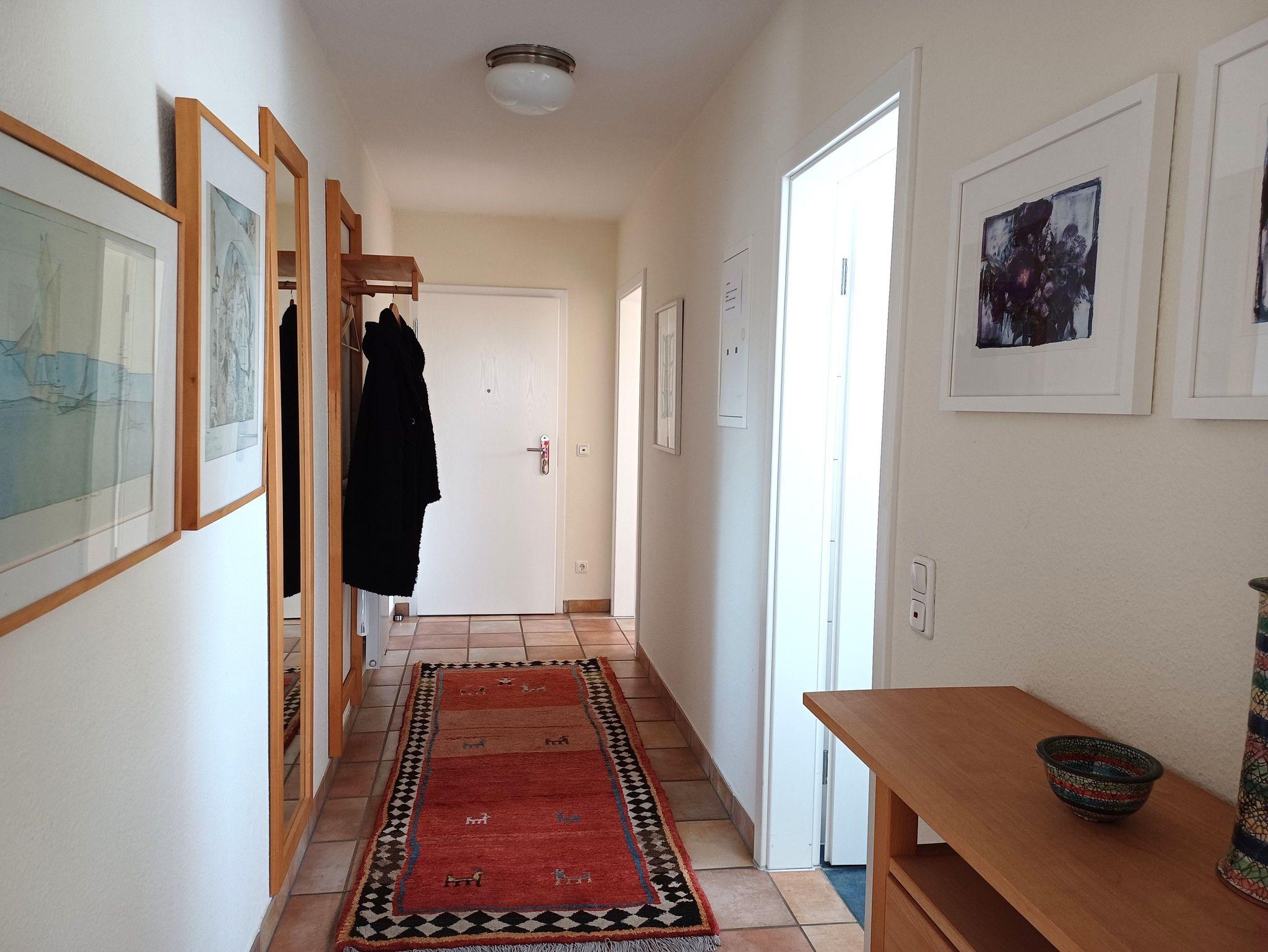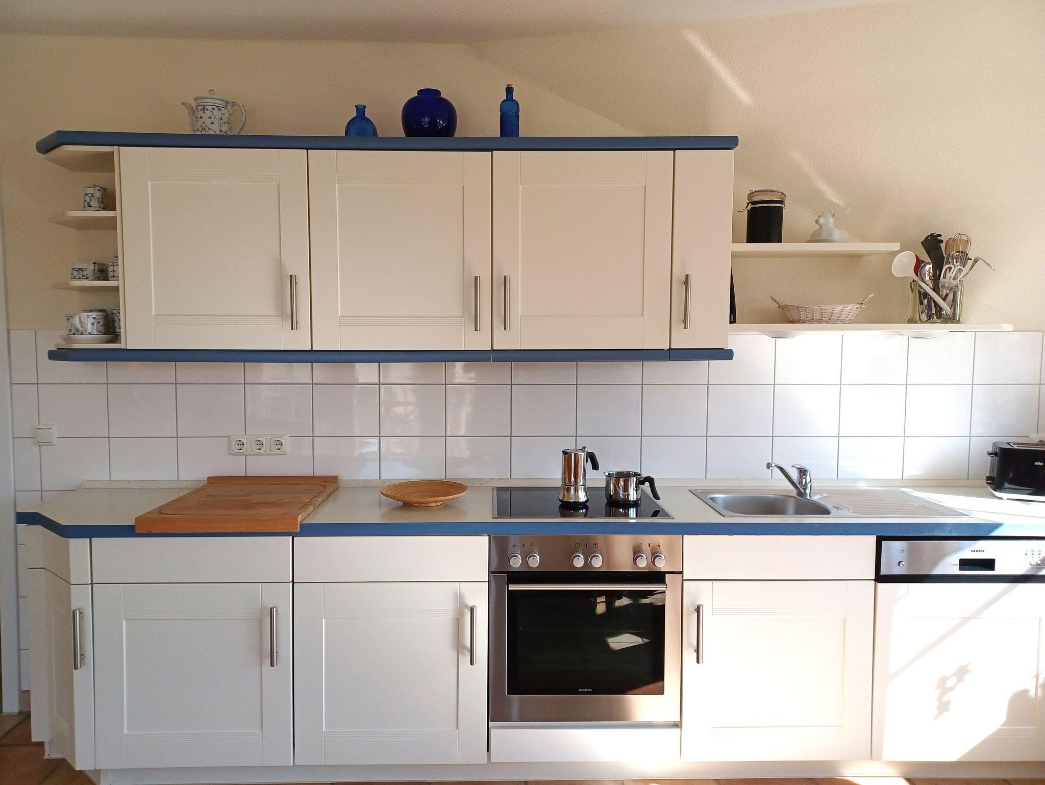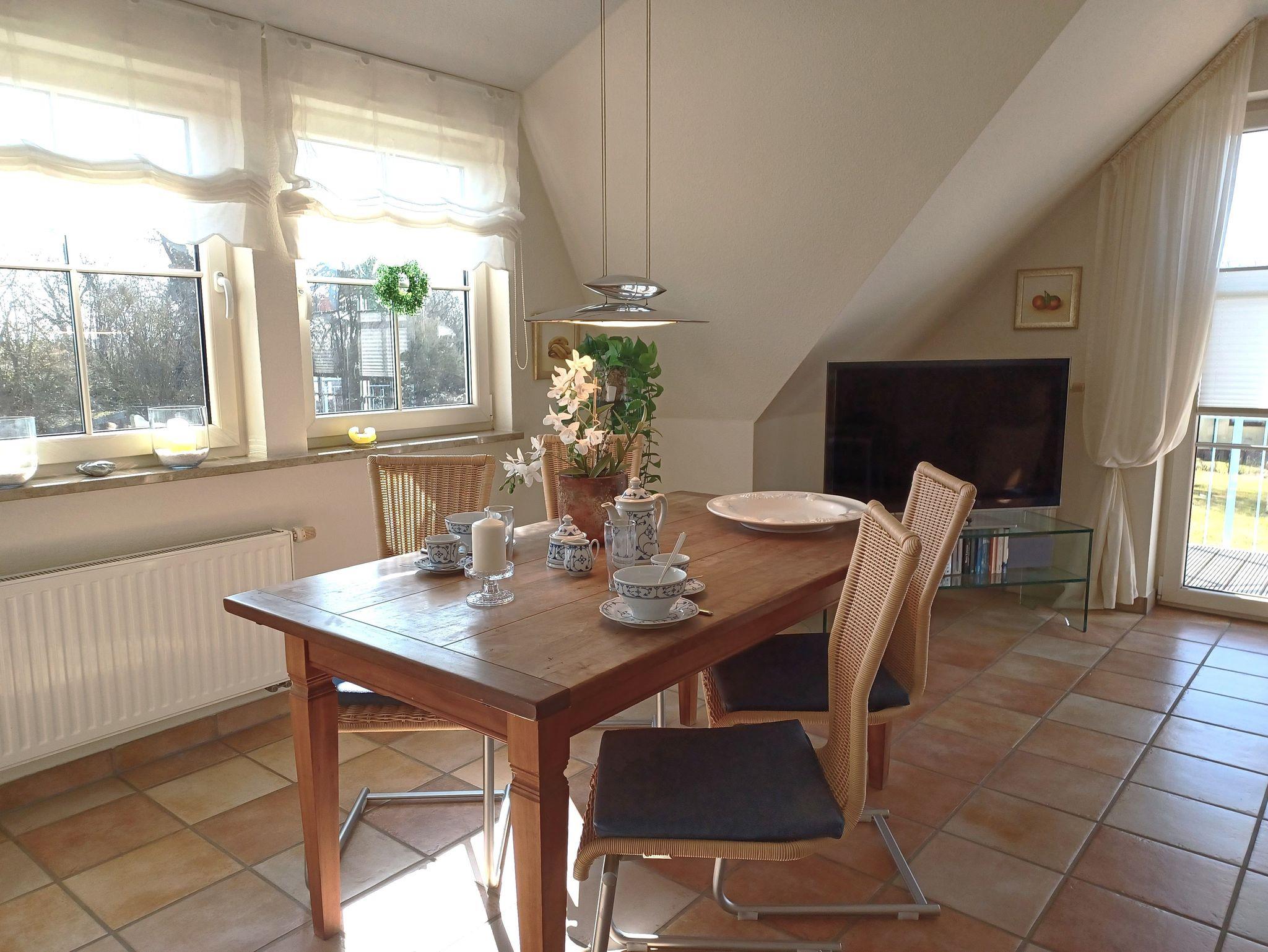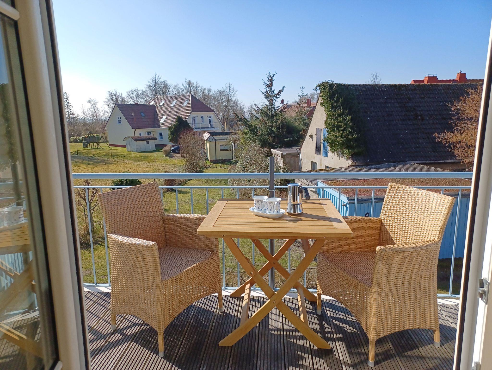 in der Wunderschönen, lichtdurchfluteten Vollkomfortwohnung im Obergeschoss mit Balkon (Süd- West- Ausrichtung) und Boddenblick. Die Ferienwohnung liegt in sehr ruhiger Lage am Ortsrand. Der großzügige Wohnraum ist mit viel Liebe zum Detail ausgestattet worden. Die offene Küchenzeile verfügt über einen Essbereich, einen Geschirrspüler, Cerankochfeld, Backofen, Kaffeemaschine, Toaster und einer weiteren umfangreichen Ausstattung. Im Bad finden Sie eine Dusche und eine Waschmaschine. Das Schlafzimmer wurde mit einem Doppelbett 2,00 x 2,00 m ( getrennte Matratzen ) und einem Kleiderschrank mit viel Stauraum ausgestattet. Der Strand liegt in ca. 10 min. Entfernung.. Für unsere Gäste steht auf dem Grundstück ein abschließbarer Fahrradschuppen zur Verfügung. Die Wohnung wird inclusive Bettwäsche übergeben, Handtücher können Sie in der Zimmervermittlung für 7,00 € pro Person (1 Badetuch, 1 Handtuch) zubuchen. Der Parkplatz befindet sich direkt am Grundstück.
