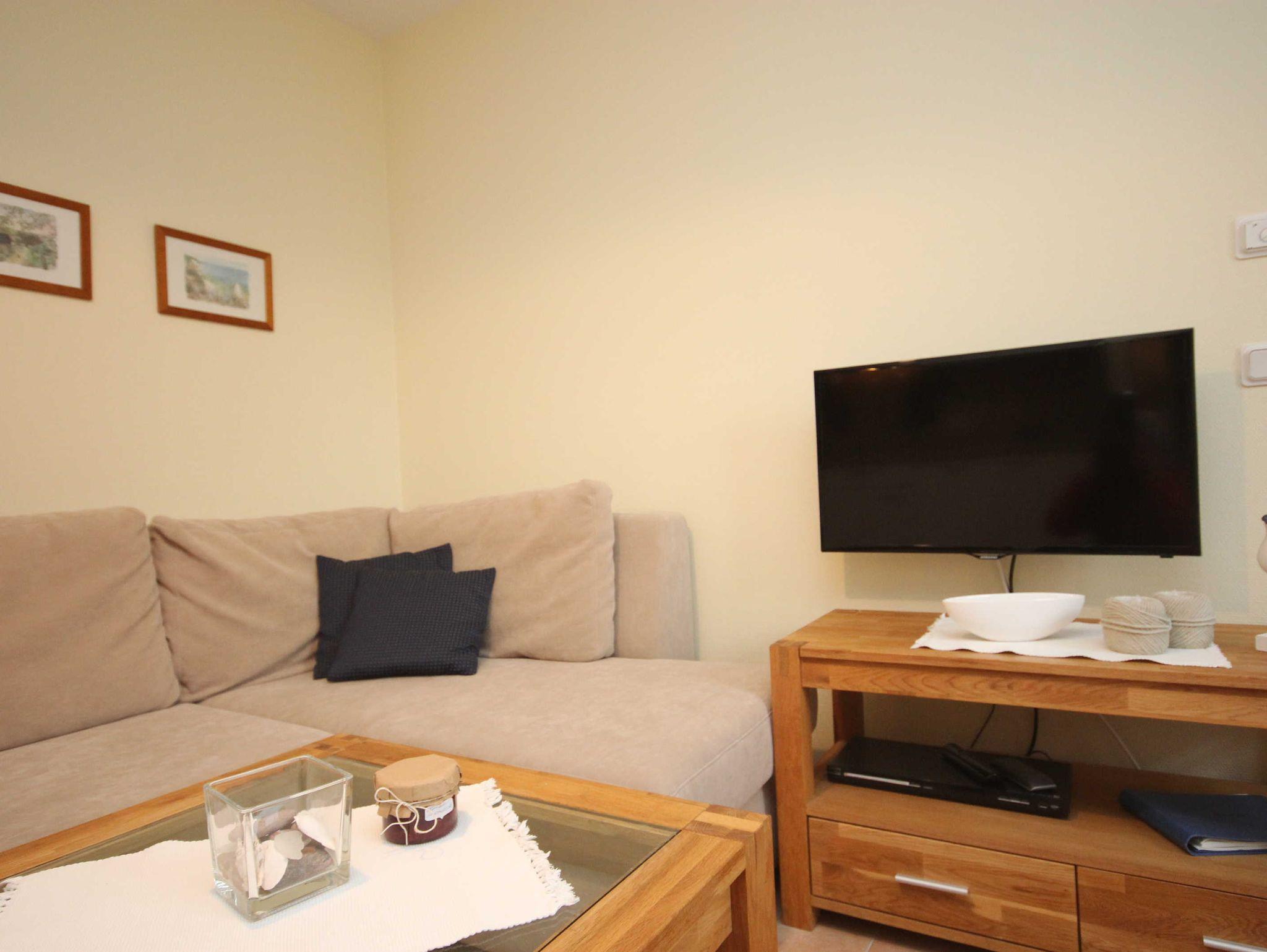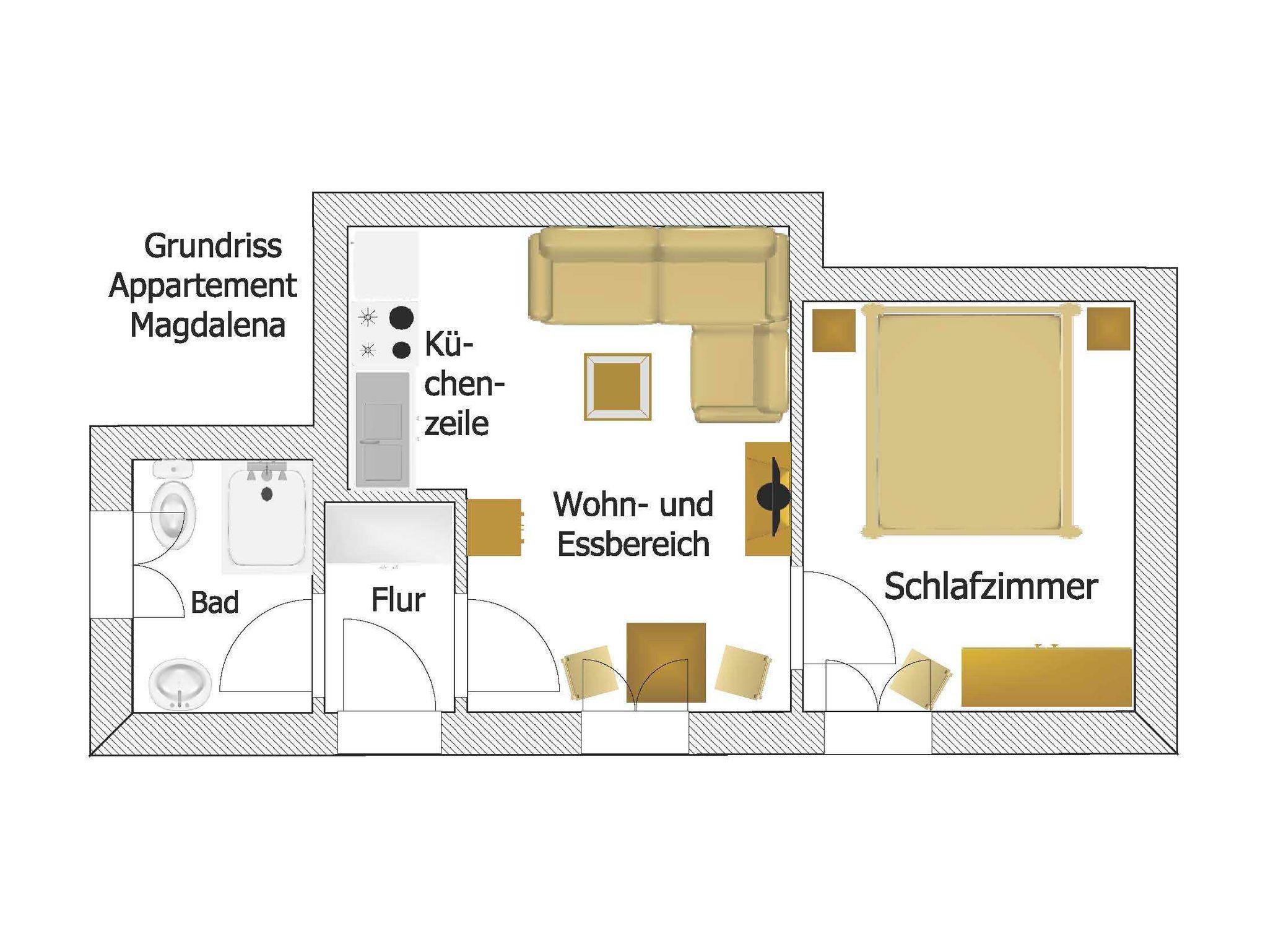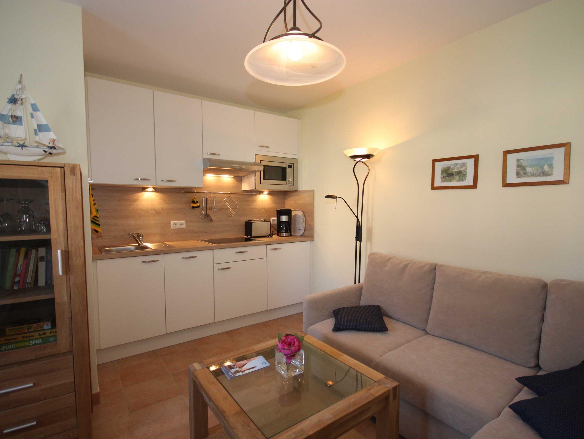 die Ferienwohnung Magdalena ist eine modern und gemütlich eingerichtete Wohnung in ruhiger Lage mit separatem Eingang. Es ist eine Nichtraucherwohnung und für Allergiker geeignet. Den Ostseestrand erreichen Sie in ca. 350 m. Die Wohnung ist mit einer Fußbodenheizung, passiver Kühlung für heiße Sommertage und WLAn ausgestattet. Im Wohn- und Esszimmer befindet sich ein bequemes Ecksofa. Die offene Küchenzeile verfügt über ein Induktionskochfeld, ein Geschirrspüler und eine Mikrowelle. Für einen guten Komfort steht ein Doppelbett 1,80 x 2,00 m (getrennte Matratze) im Schlafzimmer. Das Bad besitzt eine ebenerdige Dusche und ein Fenster .Alle Fenster der Wohnung sind mit Insektenschutz ausgestattet. Die Bettwäsche ist inclusive, Handtücher sind in der Zimmervermittlung für 7,00 € pro Person (1 Badetuch, 1 Handtuch) zubuchbar. Der PKW Stellplatz befindet sich vor der Wohnung.