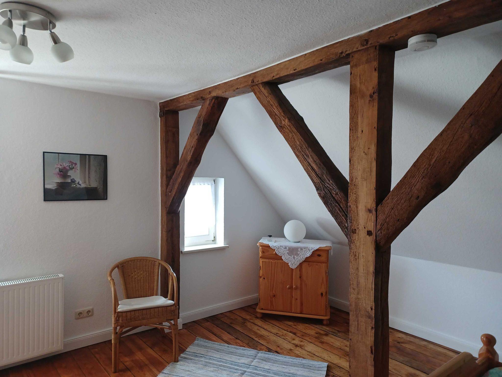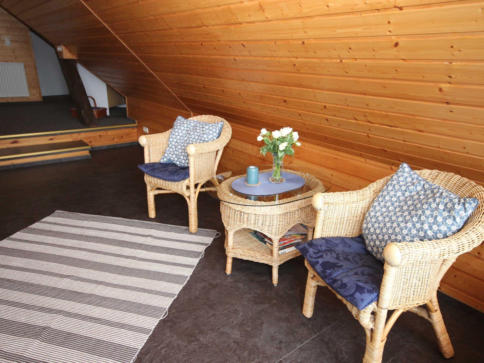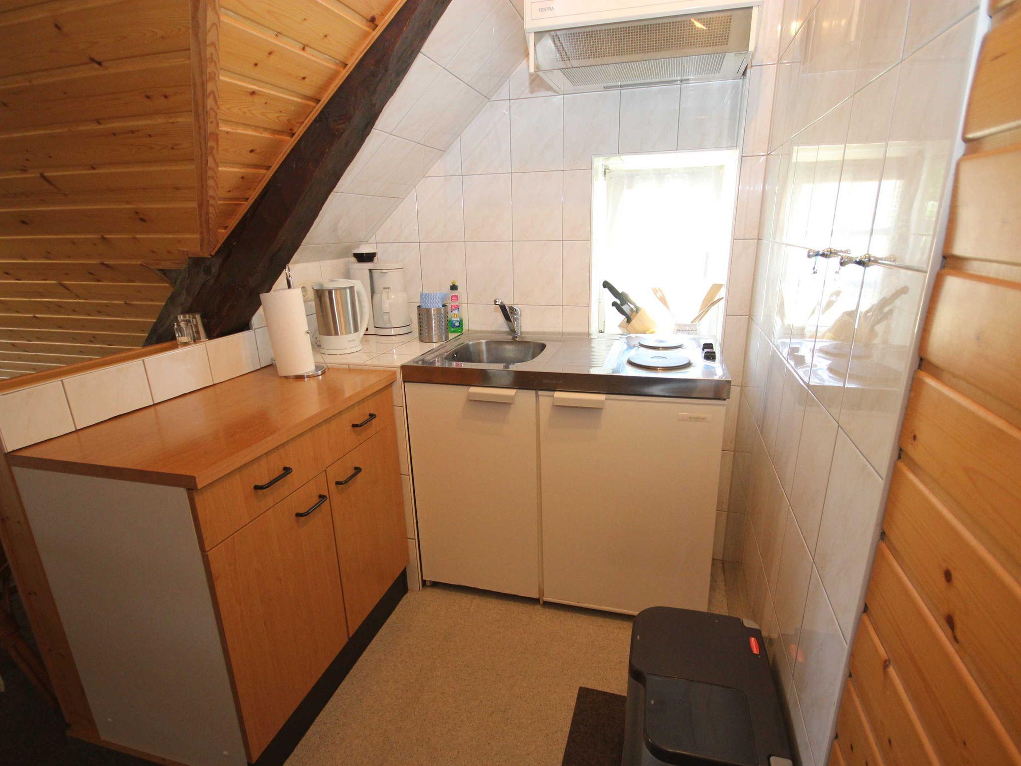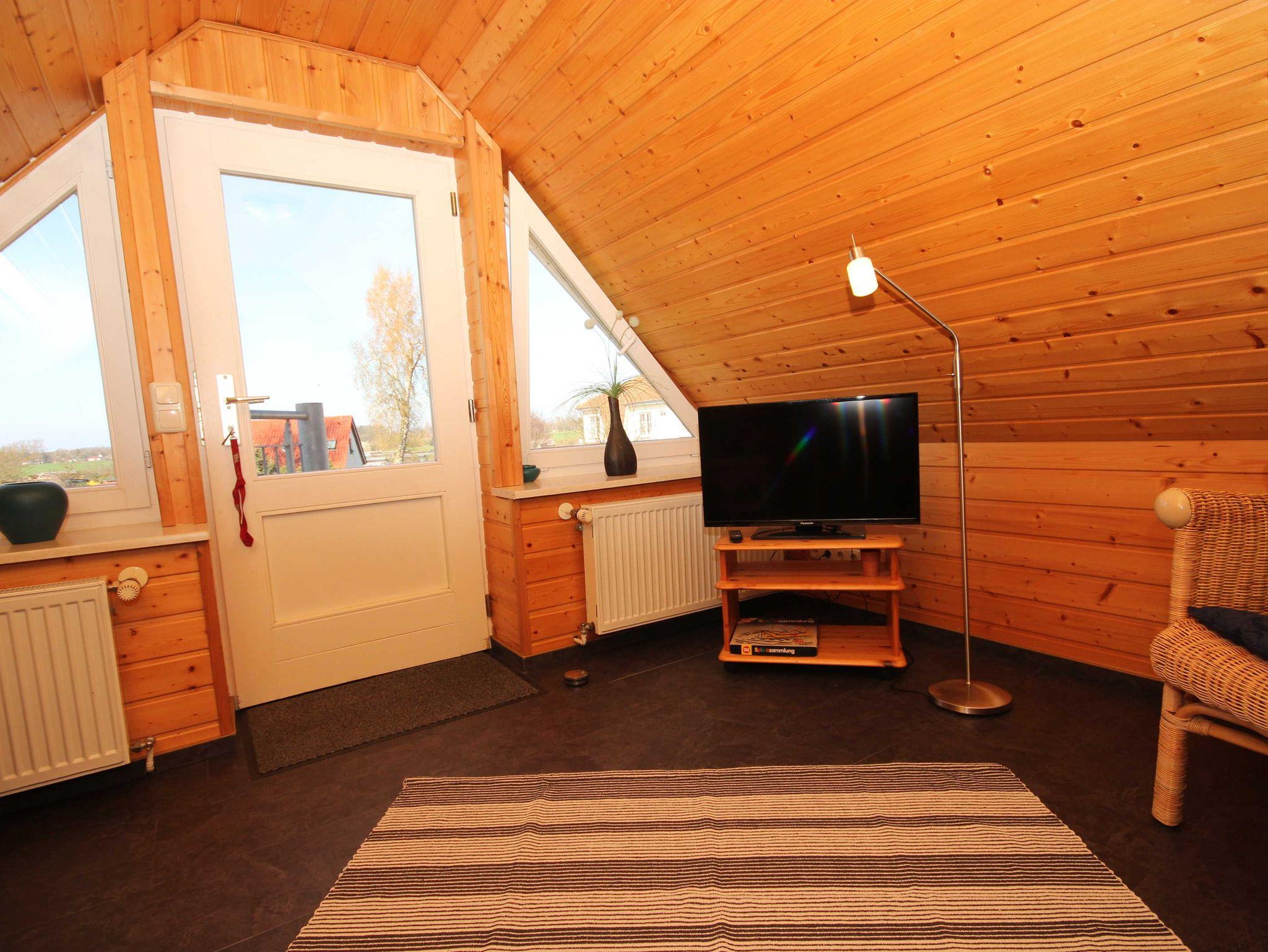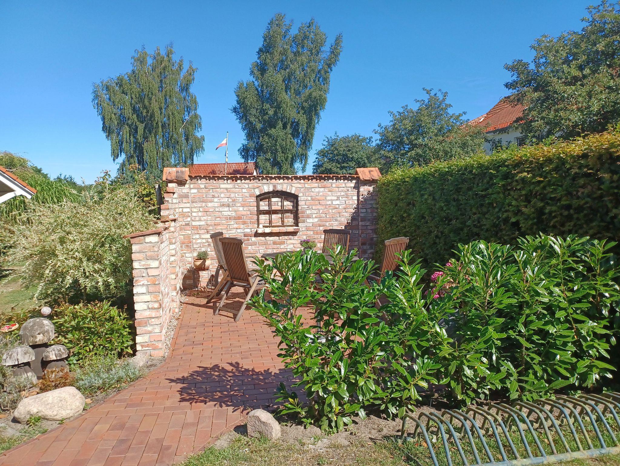die Ferienwohnung im Obergeschoss mit separatem Eingang, in ruhiger Lage am Ortsrand ist über eine Aussentreppe erreichbar. Der Sitzplatz im Garten auf der separaten Terrasse lädt Sie zum verweilen und entspannen ein. An das offene Wohnzimmer mit kostenlosen WLAN- Gästezugang und SAT-TV, schließt sich die kleine Küchenzeile mit Essplatz an. Die Ferienwohnung verfügt über 2 - 1.Schlafzimmer mit Doppelbett 1,80 x 2,00 m (getrennte Matratzen) und das 2. Schlafzimmer ist über eine Raumspartreppe zur Schlafgalerie mit 2 Einzelbetten erreichbar 0,90 x 2,00 m. Die Wohnung wird inclusive Bettwäsche übergeben, Handtücher können in der Zimmervermittlung für 7,00 € pro Person (1 Badetuch, 1 Handtuch) dazugebucht werden. Das Rauchen in der Wohnung ist nicht gestattet. In der abgeschlossenen Garage ist Platz für 1 PKW. Der Strand ist in ca. 15 Gehminuten zu erreichen.