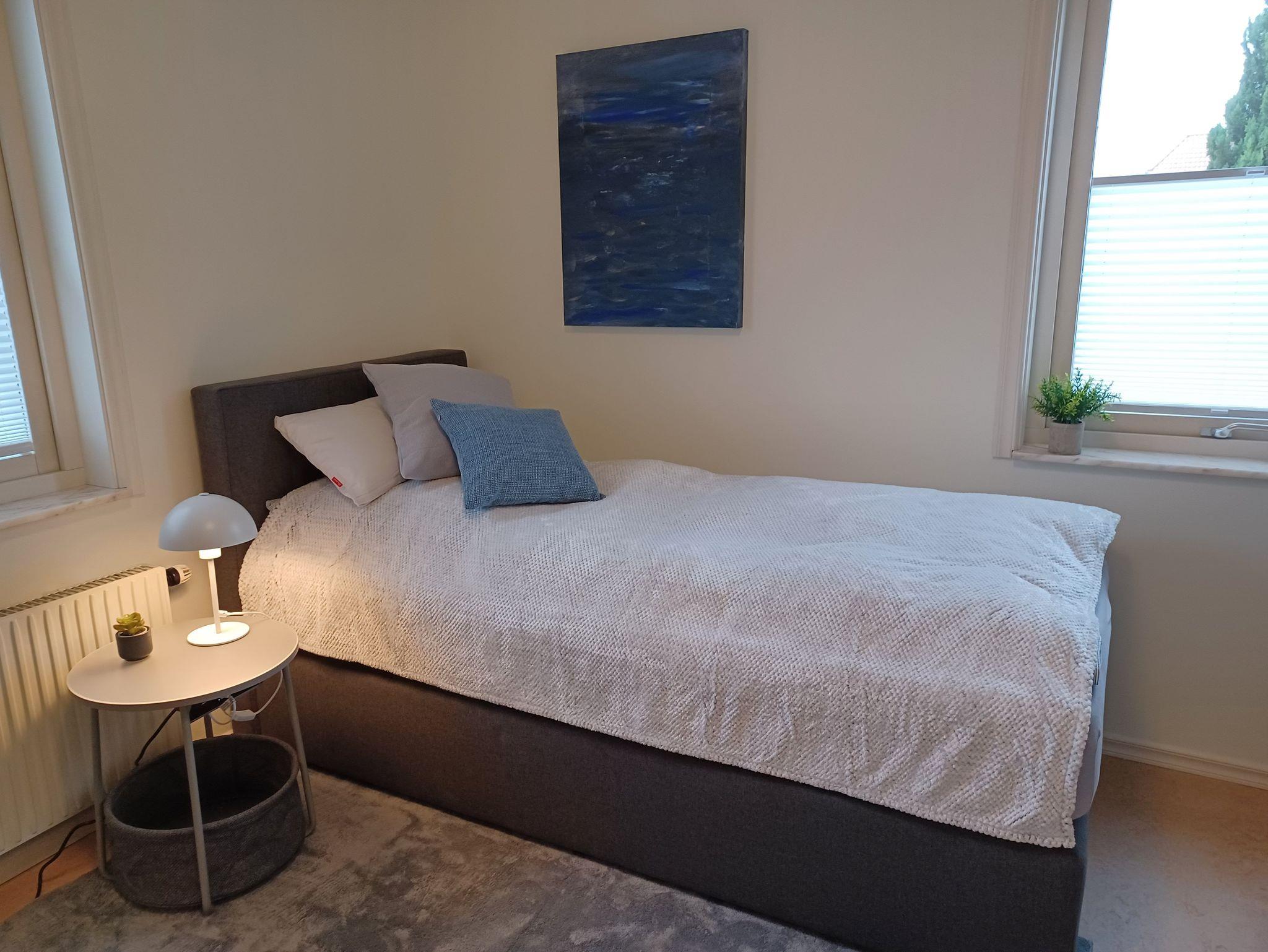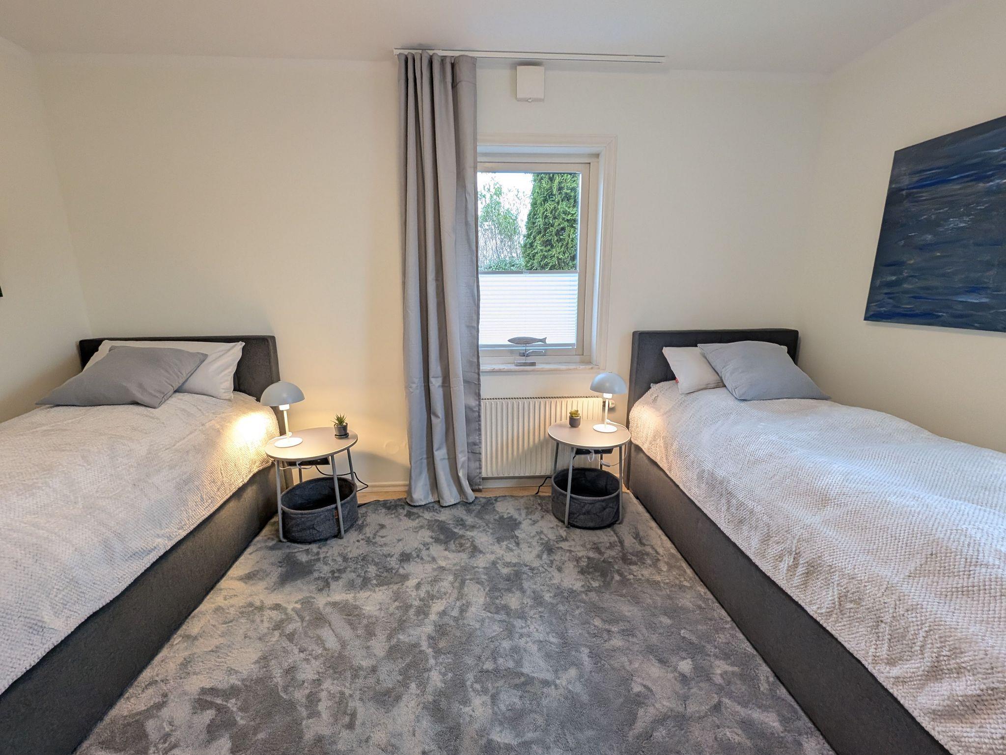 Das 1. Schlafzimmer verfügt über ein Boxspringbett (1,80 x 2,00 m mit zwei getrennten Matratzen wählbar mit zwei unterschiedlichen Härtegraden inkl. Topper), das 2. Schlafzimmer verfügt über zwei getrennte Betten (1,00 x 2,00 m auch wählbar mit zwei unterschiedlichen Härtegraden inkl. Topper).