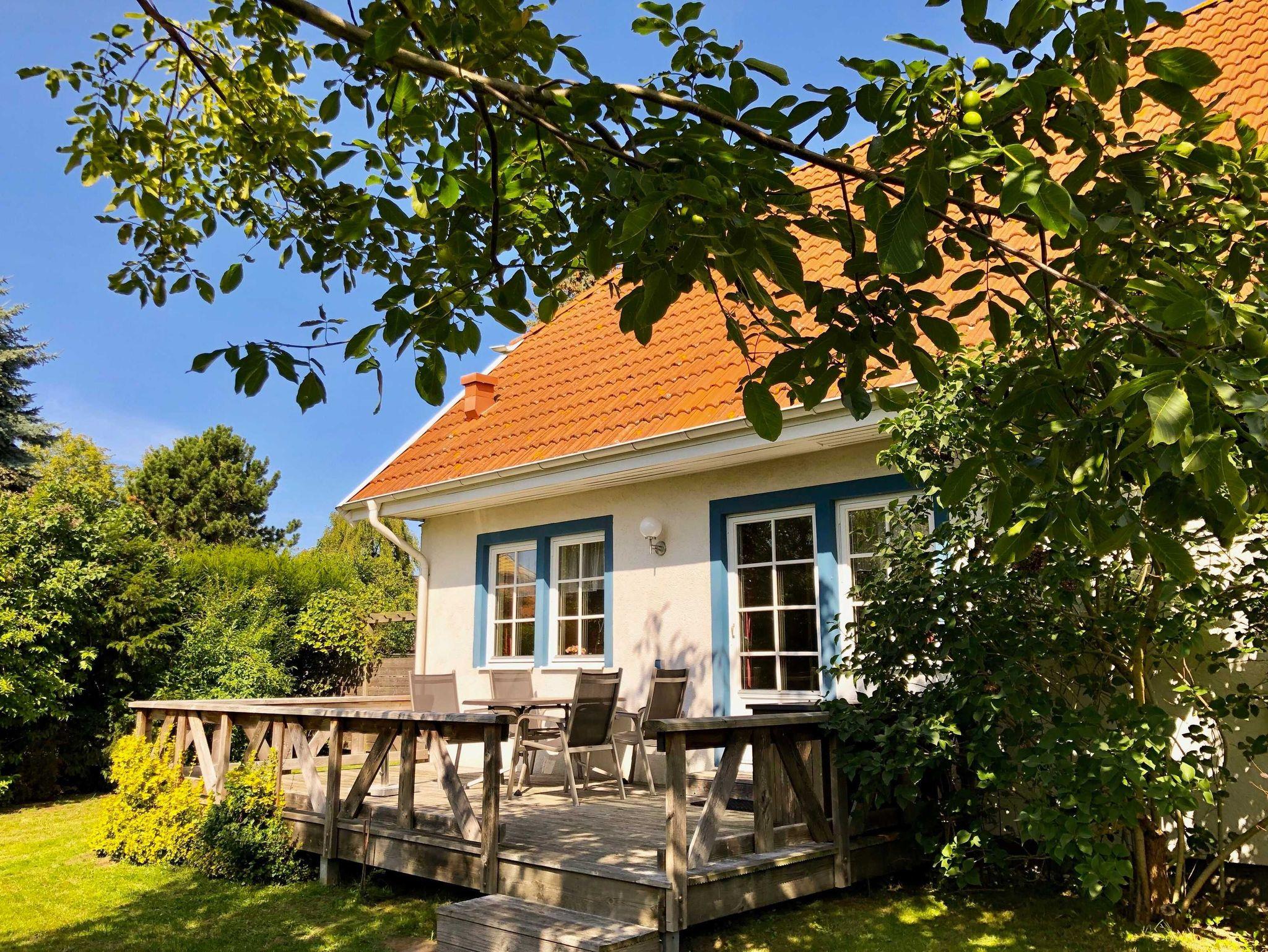 in unserem gemütlichen Ferienhaus mit Sonnenterrasse, das sich in einem nicht einsehbaren, abgeschlossenen Naturgarten befindet. Hier erwarten Sie eine sonnige Liegewiese, ein gemütlicher Sitzplatz und ein Grill, um den Tag bei einem Glas Wein ausklingen zu lassen. Das Ferienhaus liegt in ruhiger und zentraler Dorflage, nur ca. 5 Minuten Fußweg vom Strand oder Bodden entfernt.
