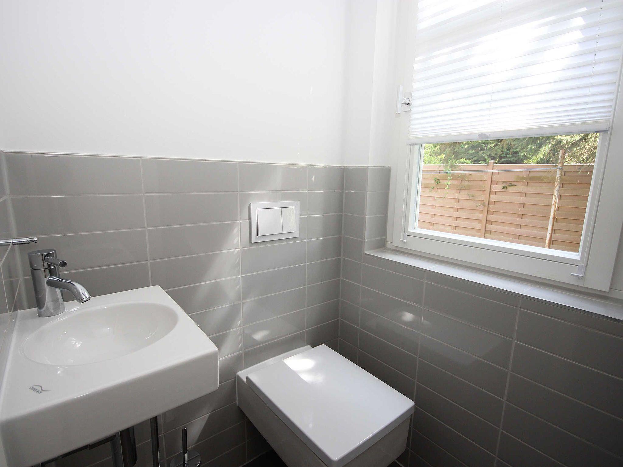 Ebenfalls im Erdgeschoss ist das Bad mit großer Dusche und WC, sowie ein zusätzlich separates Gäste-WC gelegen.