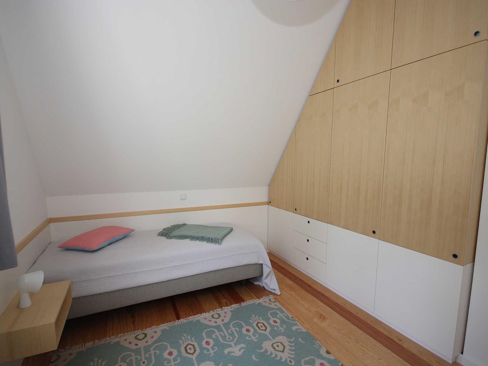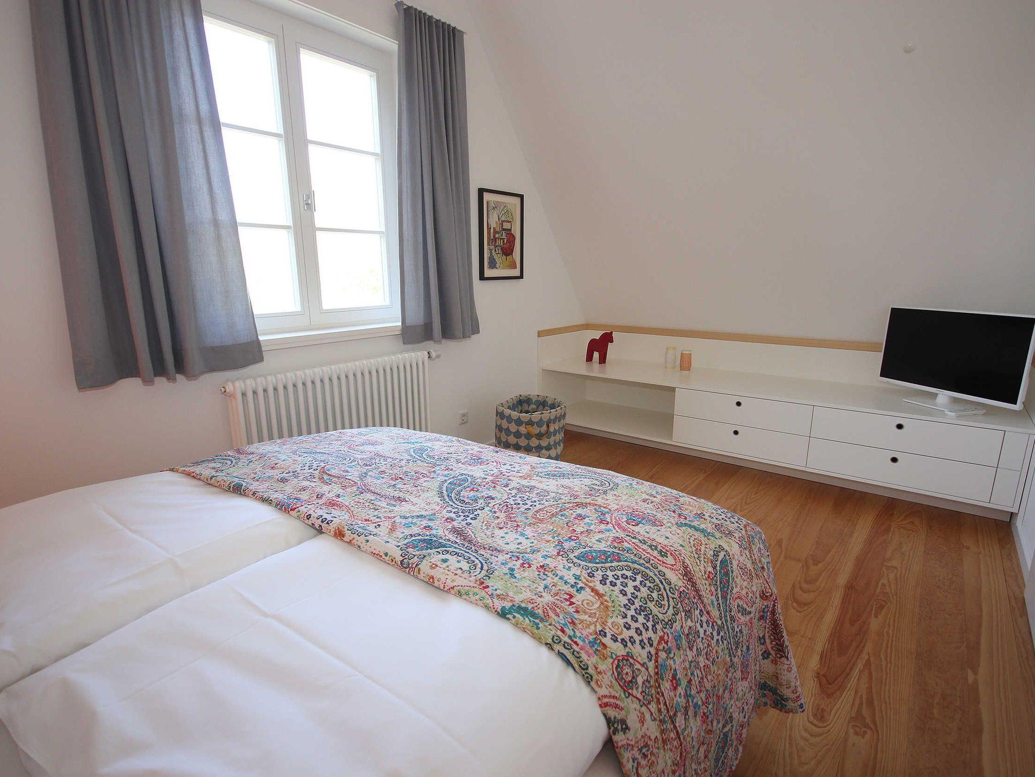 Die 2 Schlafzimmer in der oberen Etage erreichen Sie über eine schöne Holztreppe. Das 1. Schlafzimmer ist mit einem Doppelbett 1,60 x 2,00 m und das 2. Schlafzimmer mit zwei Einzelbetten, jeweils 0,90 x 2,00 m, ausgestattet. Die Bettwäsche und die Handtücher sind für Sie natürlich inklusive.