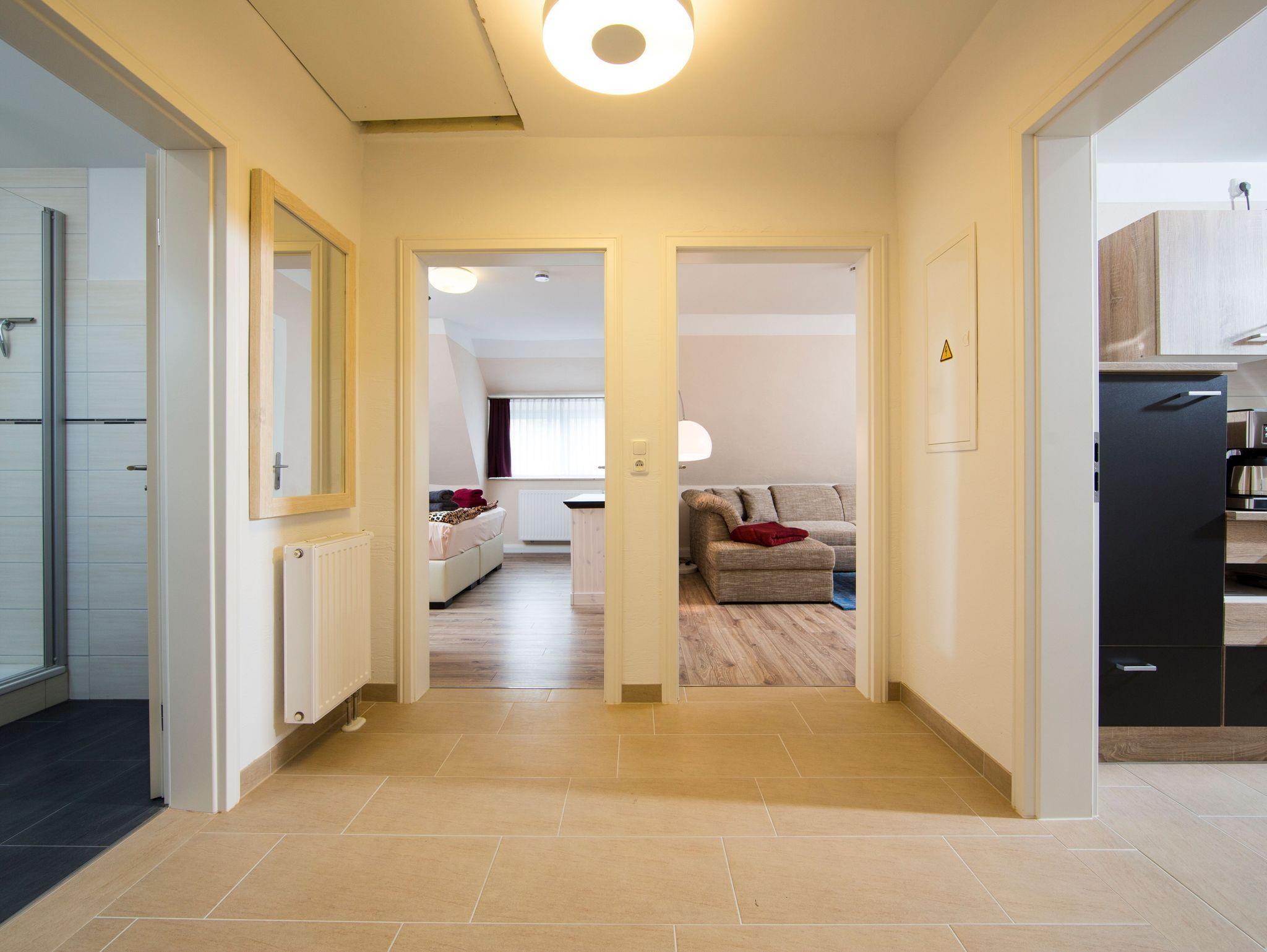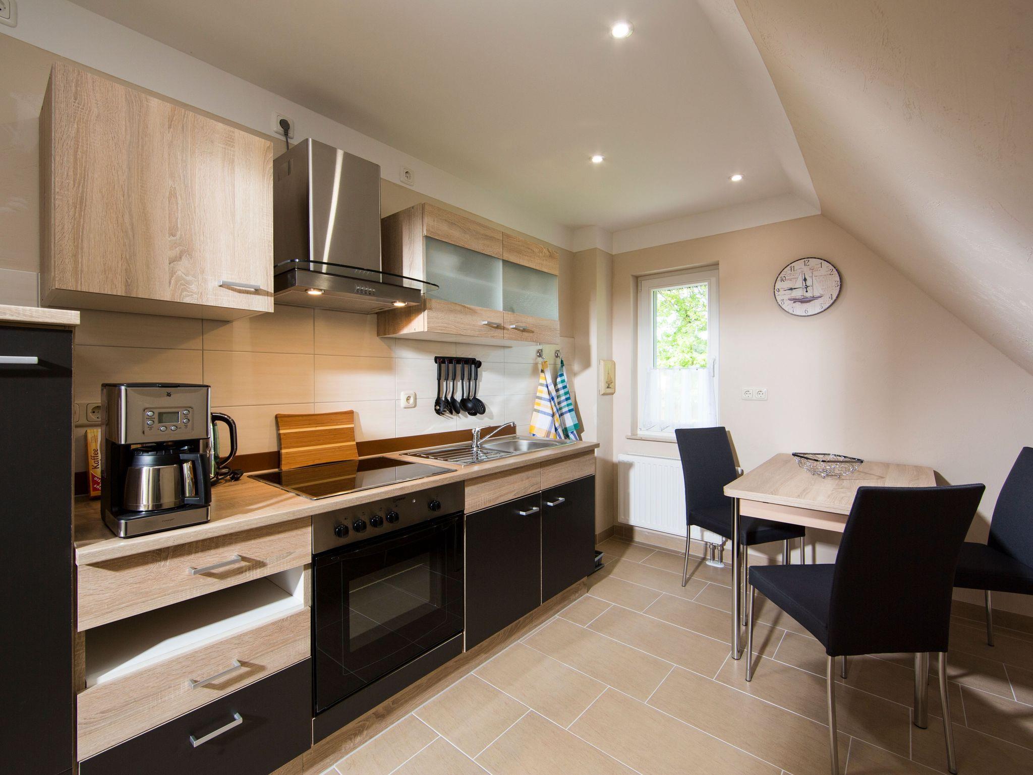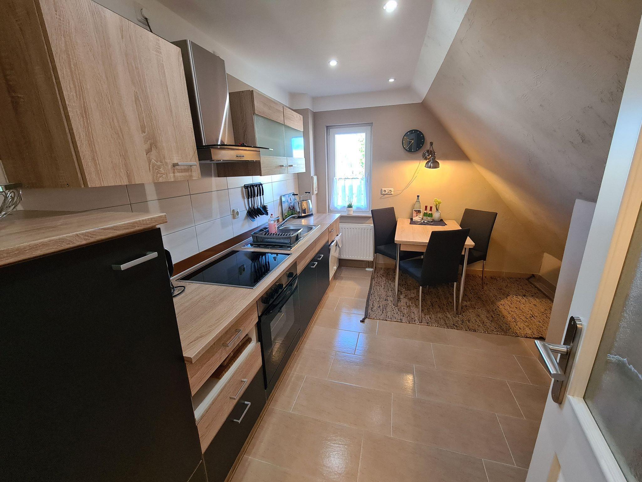 Zur Ausstattung gehören alle notwendigen Küchenutensilien und laden mit dem Essplatz zum gemeinsamen kochen ein.Das Badezimmer wurde mit einer ebenerdigen Dusche ausgestattet.Die Wohnung ist eine Nichtraucherwohnung. Für unsere Gäste steht ein kostenloses WLAN bereit. Die Ferienwohnung wird inklusive Bettwäsche und Handtücher übergeben. Ein Fahrradschuppen steht für alle Wohnungen zur Verfügung.