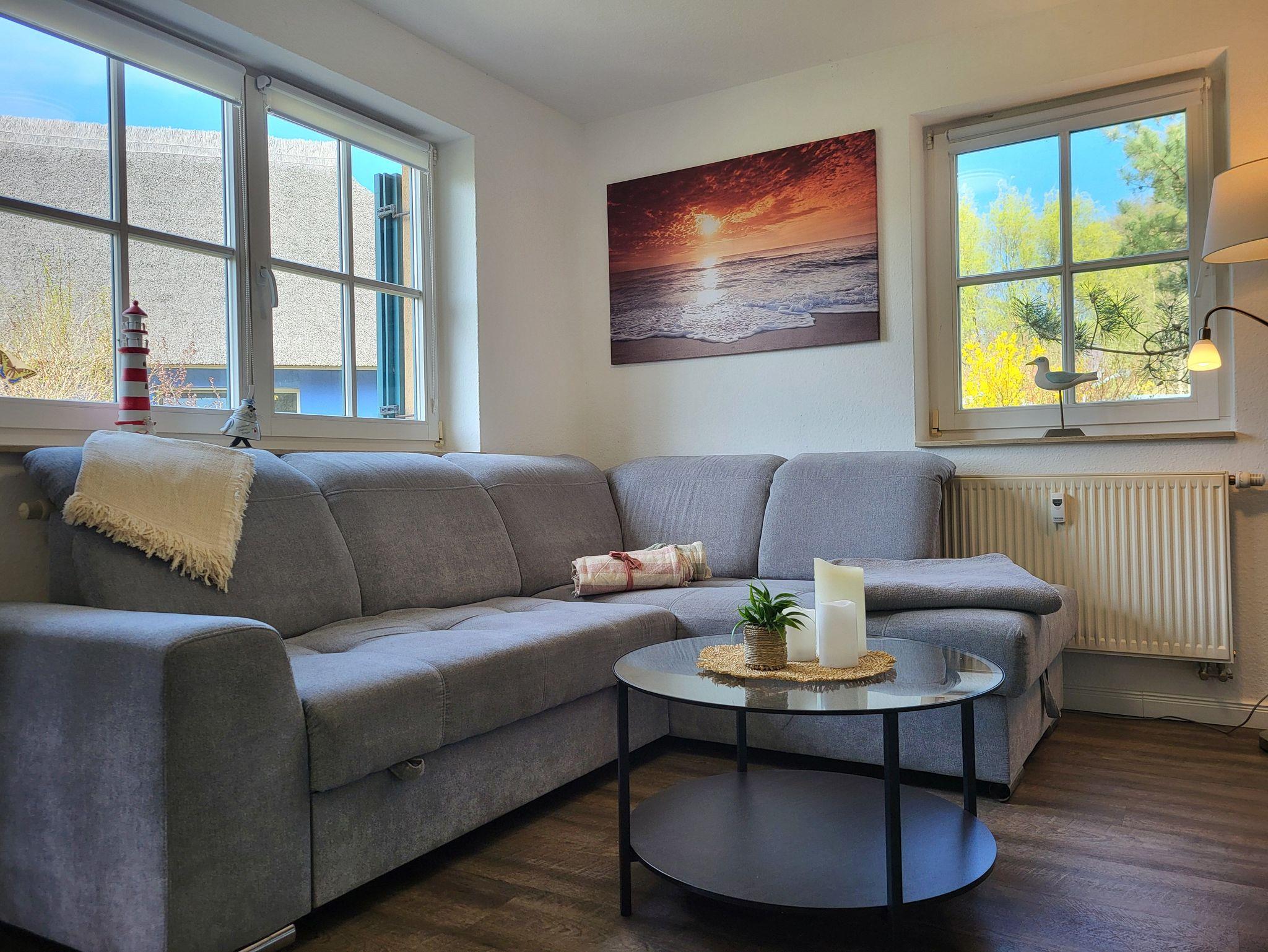 Im beliebten Urlaubsgebiet, direkt hinter dem Deich, befindet sich die Ferienwohnung mit einer vermieteten Fläche von circa 38 qm . Sie genießen auf der Terrasse direkt vor der Ferienwohnung die Nachmittagssonne - klassisch am Gartentisch unter dem Sonnenschirm. Den feinsandigen Ostseestrand erreichen Sie fußläufig in etwa 50 m. Die gemütliche Ferienwohnung hat einen separaten Eingang. Zur Ausstattung gehört ein Geschirrspüler, Mikrowelle, Backofen, Kaffeemaschine, Toaster und Wasserkocher, Kühlschrank, kleiner Gefrierschrank. Fliegengitter befinden sich im Wohnzimmer, Schlafzimmer und im Bad, desweiteren befindet sich im Bad eine Waschmaschine. Das Doppelbett hat eine Größe von 1,60 x 2,00 m mit durchgehender Matratze, Bettwäsche inklusive, Handtücher können für 7,00 € pro Set (1 Badetuch, 1 Handtuch) in der Zimmervermittlung dazugebucht werden (1 Badetuch, 1 Handtücher), WLAN ist vorhanden.